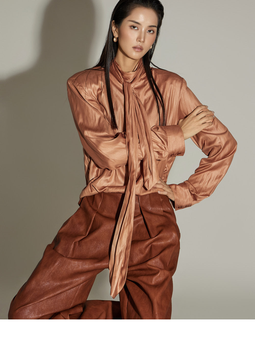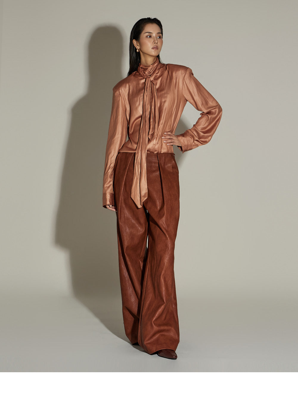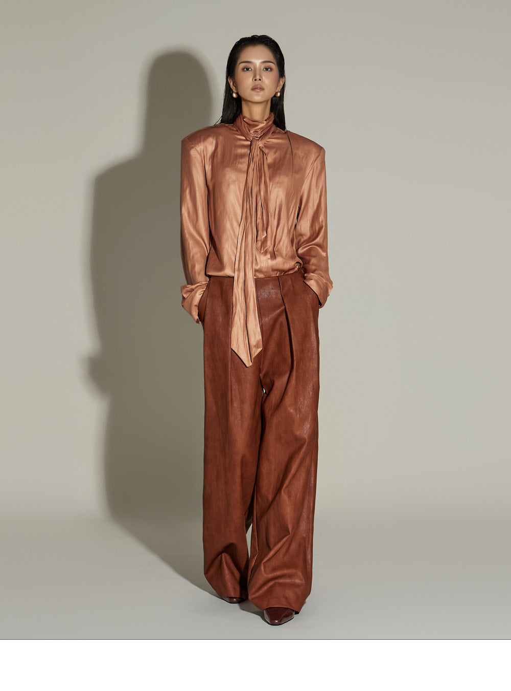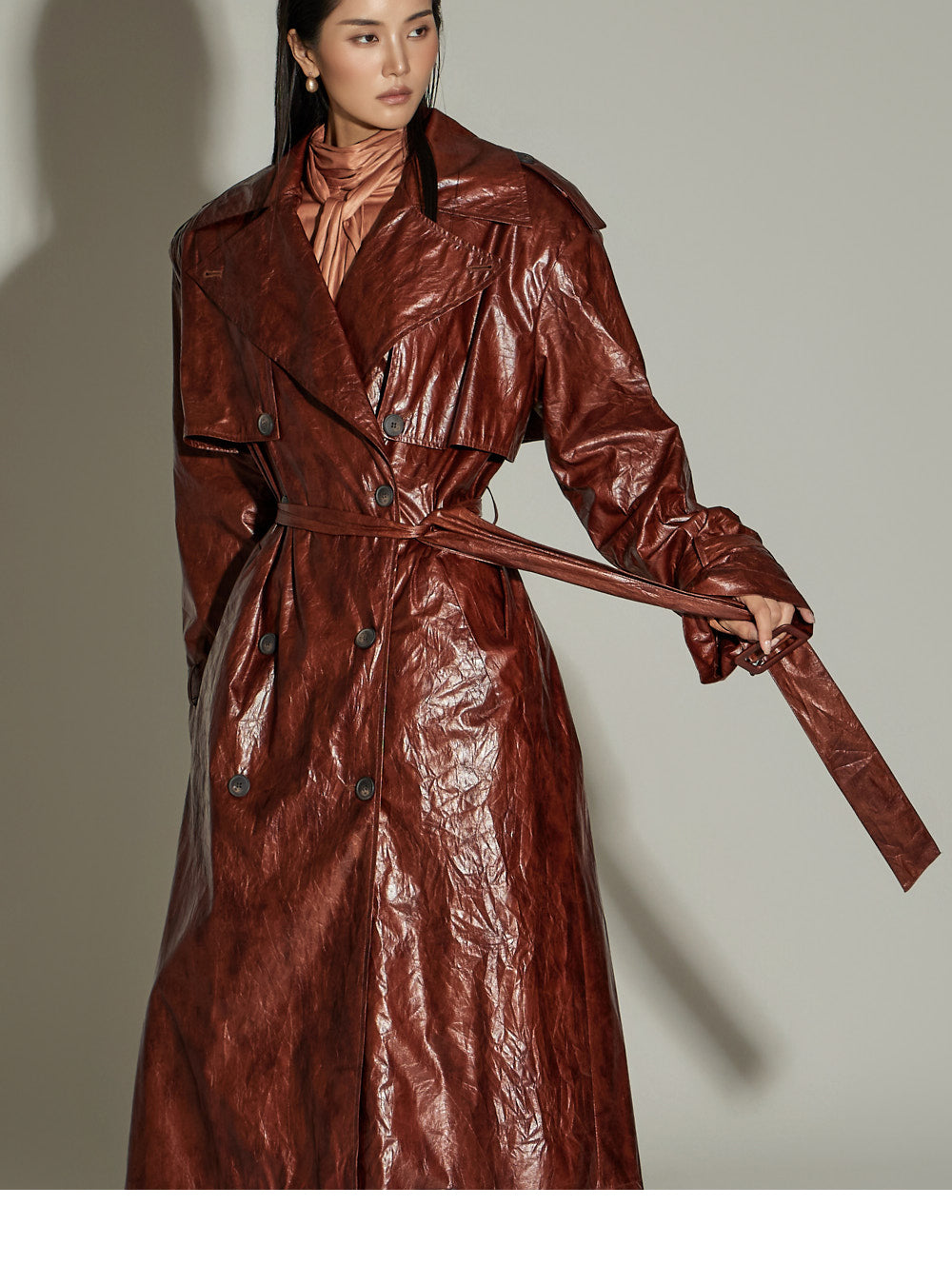 creates a stylish silhouette, and the integrated scarf detail at the neck