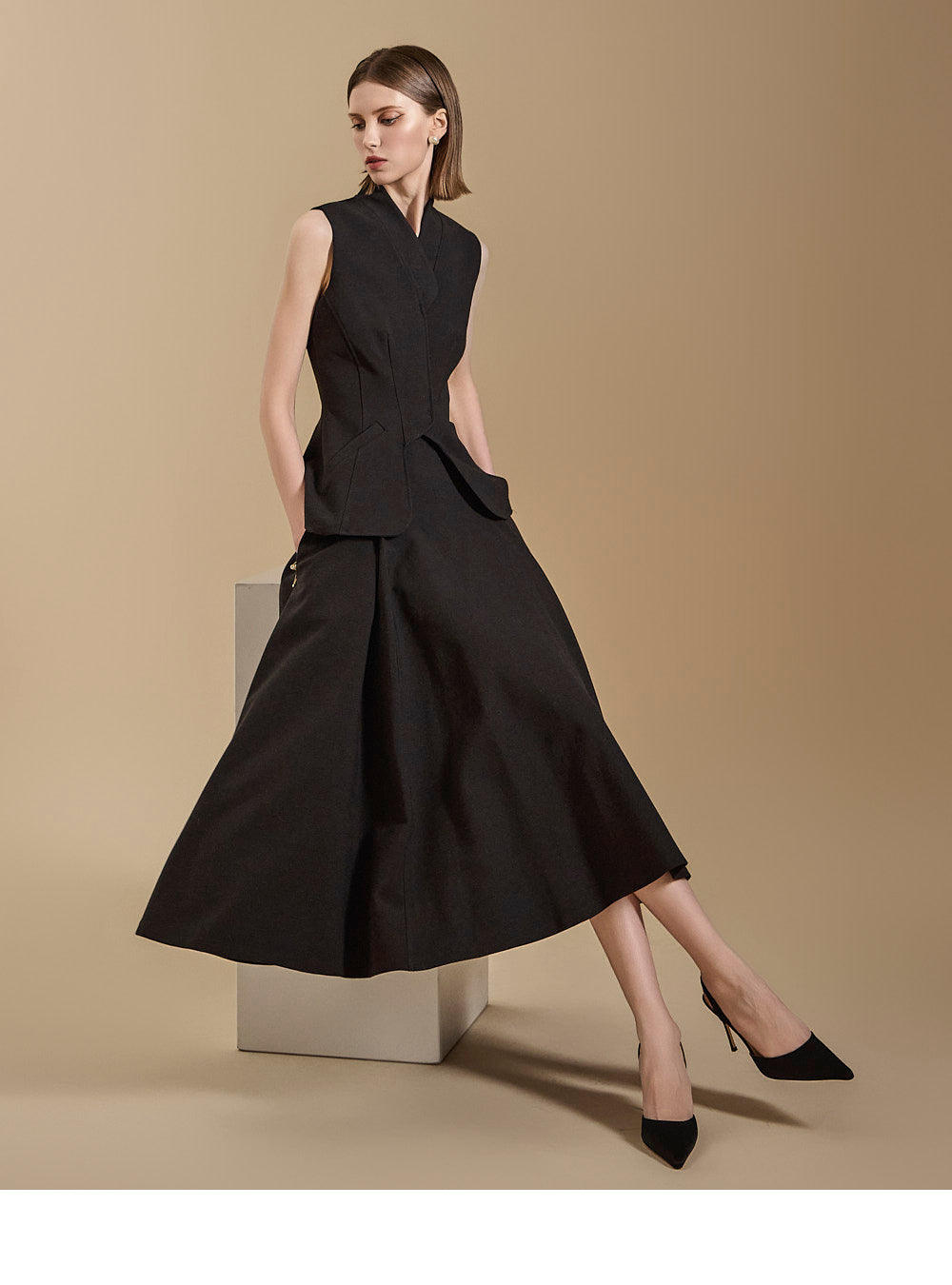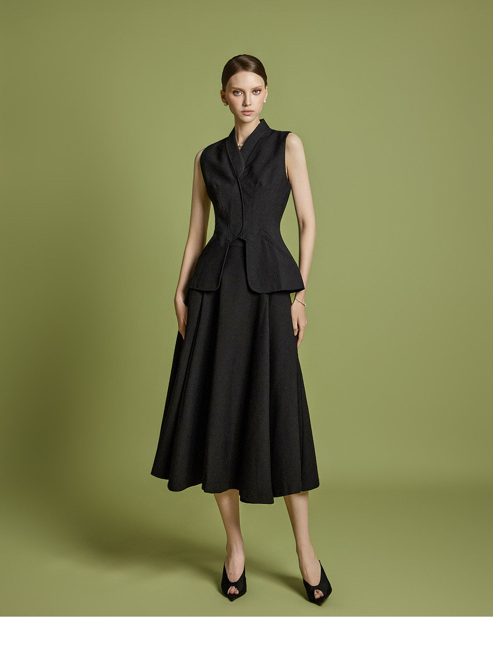 Enhanced with a vest design, it adds a touch of classic mood, and