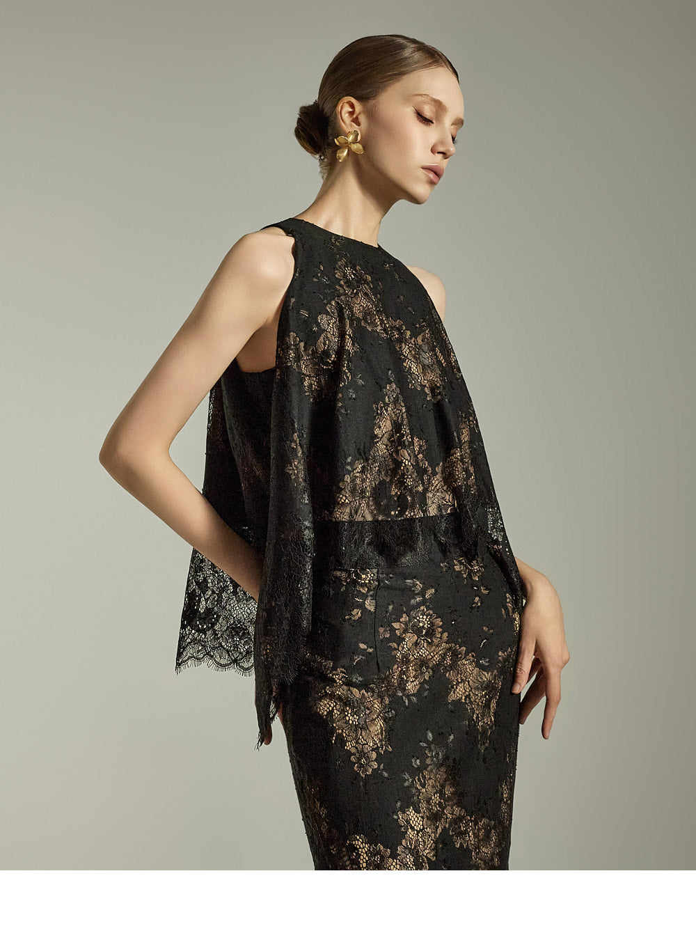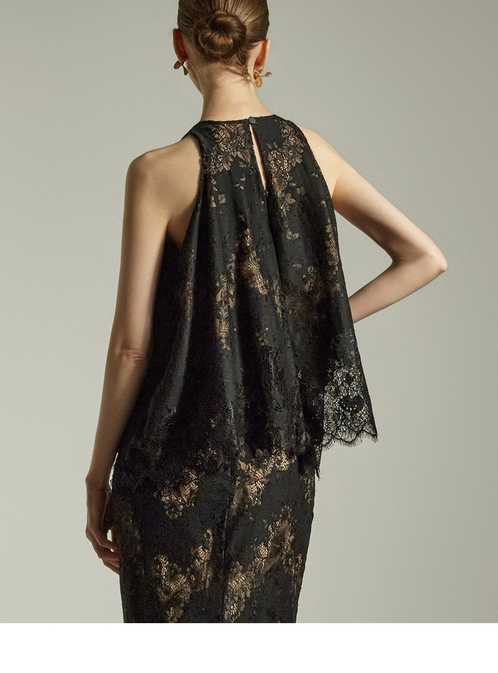 This floral lace sleeveless blouse offers a refined and elegant look.