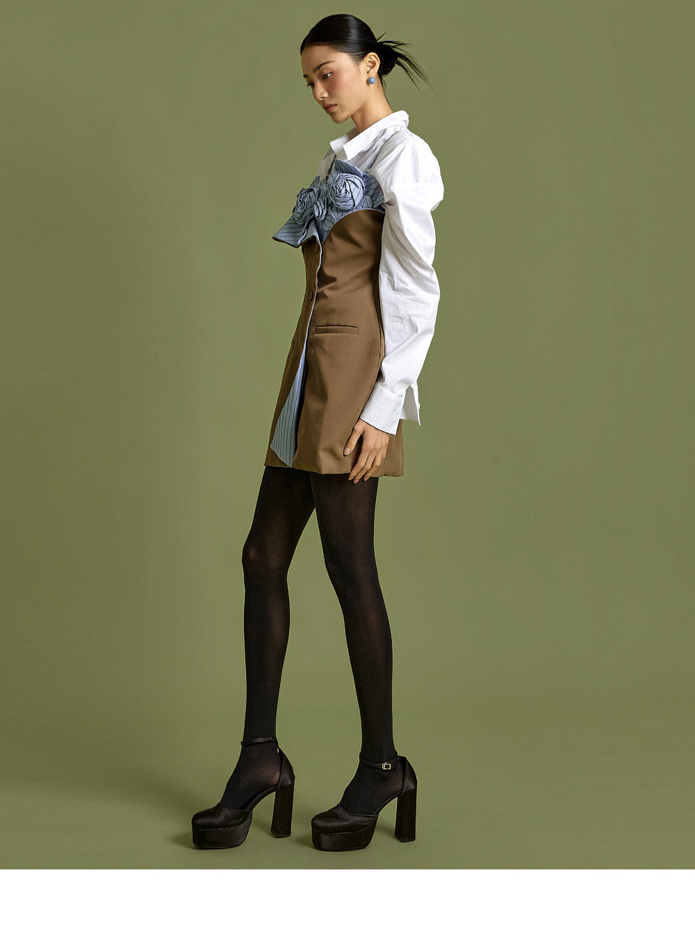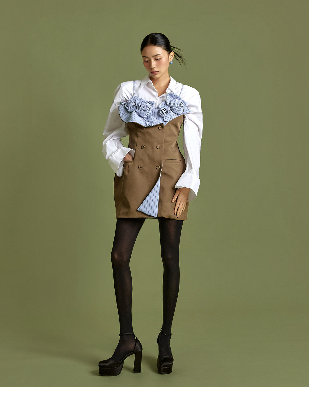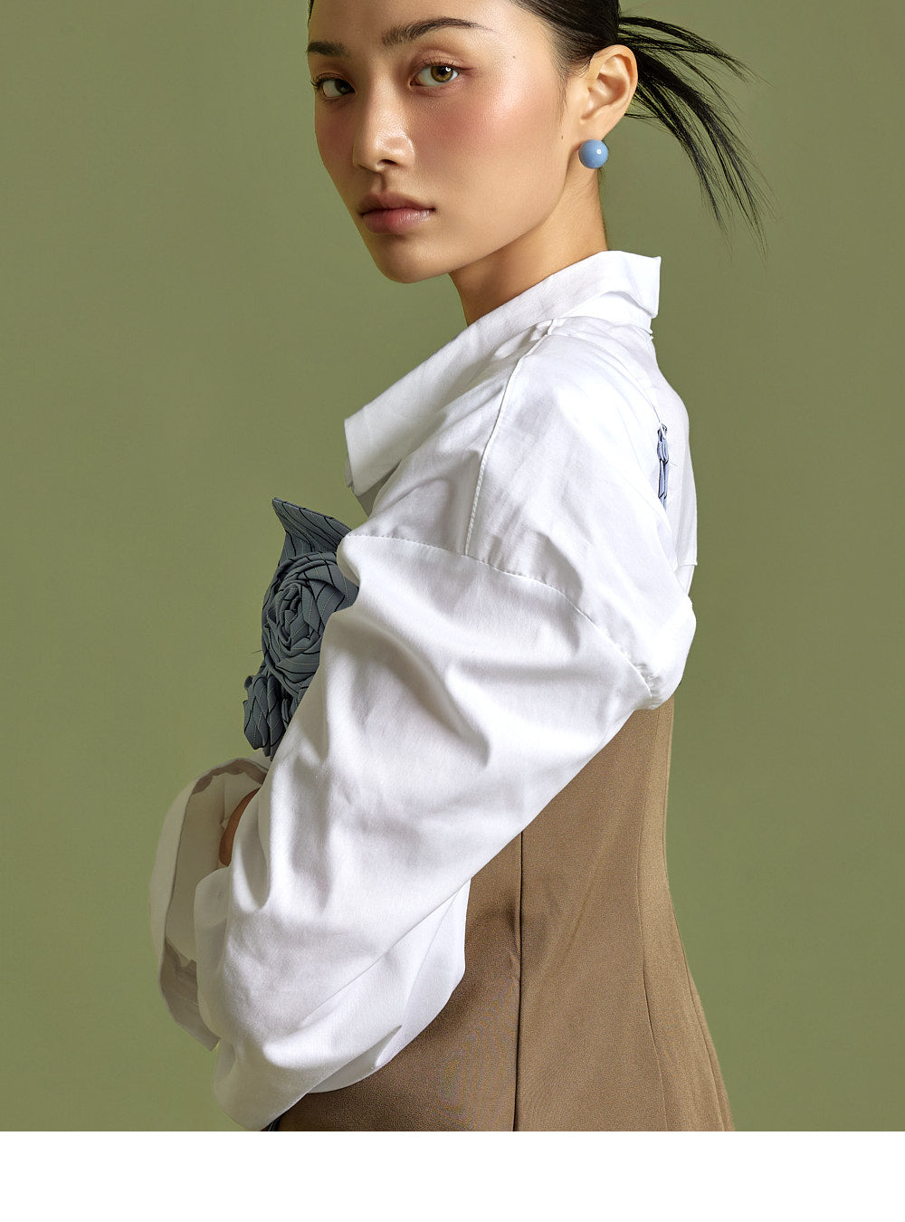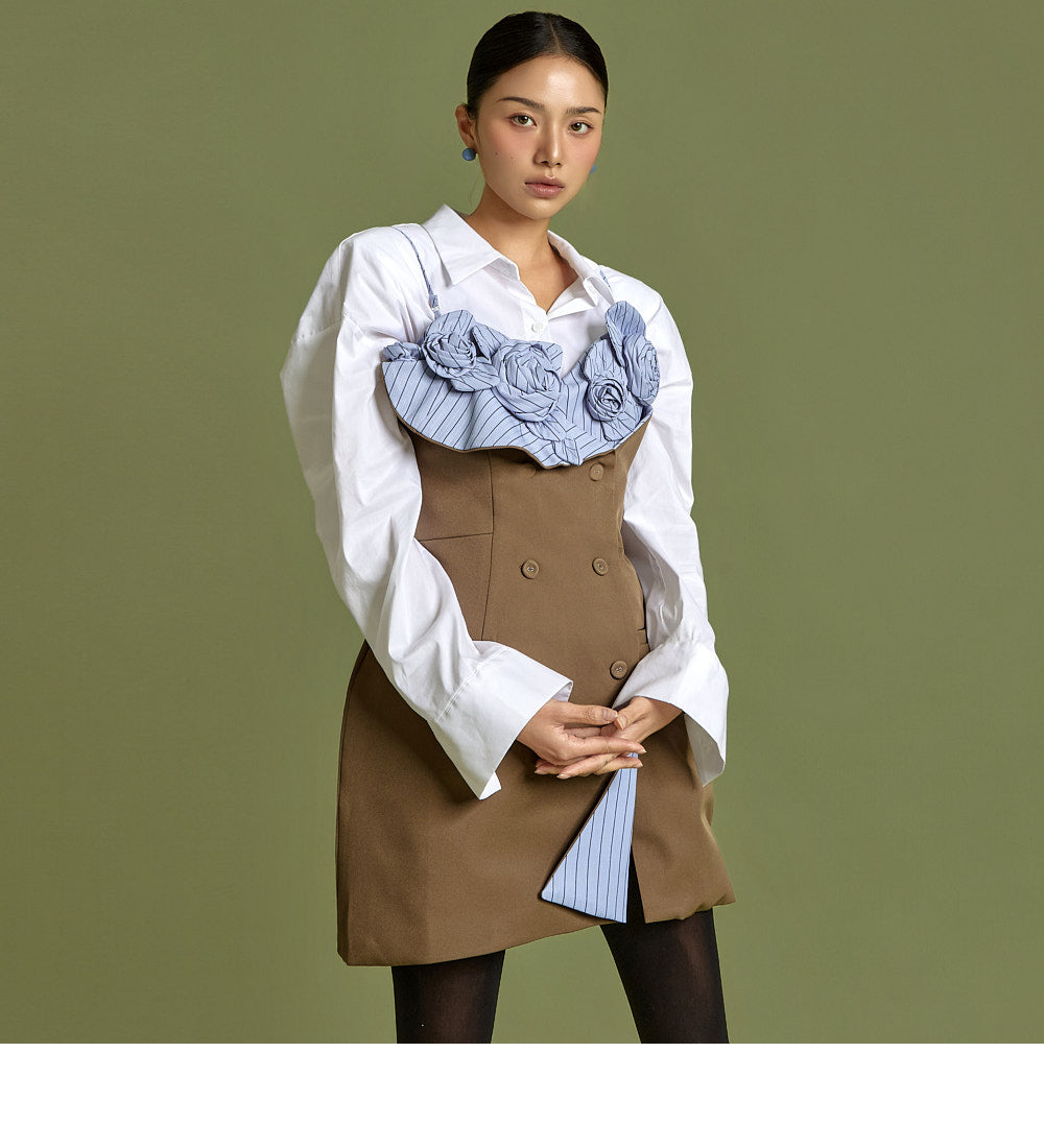 The three-dimensional flower decoration on the chest accentuates the dress,