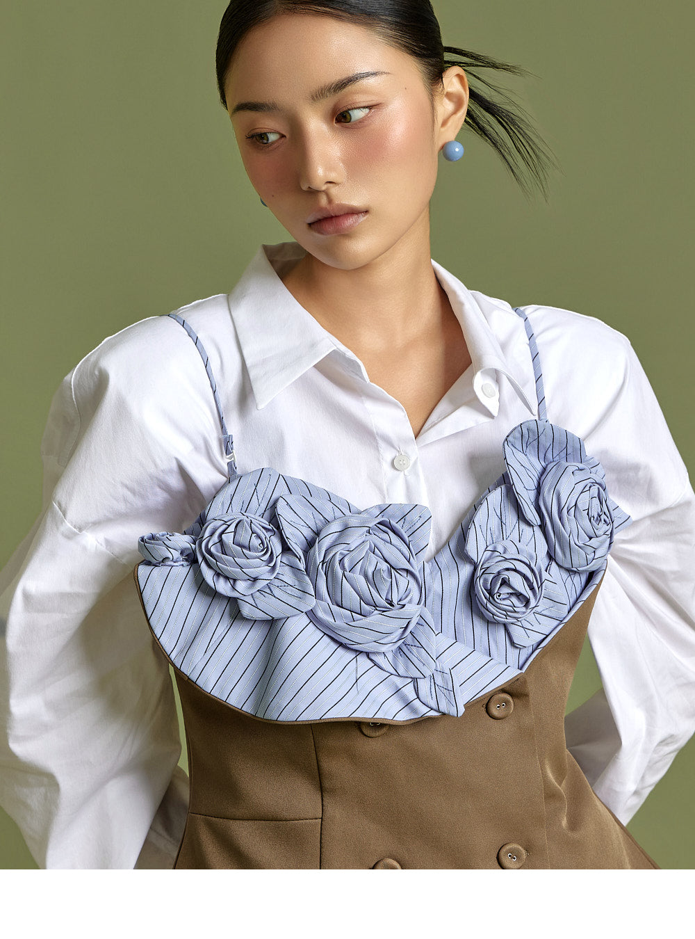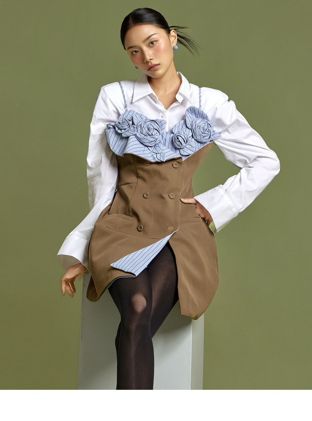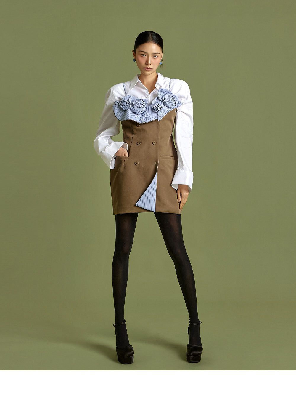 The three-dimensional flower decoration on the chest accentuates the dress,