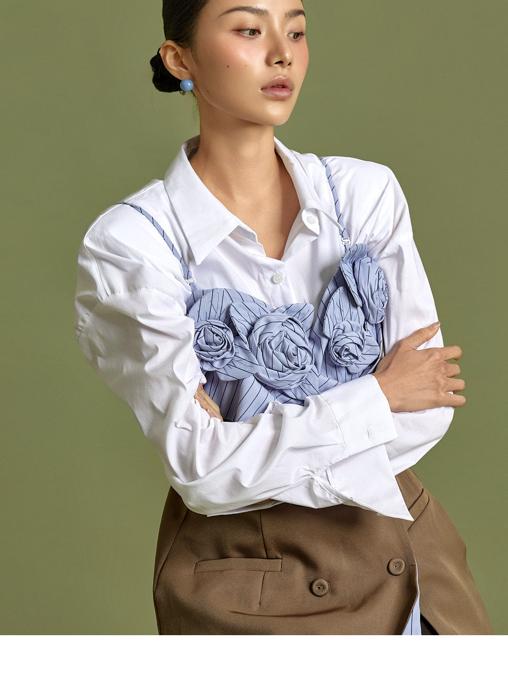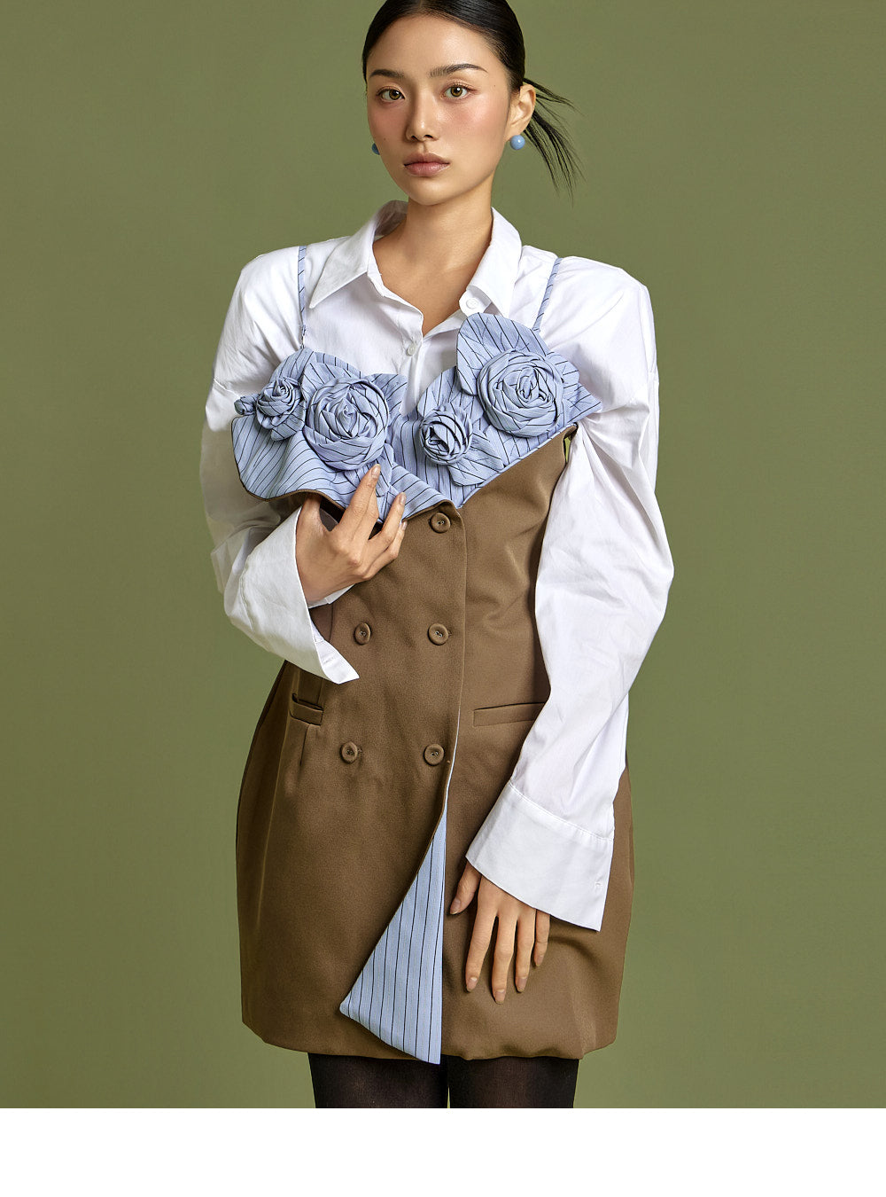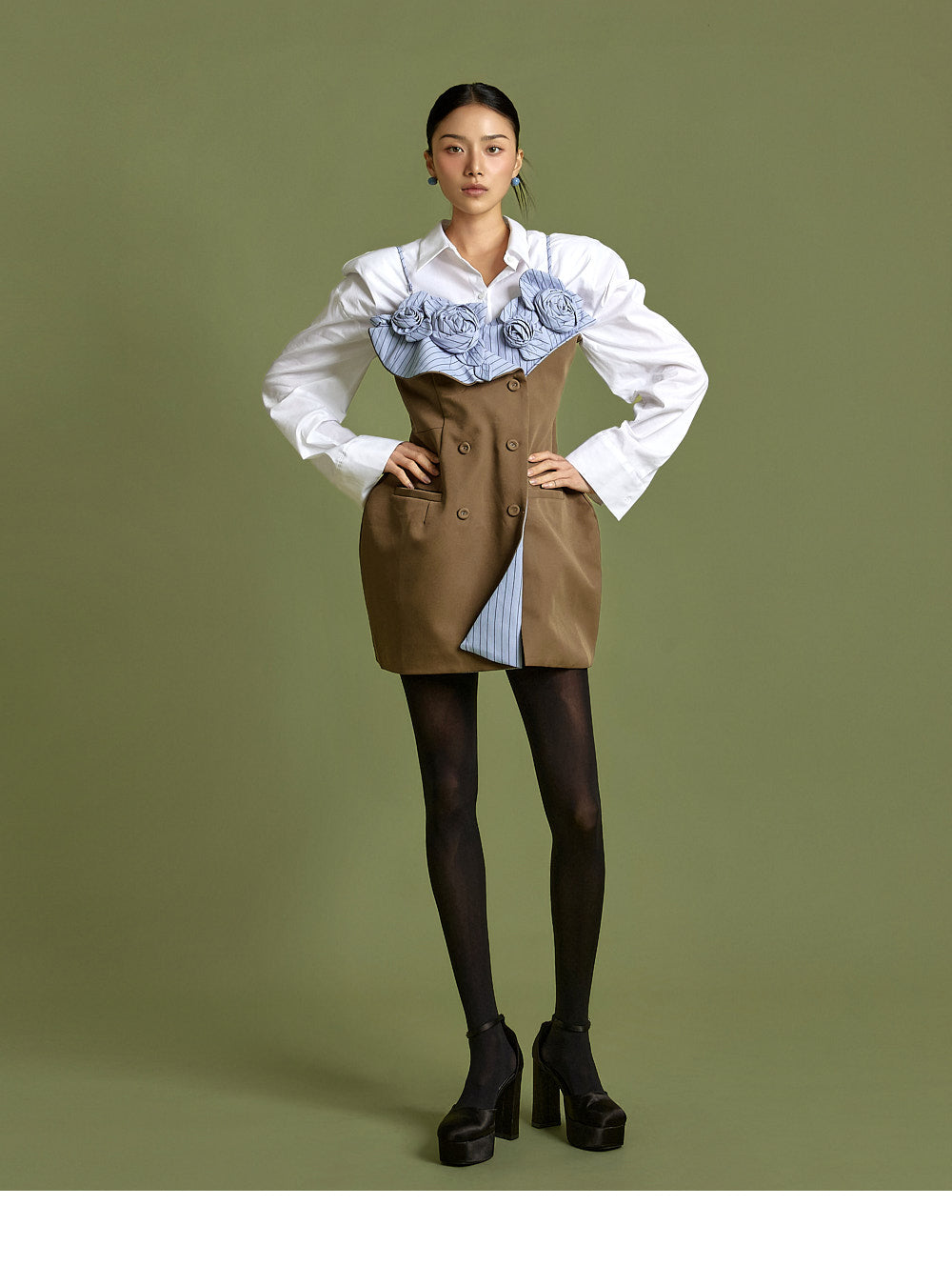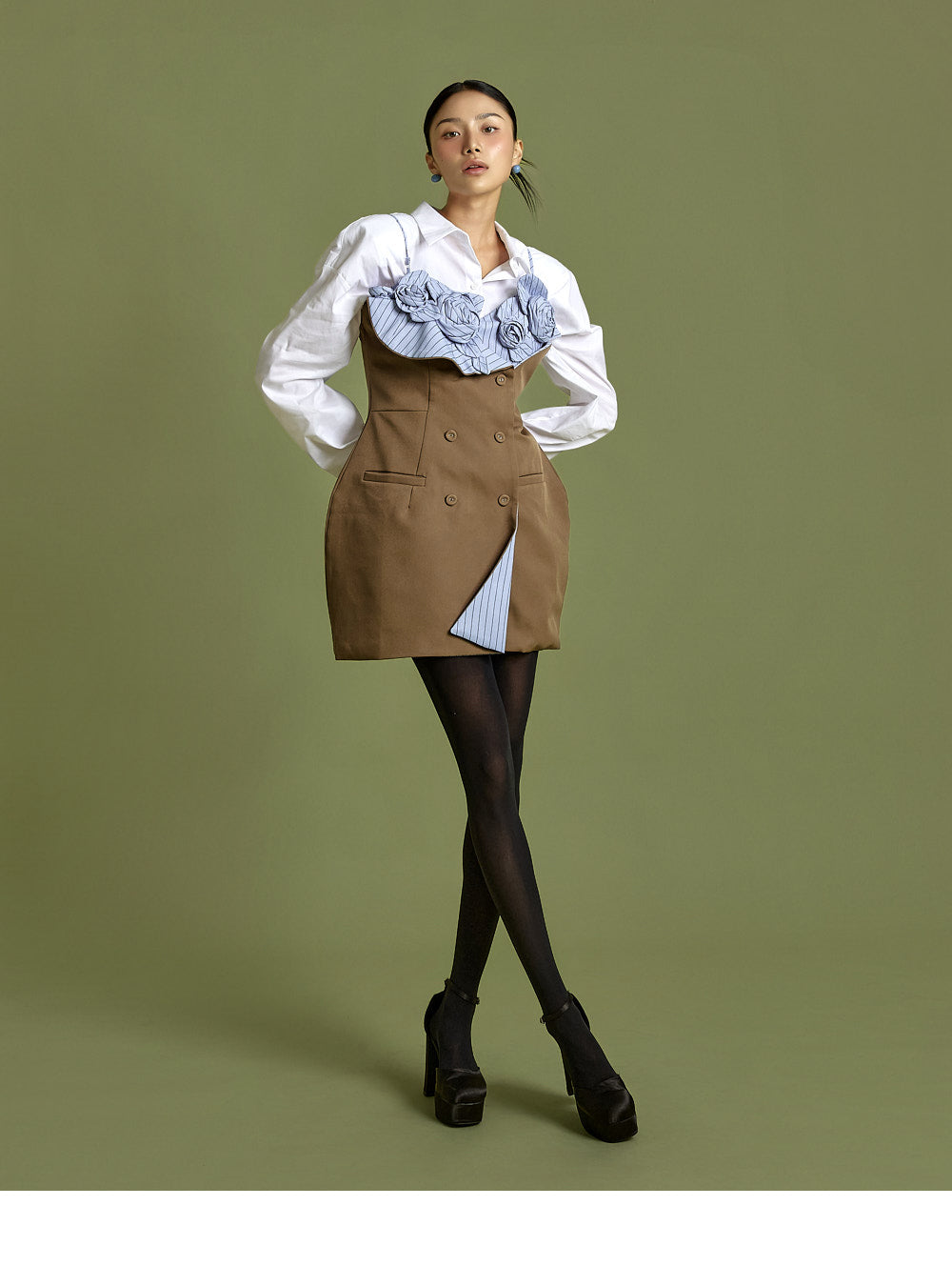 The three-dimensional flower decoration on the chest accentuates the dress,