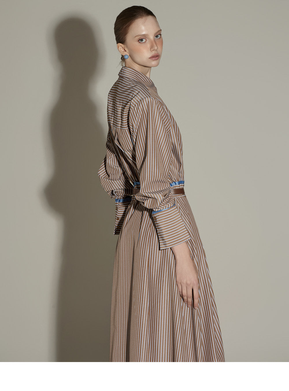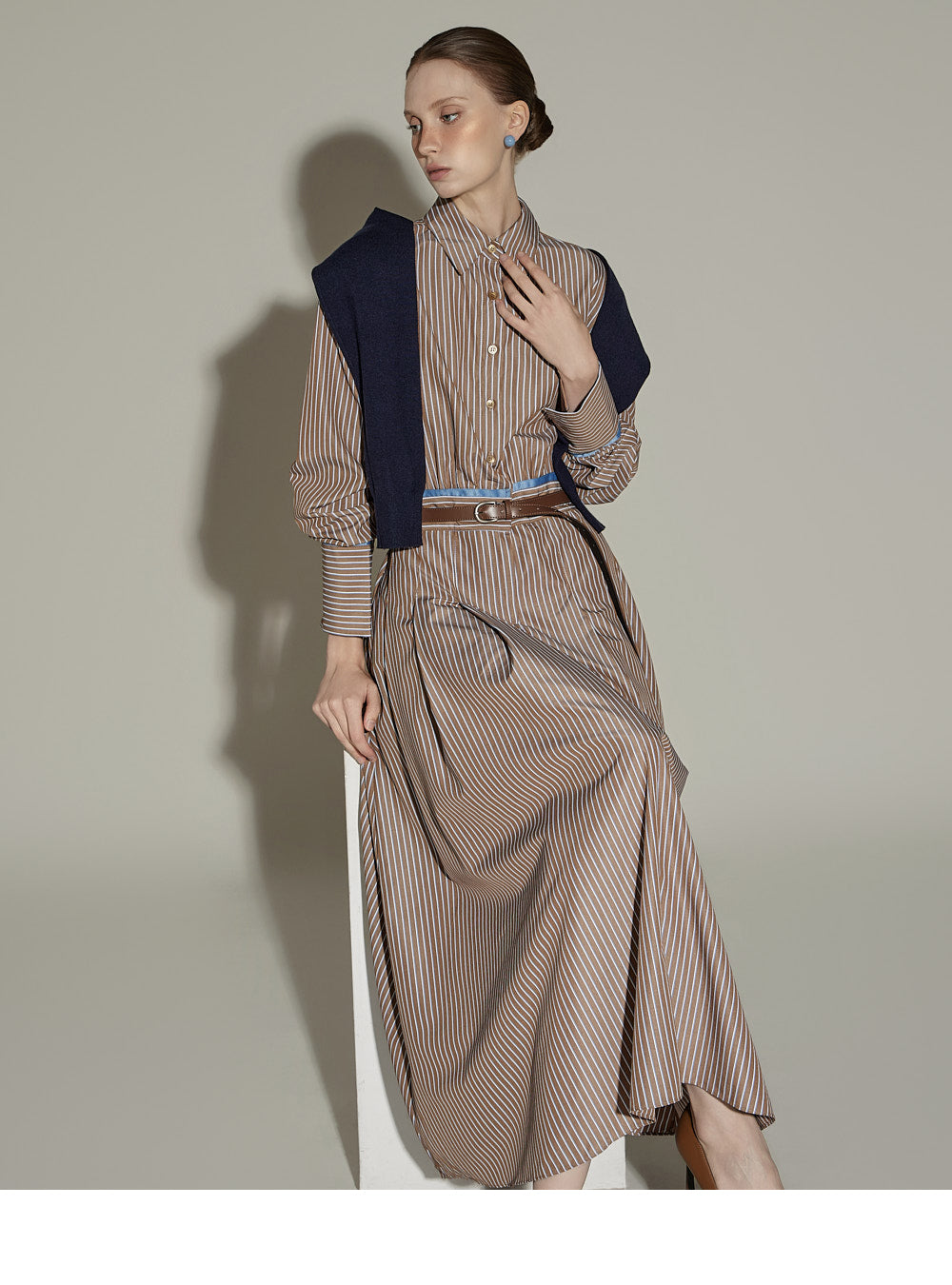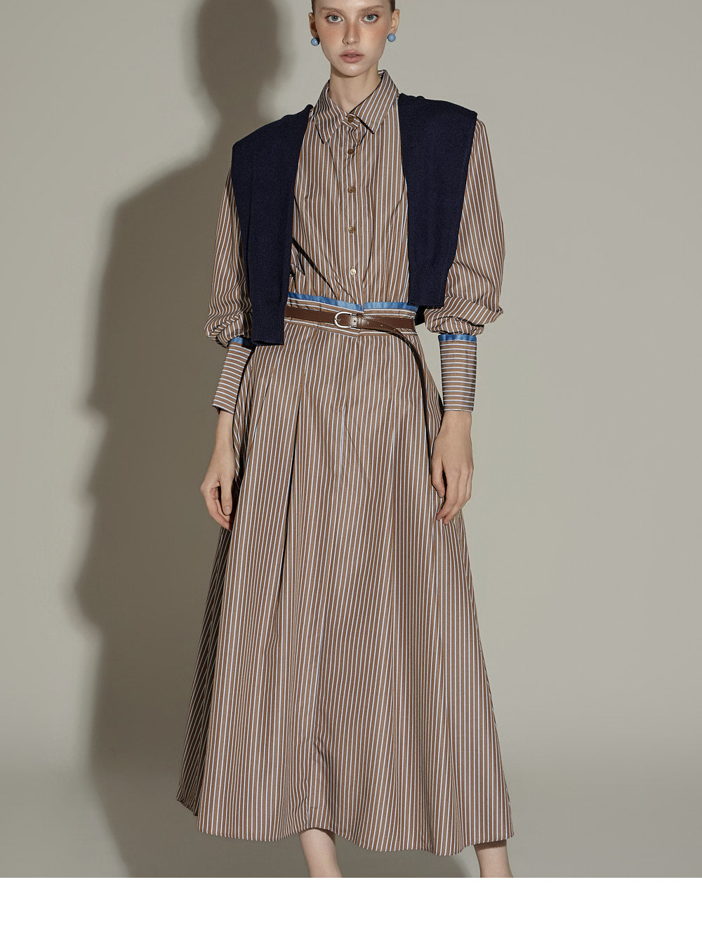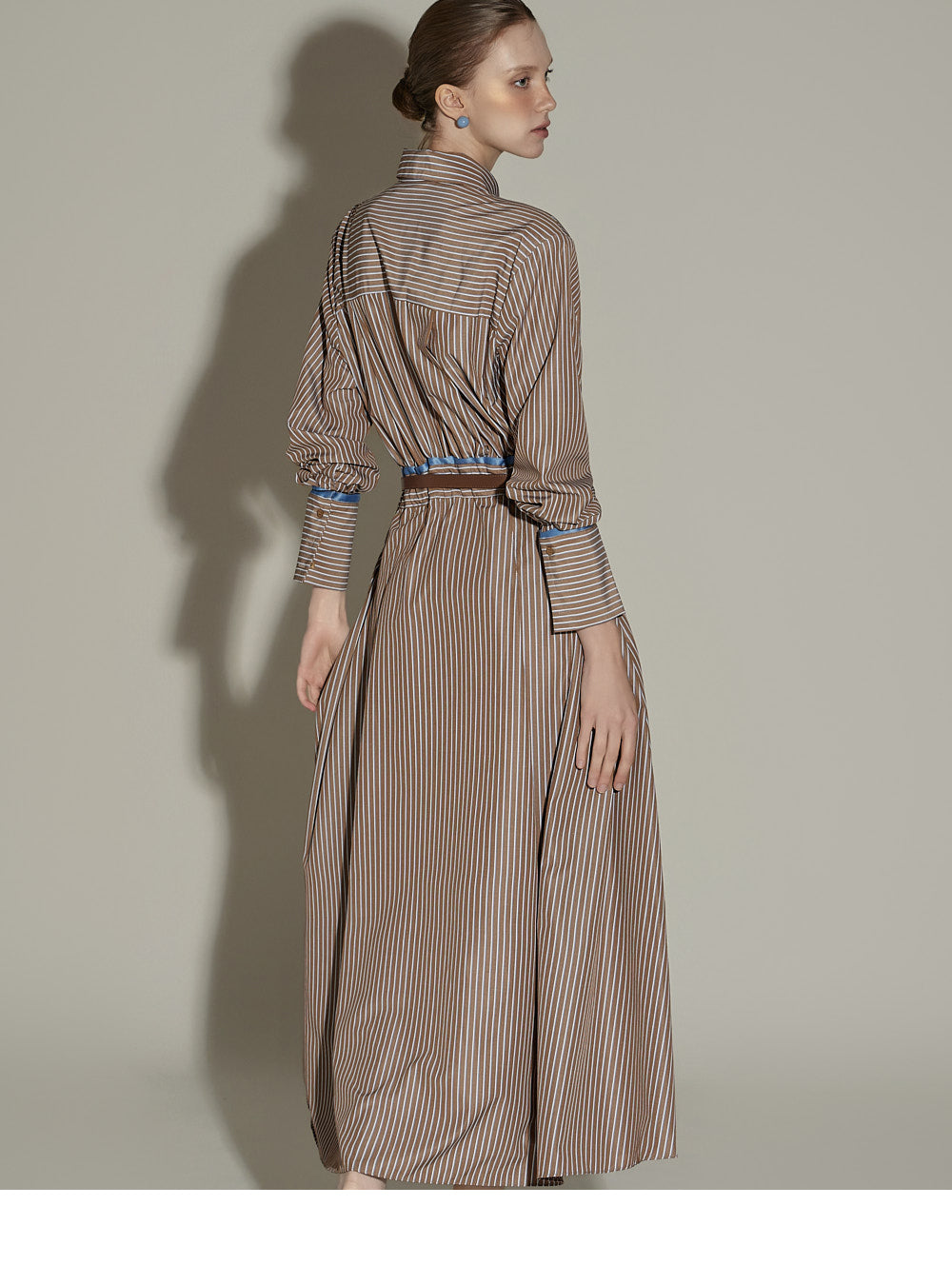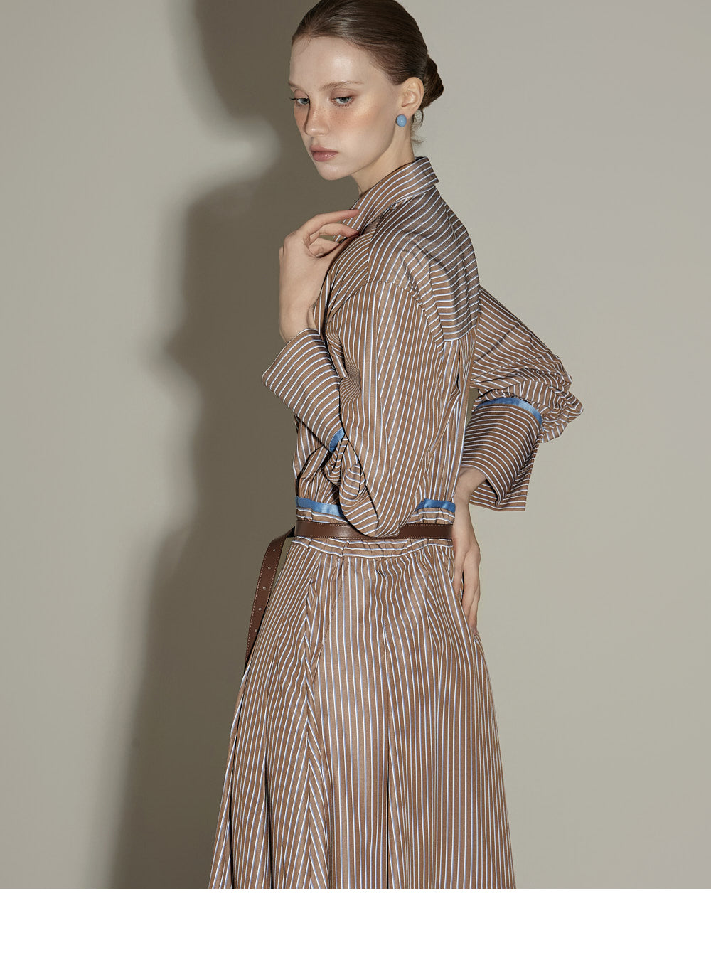while the overall striped pattern and contrasting color accents on the waist and sleeves