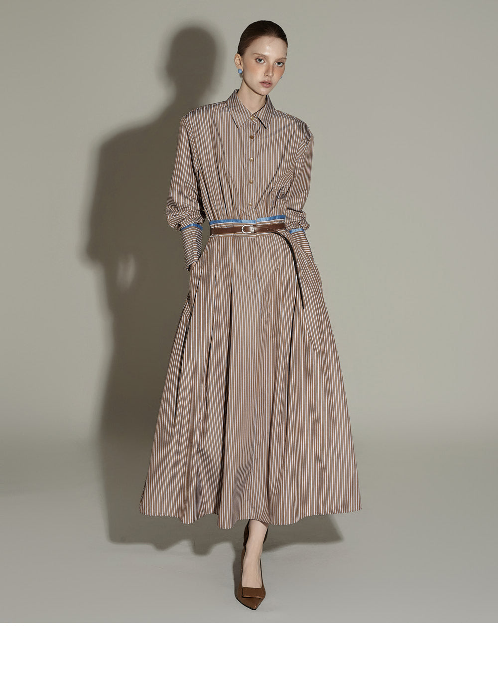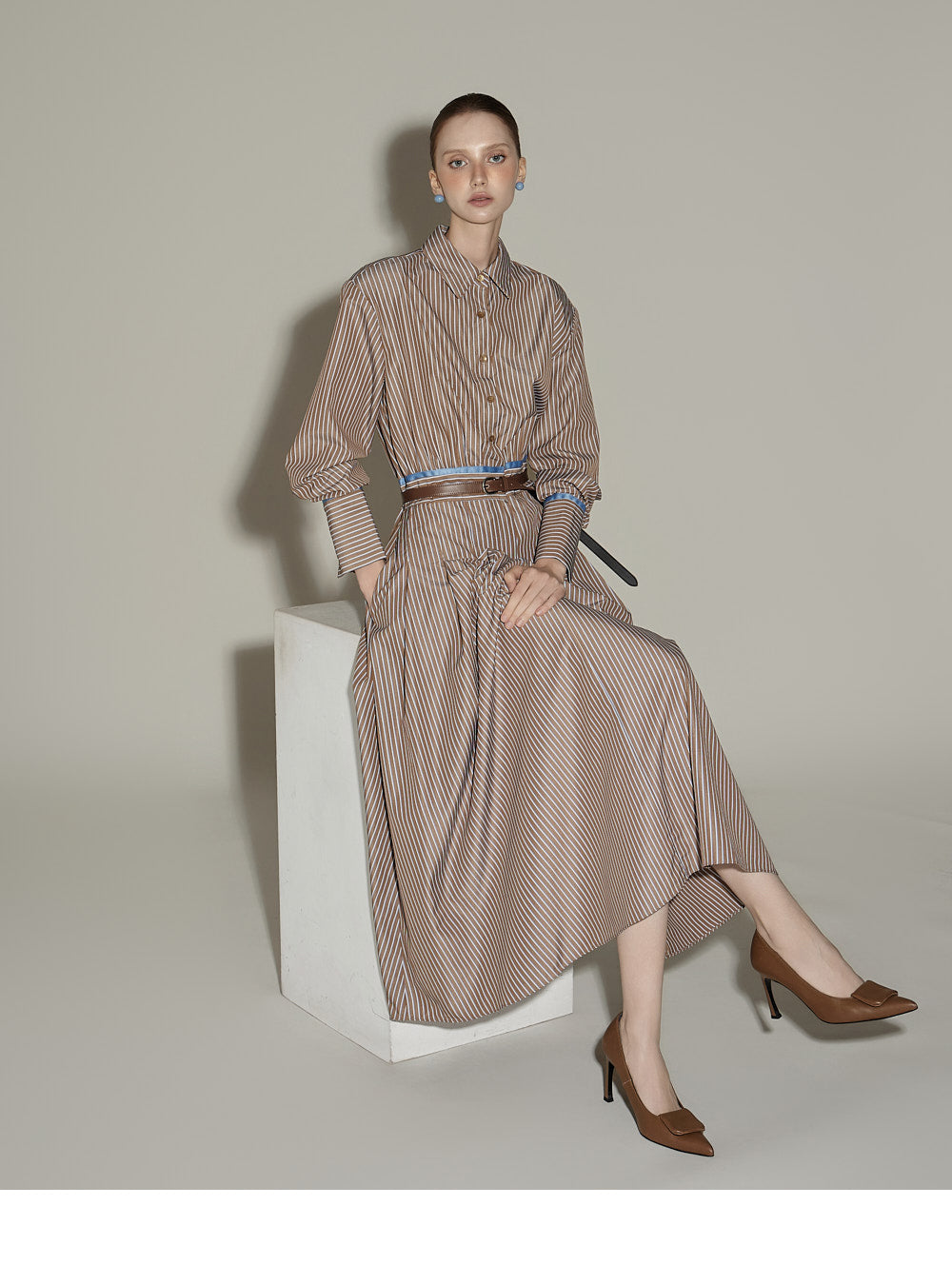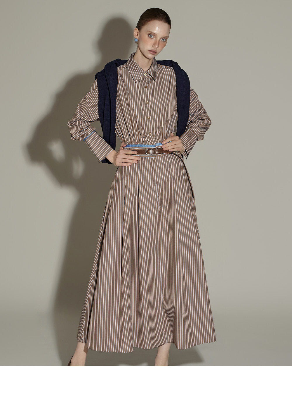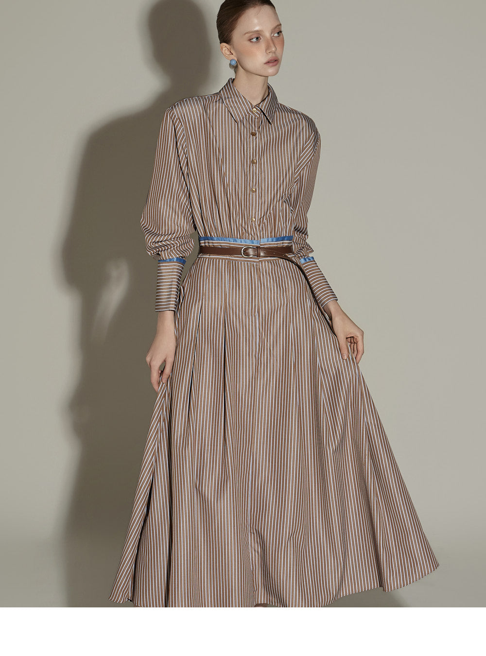 while the overall striped pattern and contrasting color accents on the waist and sleeves