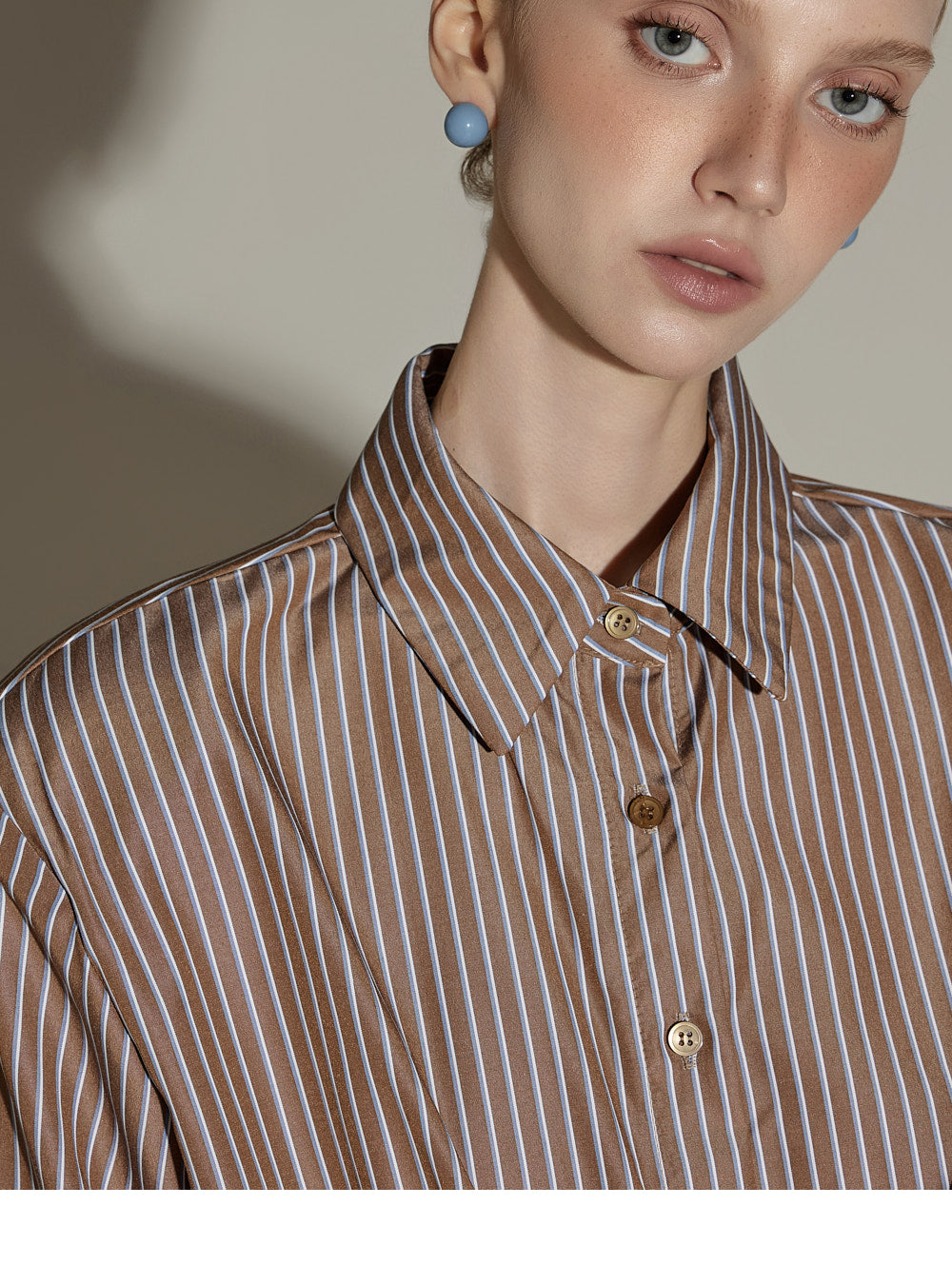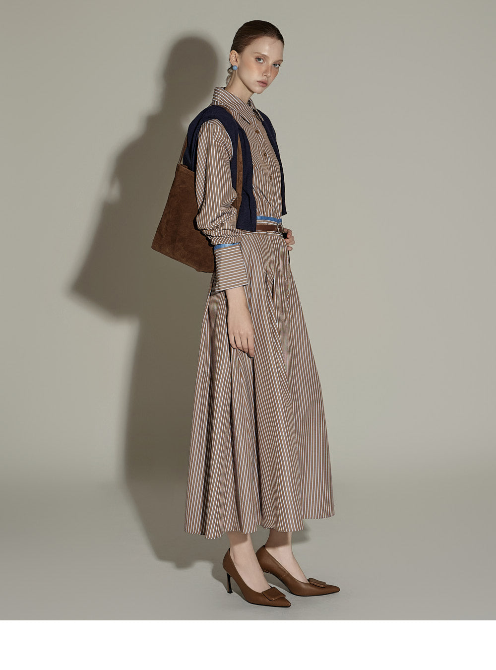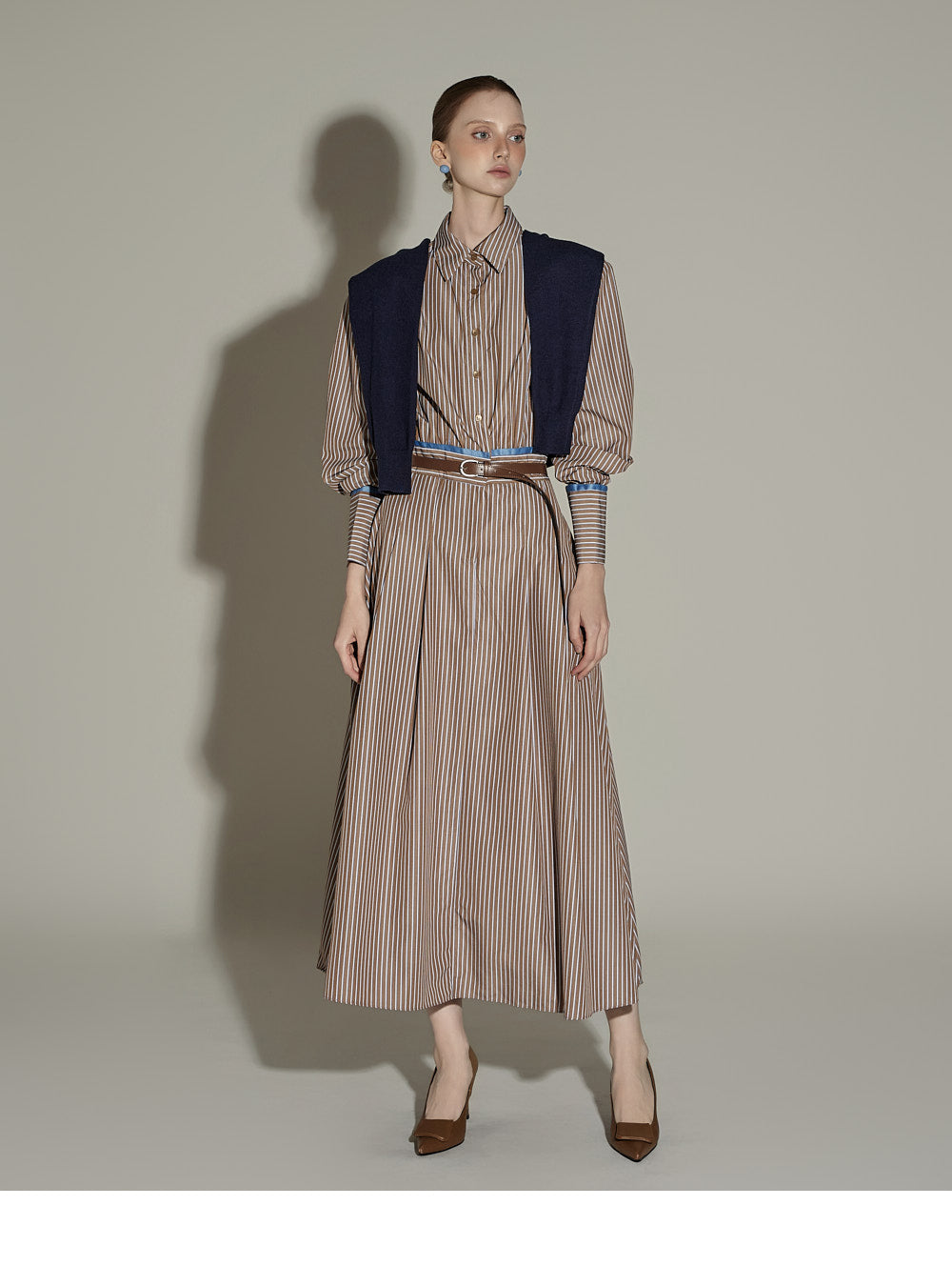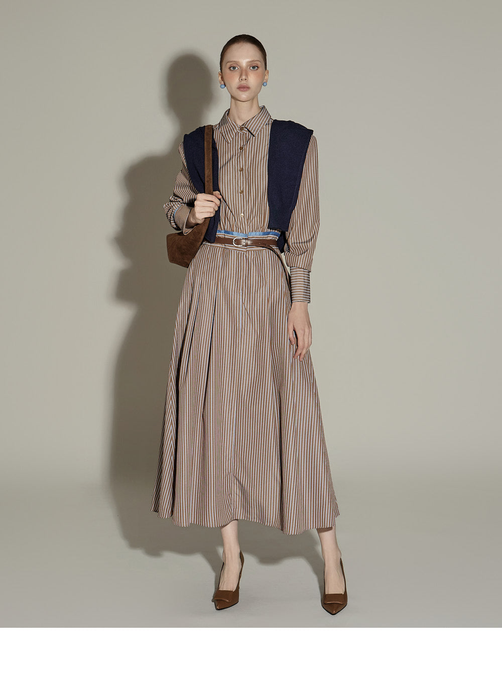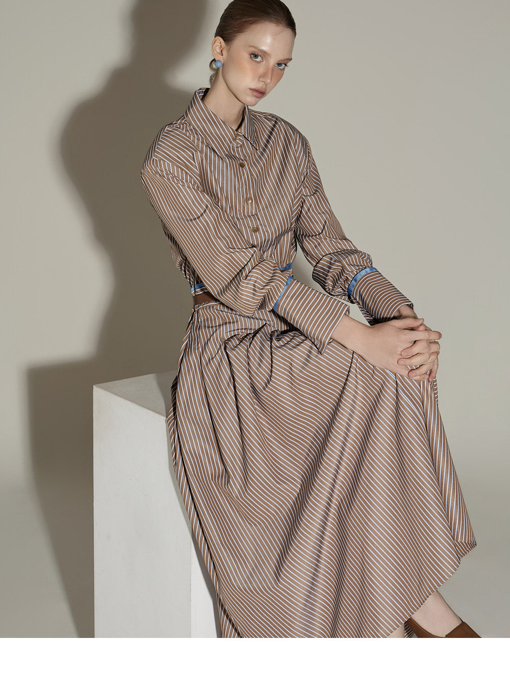 while the overall striped pattern and contrasting color accents on the waist and sleeves