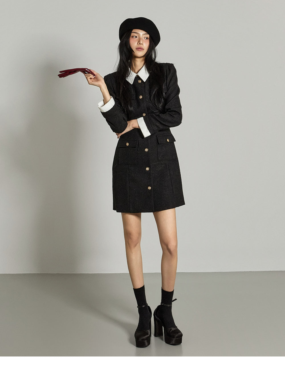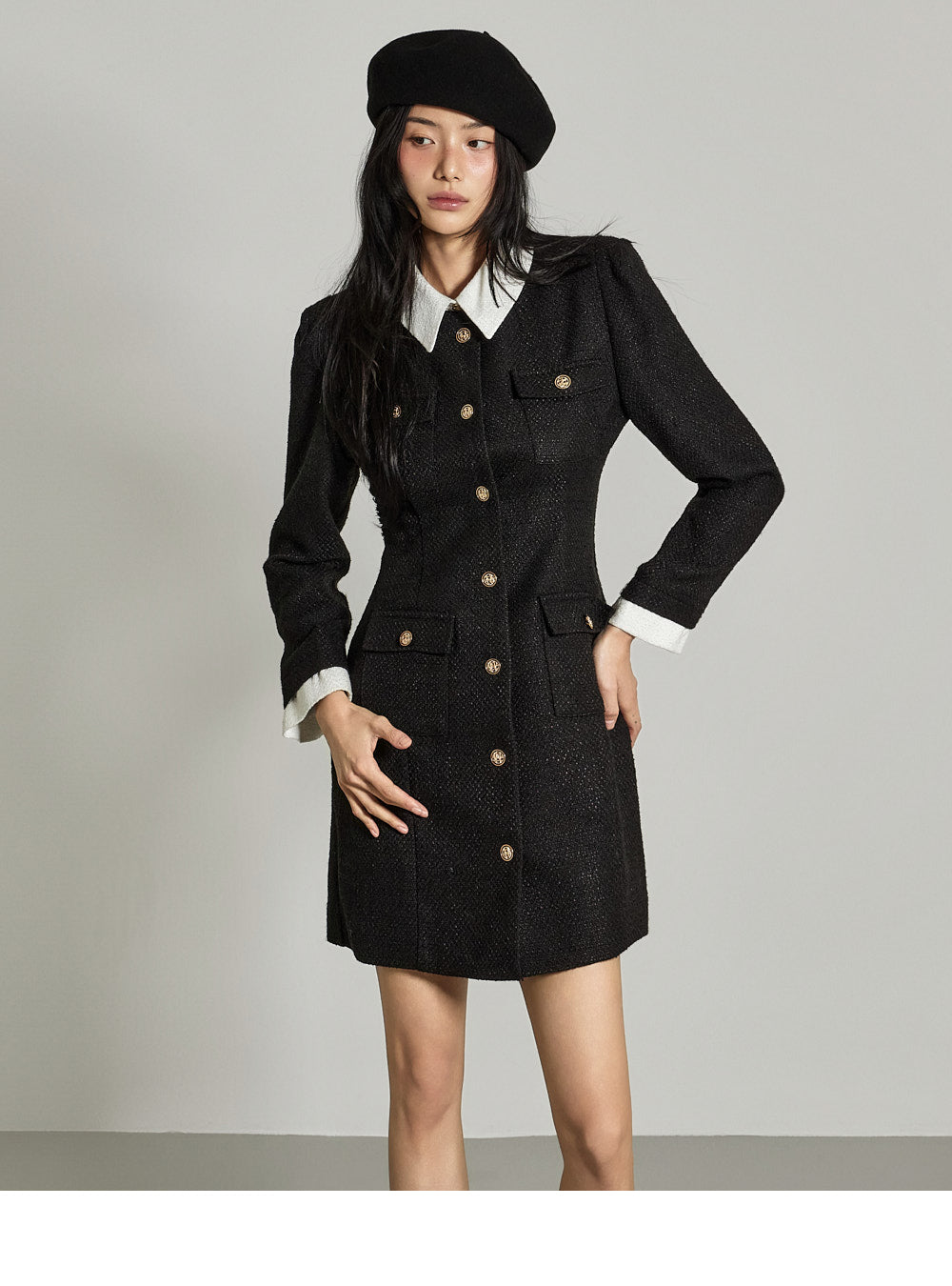 This feminine two-tone tweed collar dress exudes a feminine vibe.Made from
