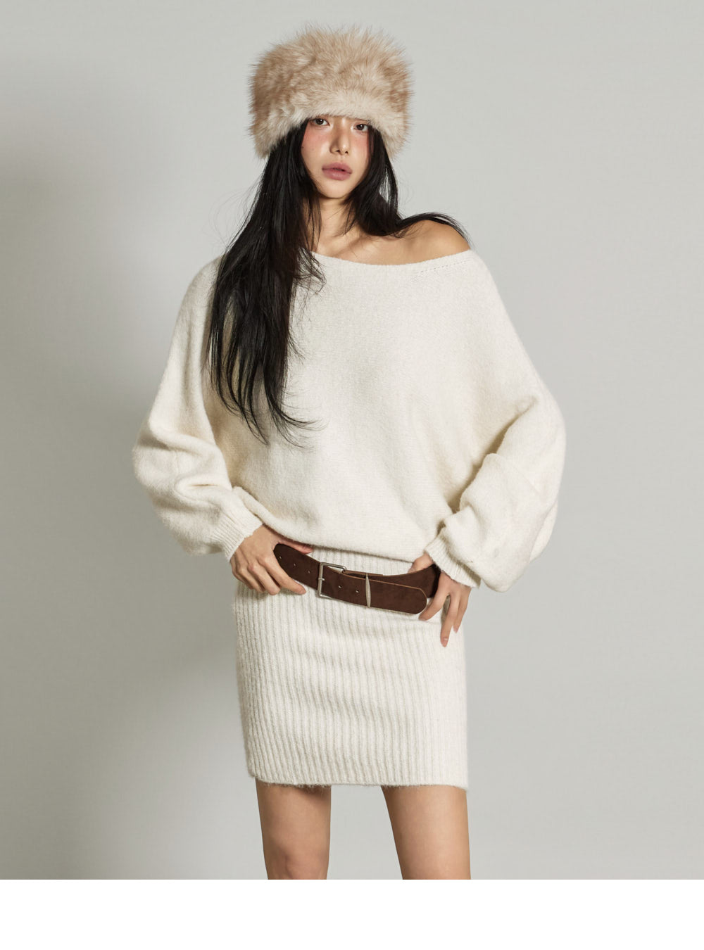 The 171cm model is wearing size ONE, color IVORY.