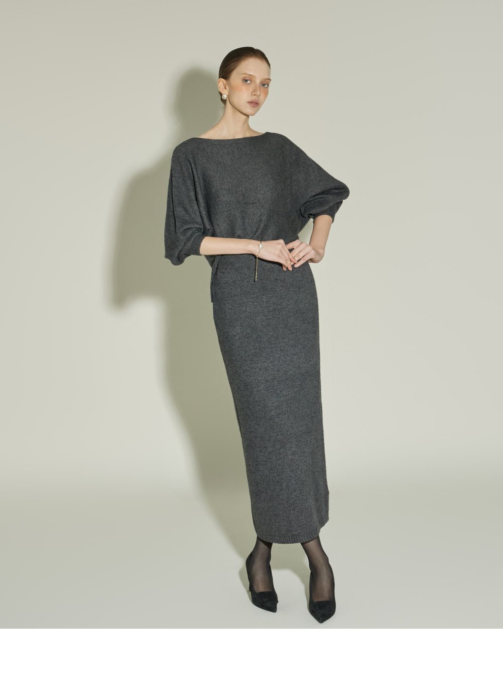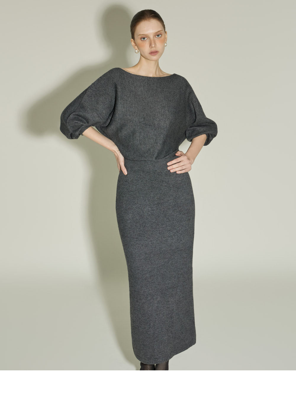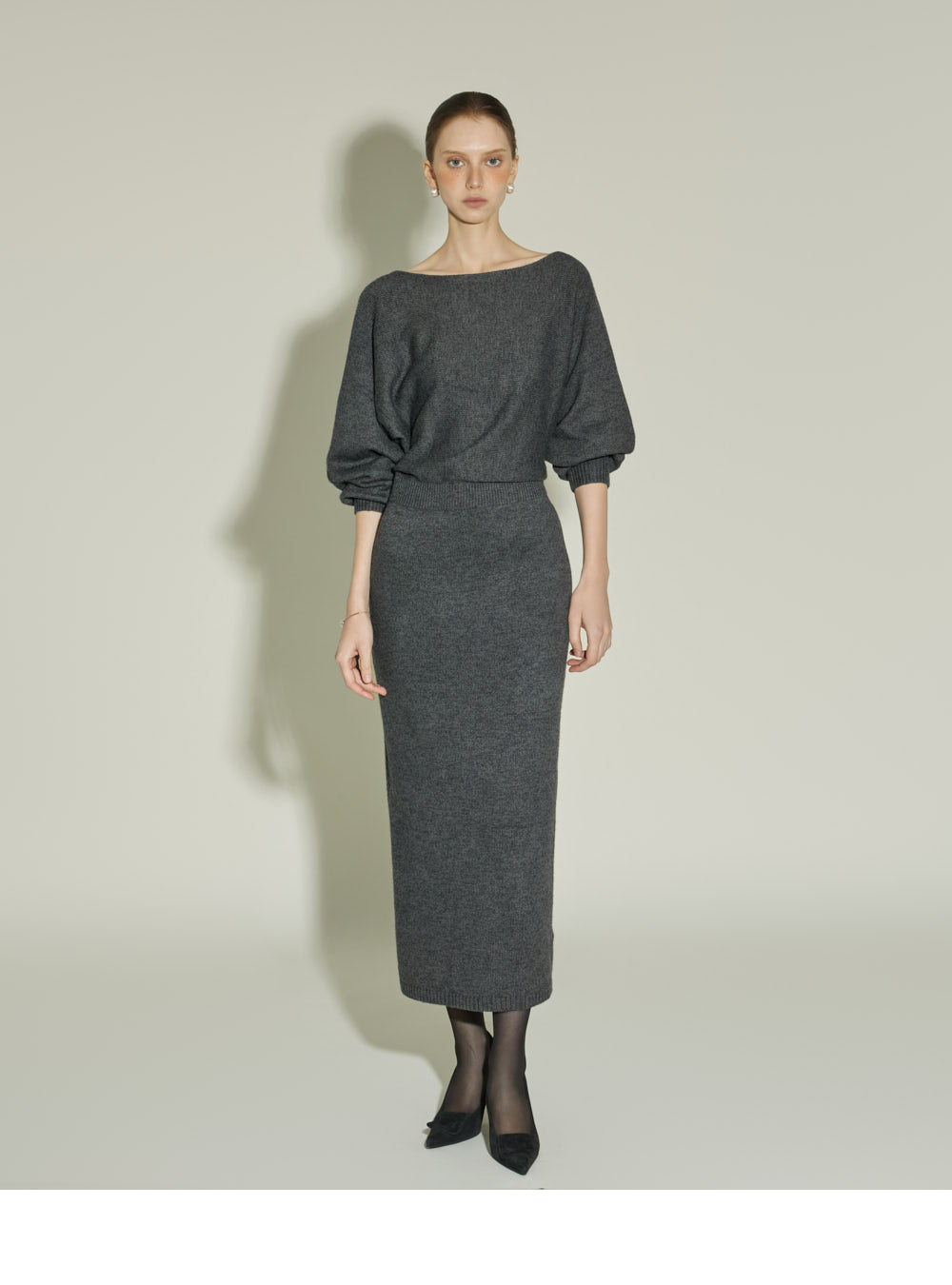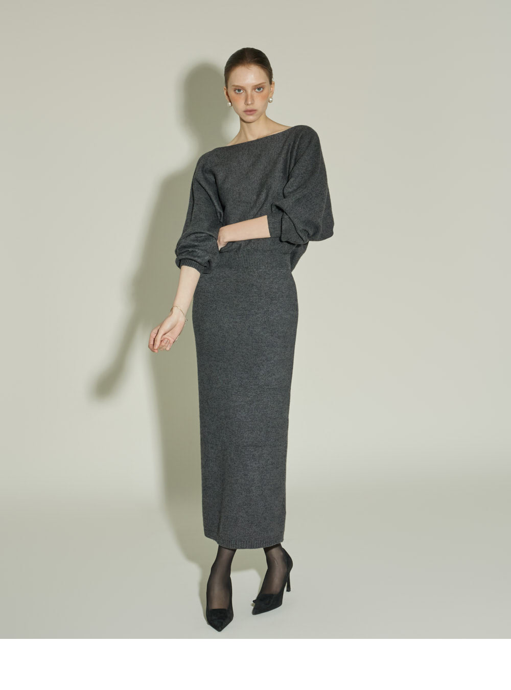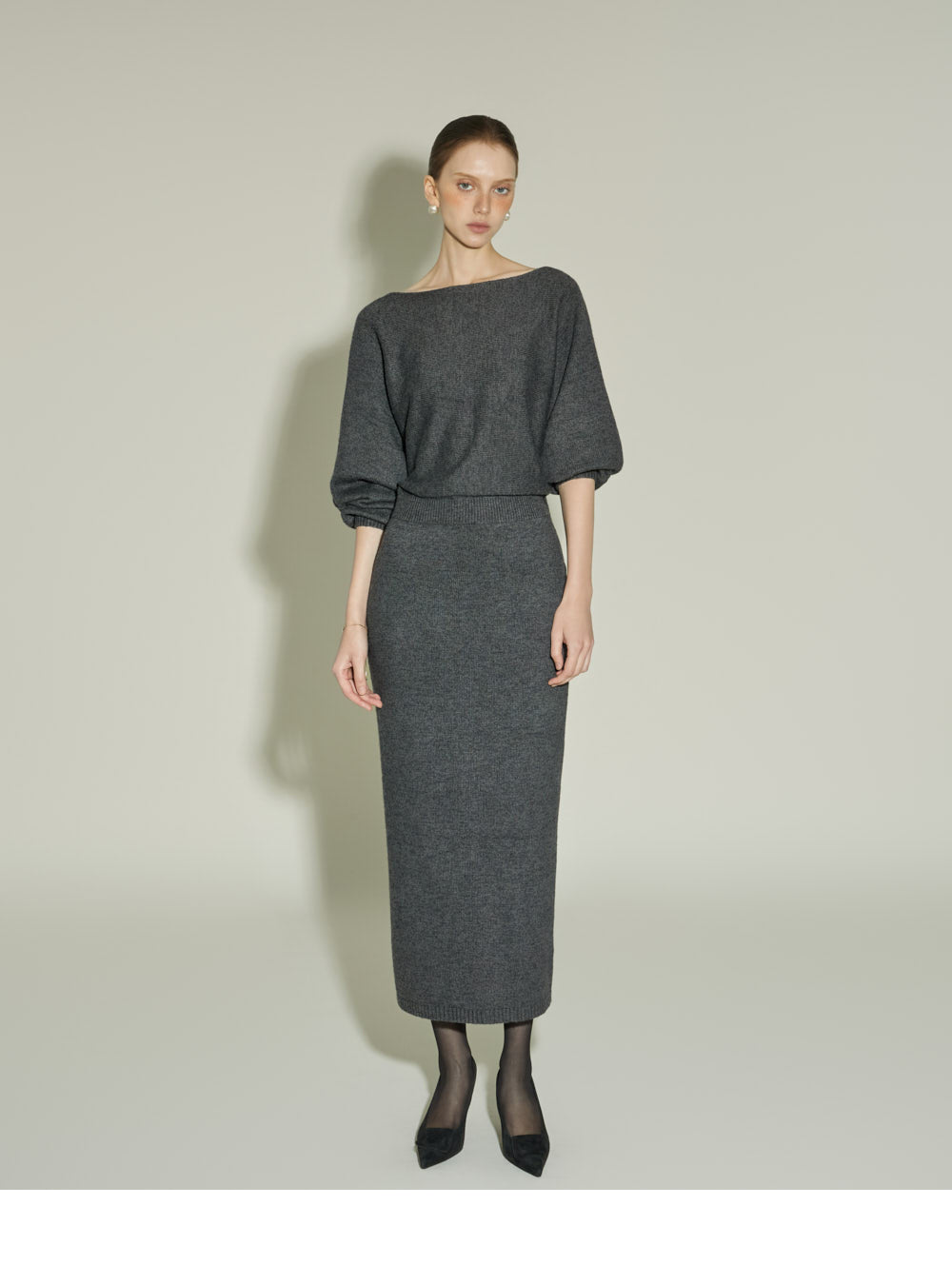 Model is 174cm tall and is wearing size one in CHARCOAL.