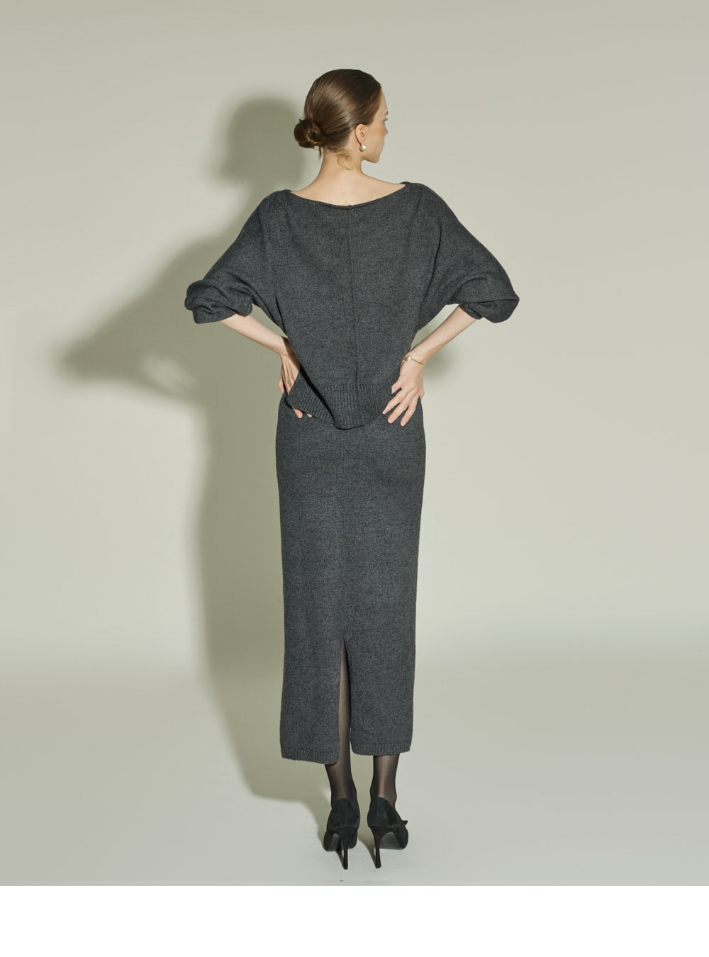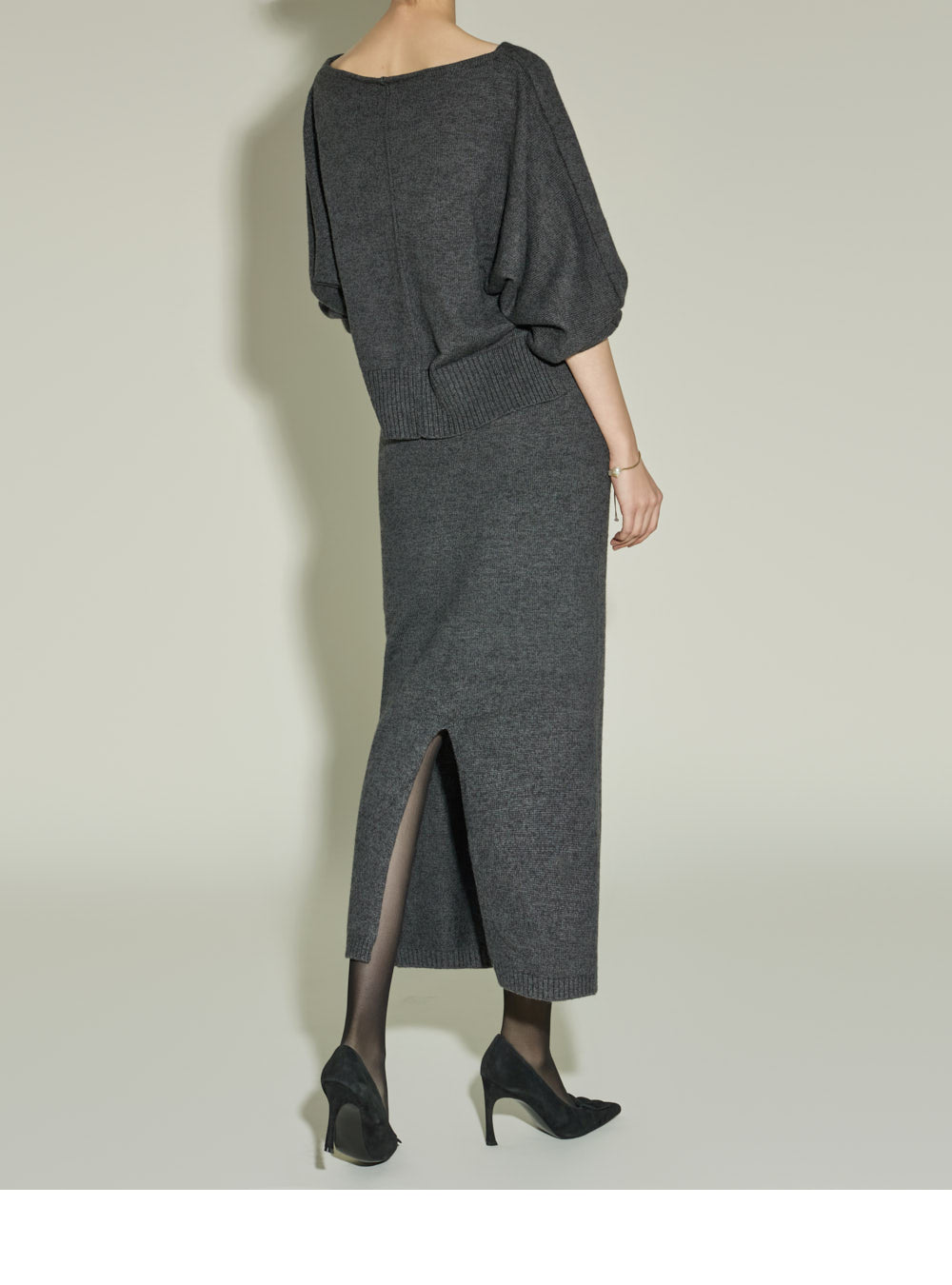with a back slit detail and a back slit skirt,