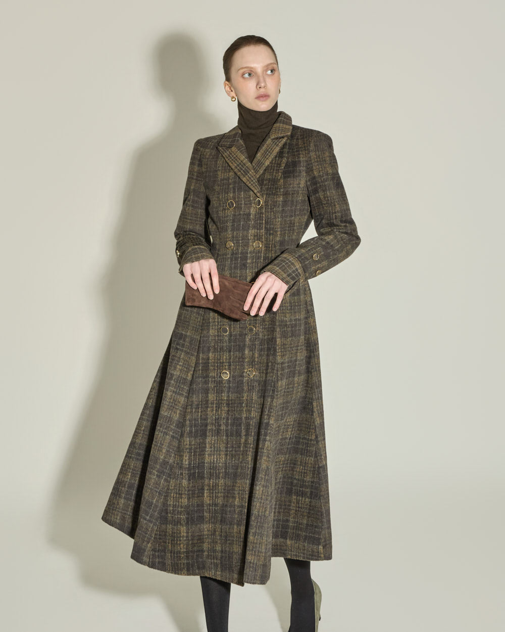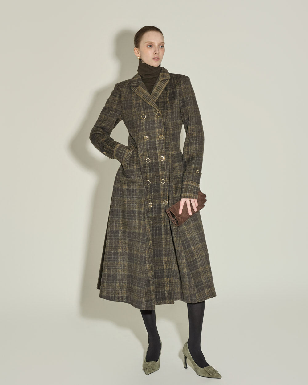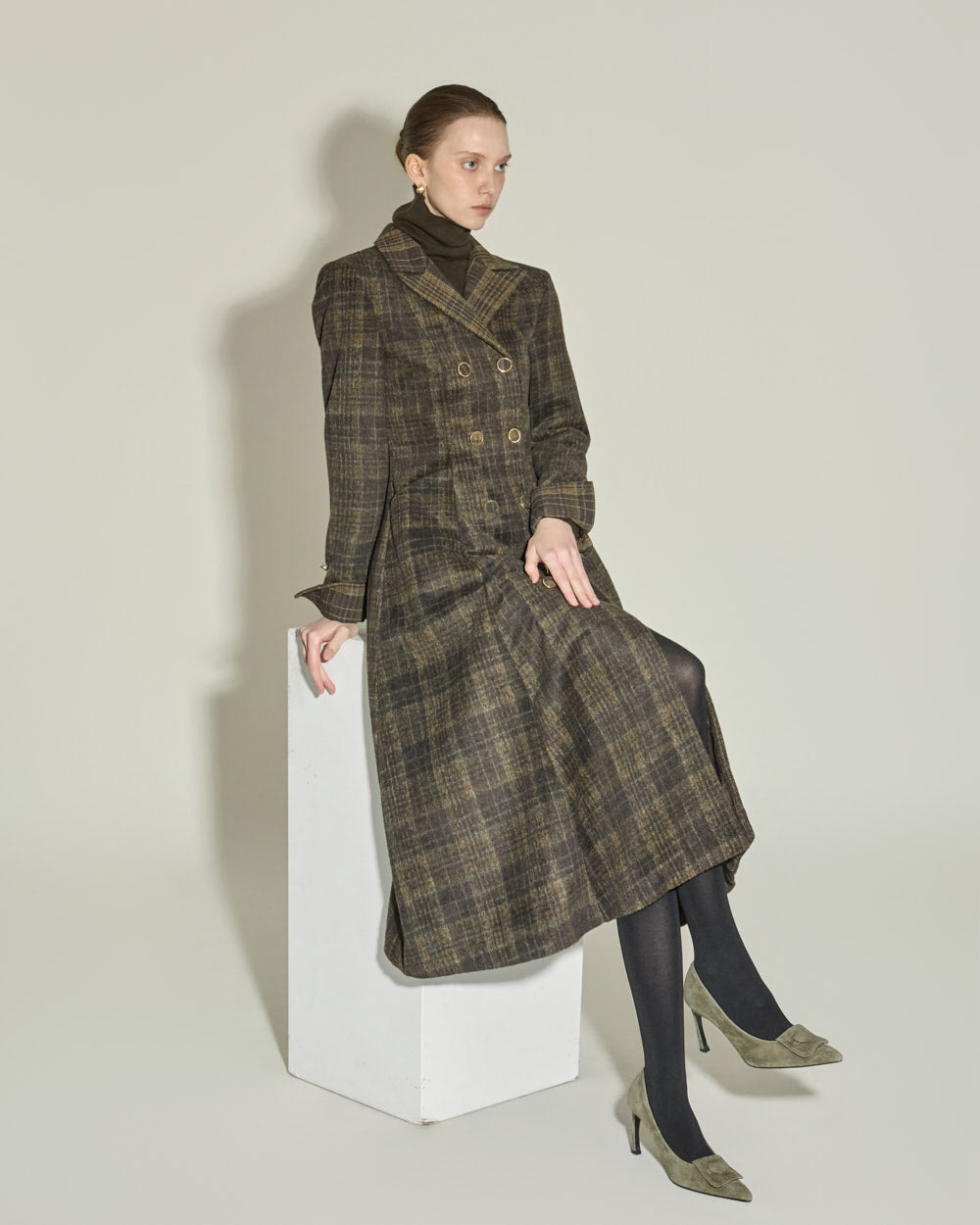 The tailored collar and double-button front closure