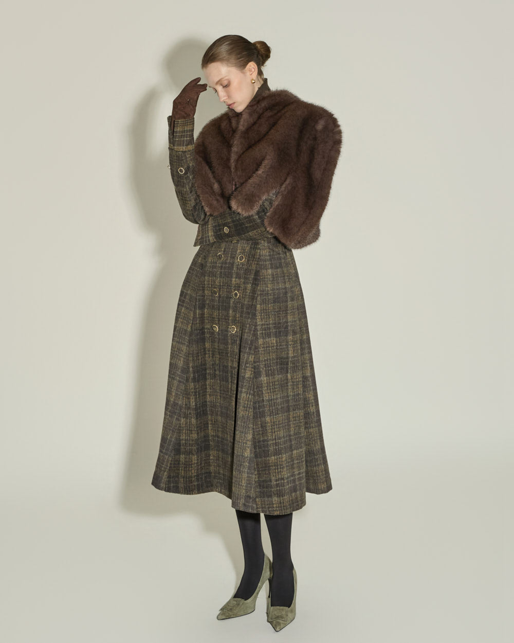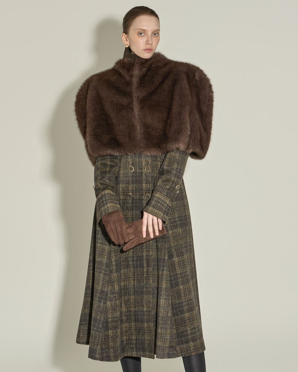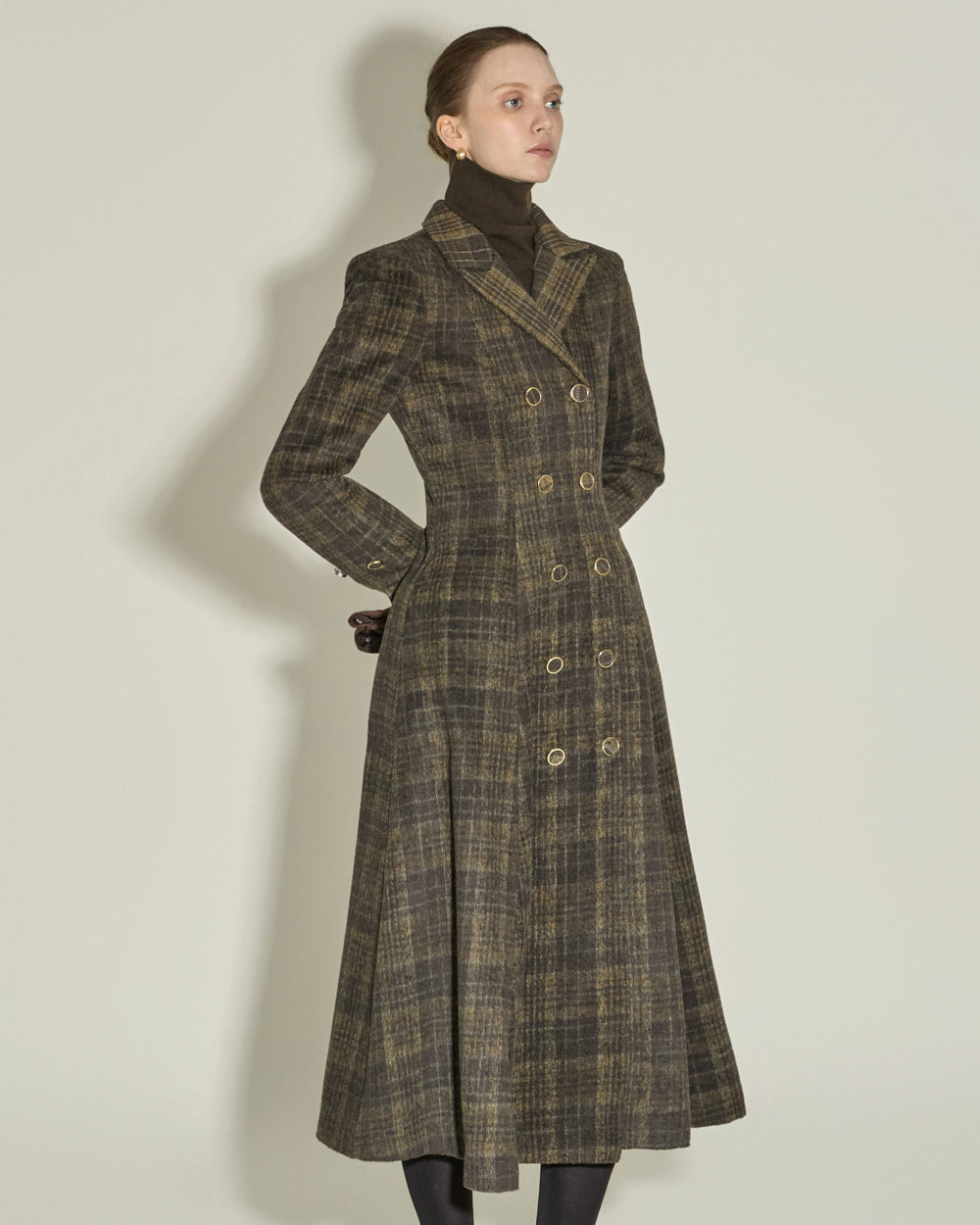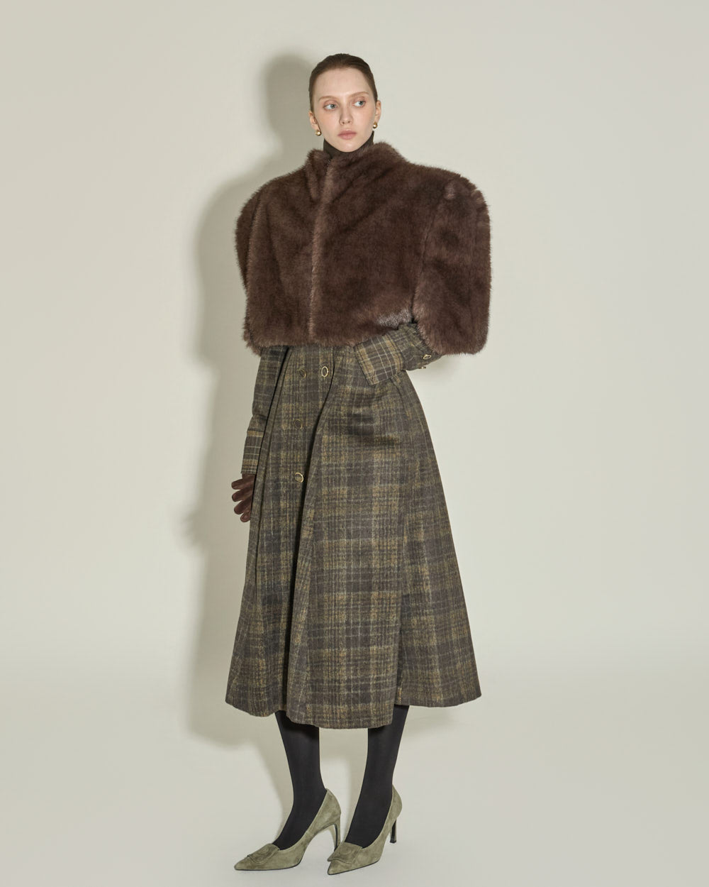 The tailored collar and double-button front closure