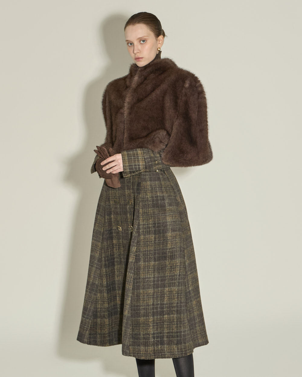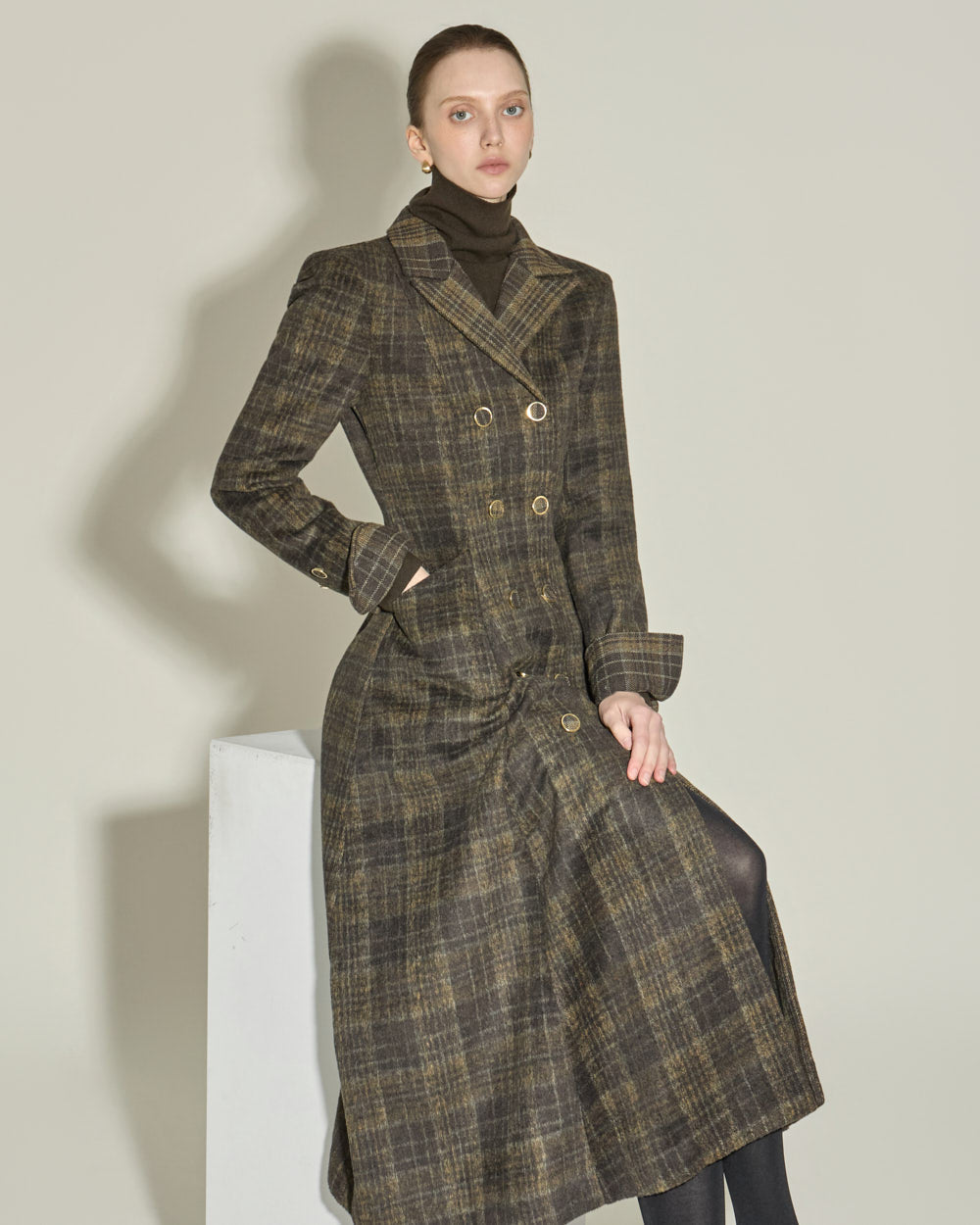 This classic wool check dress exudes a modern, casual vibe.