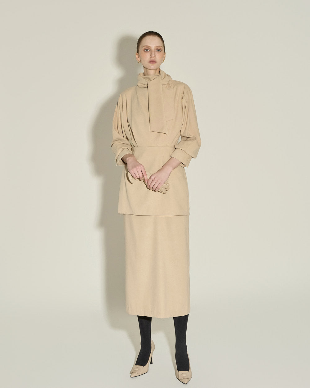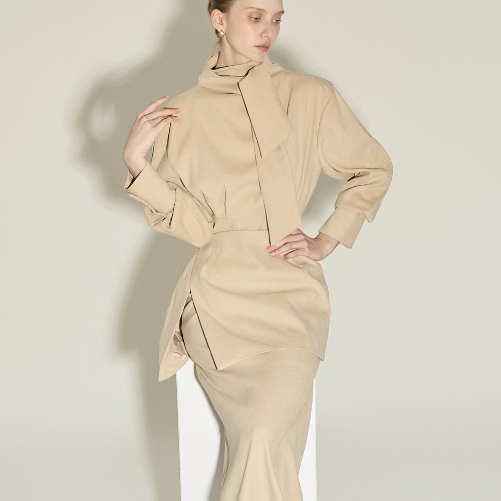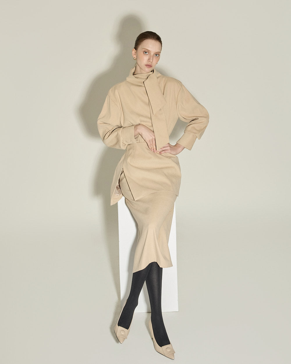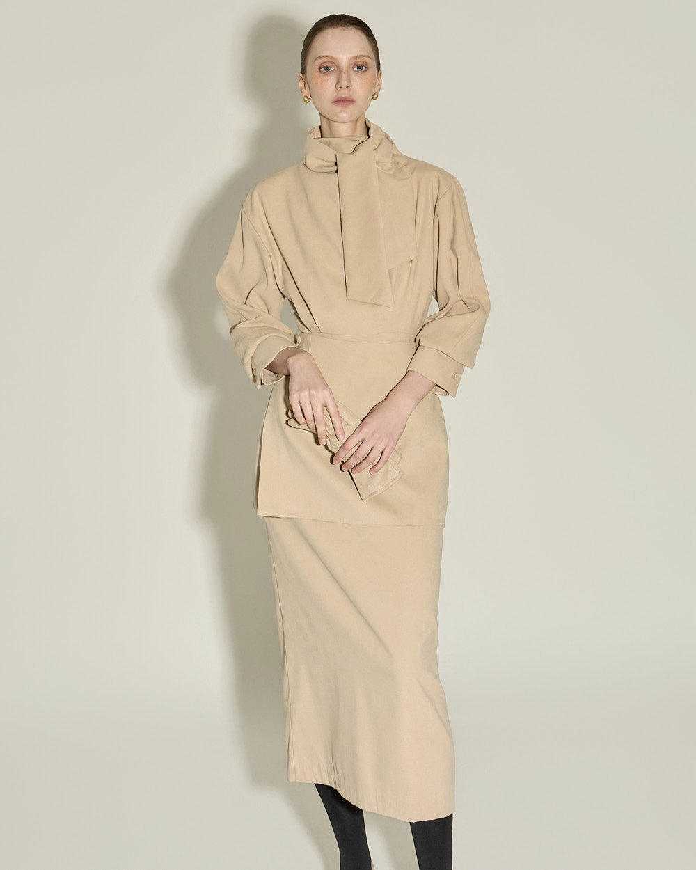 Model is 174cm tall and wearing size S in BEIGE.