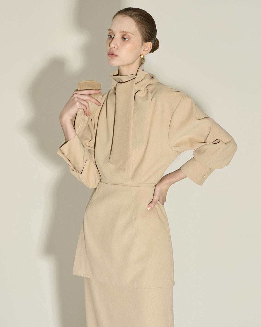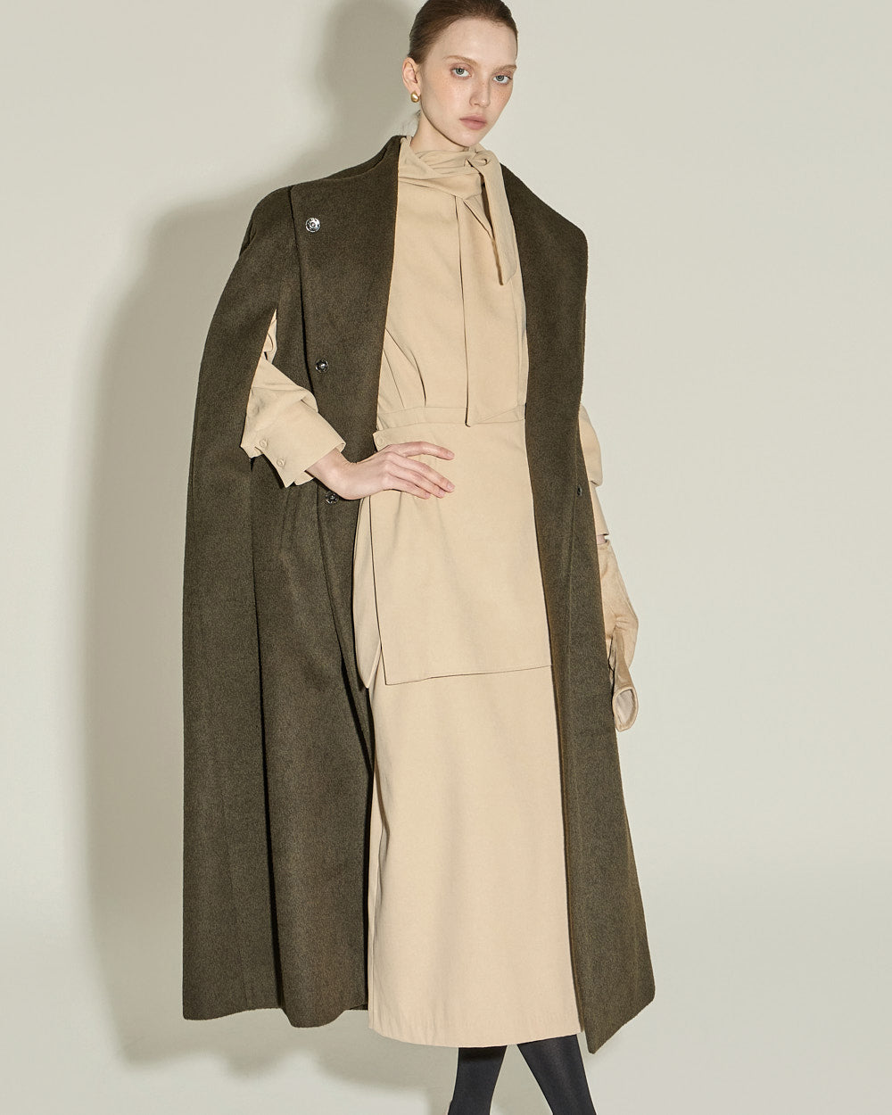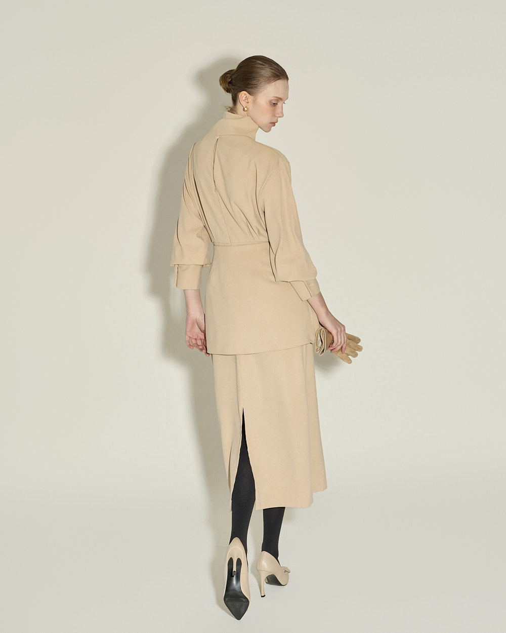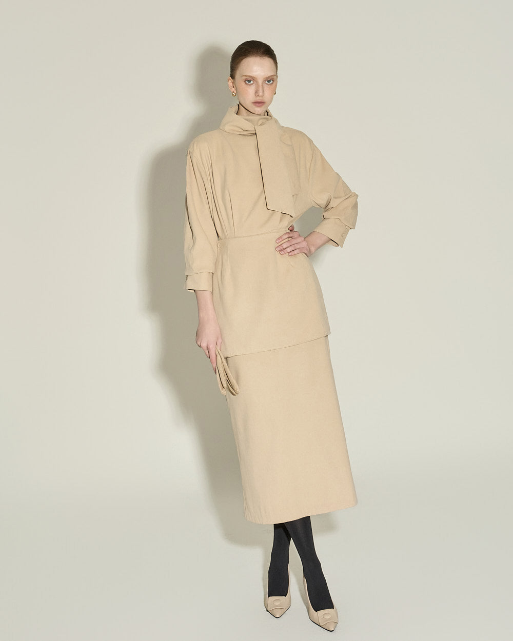 Model is 174cm tall and wearing size S in BEIGE.