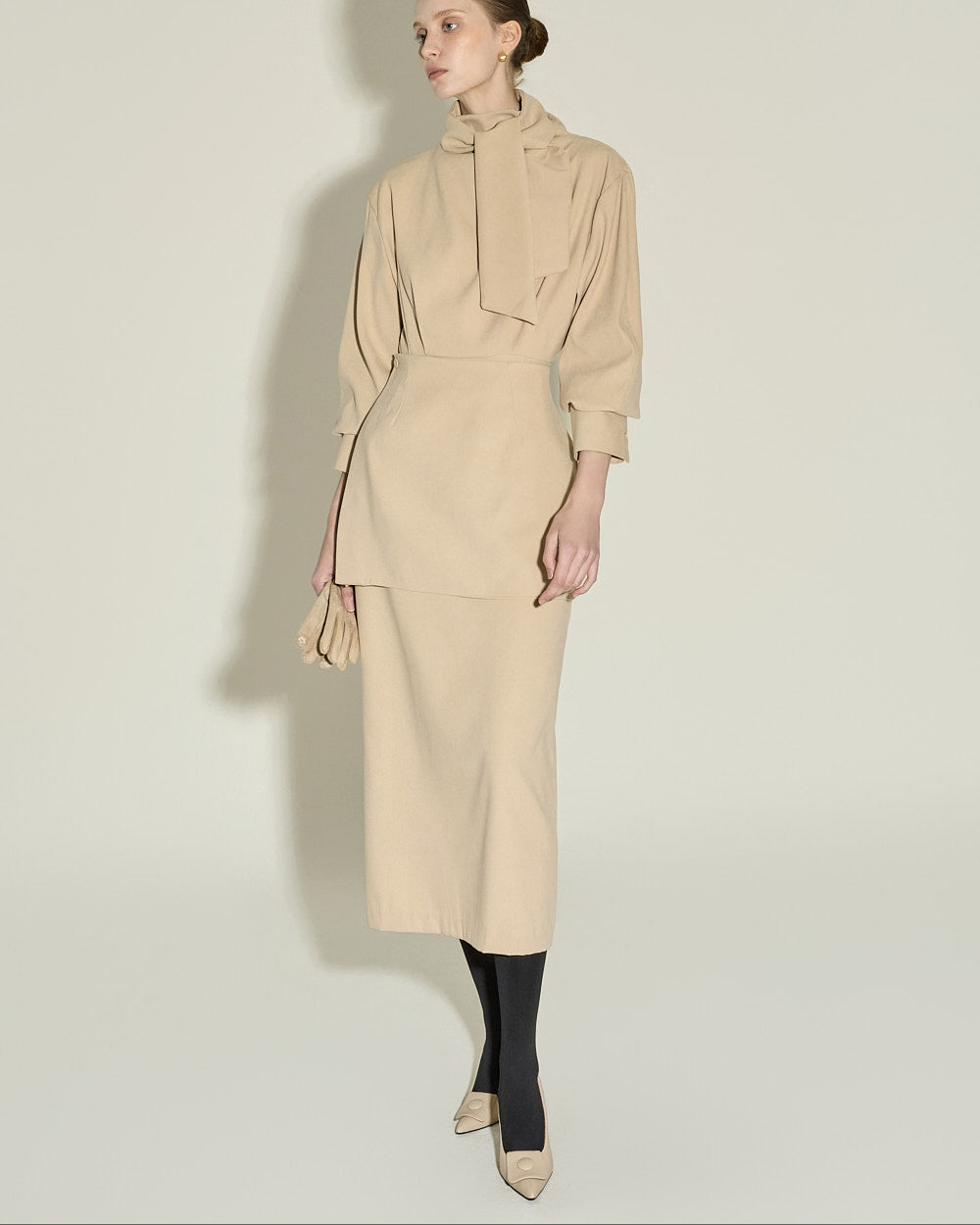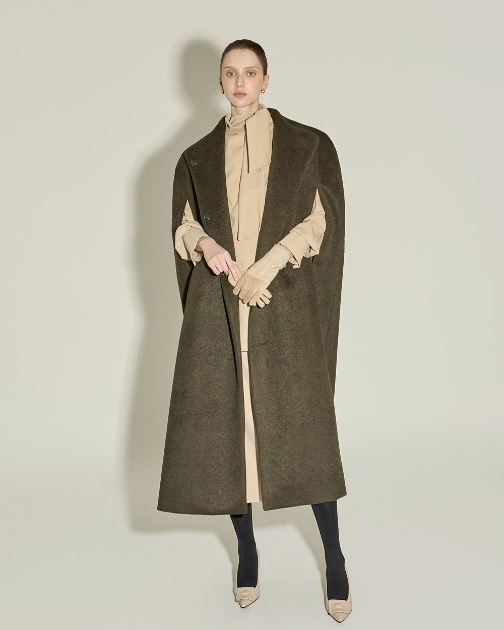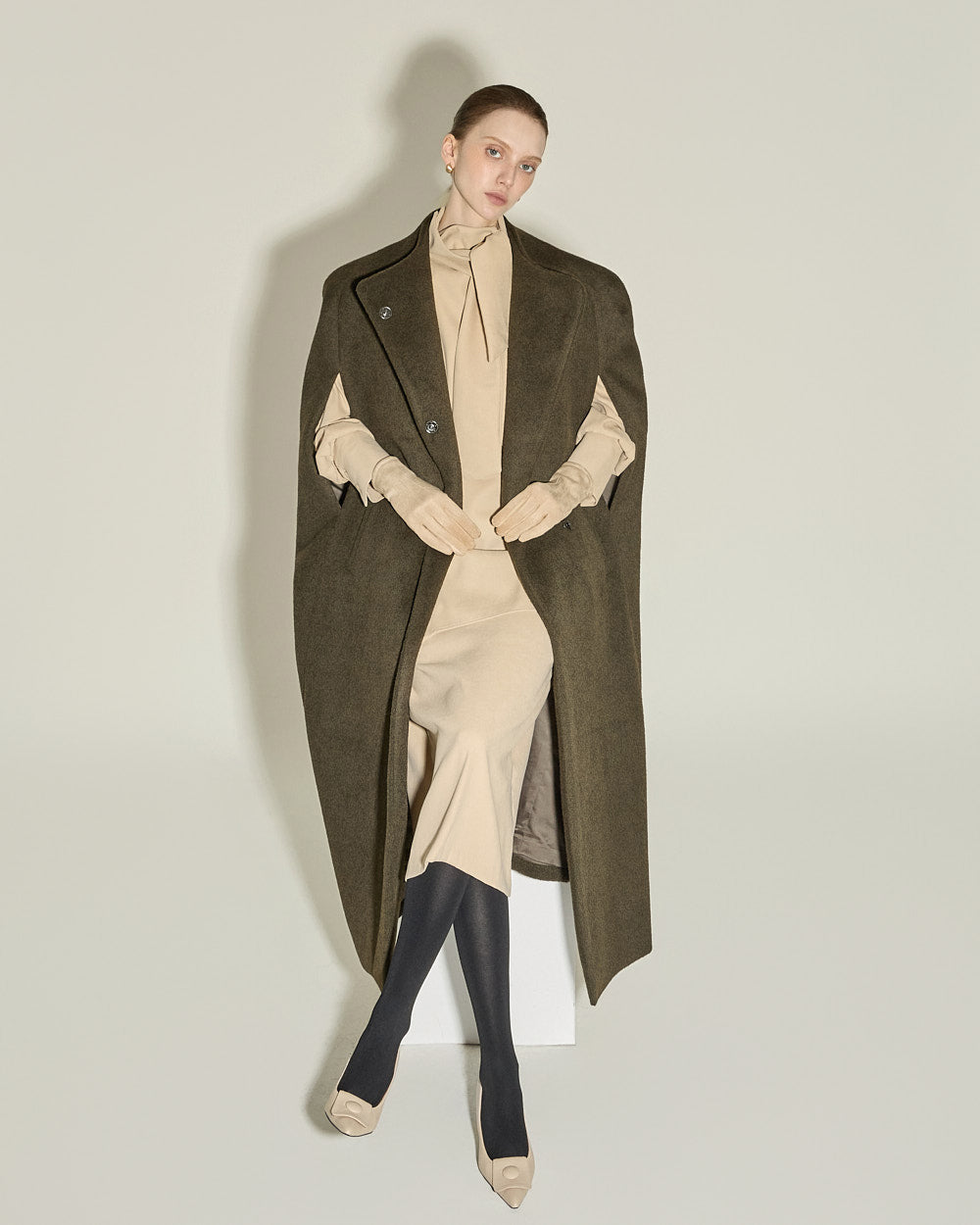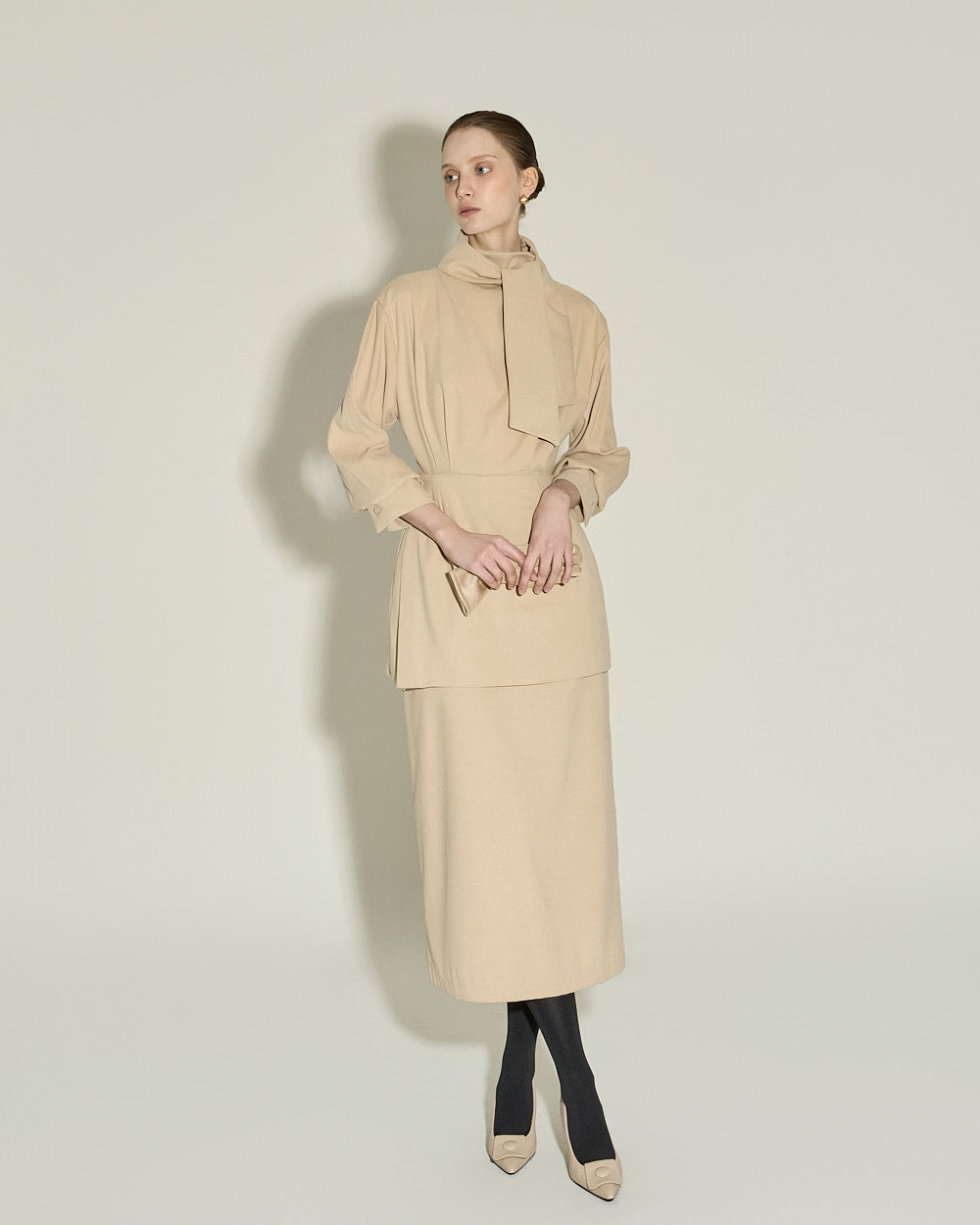 Model is 174cm tall and wearing size S in BEIGE.