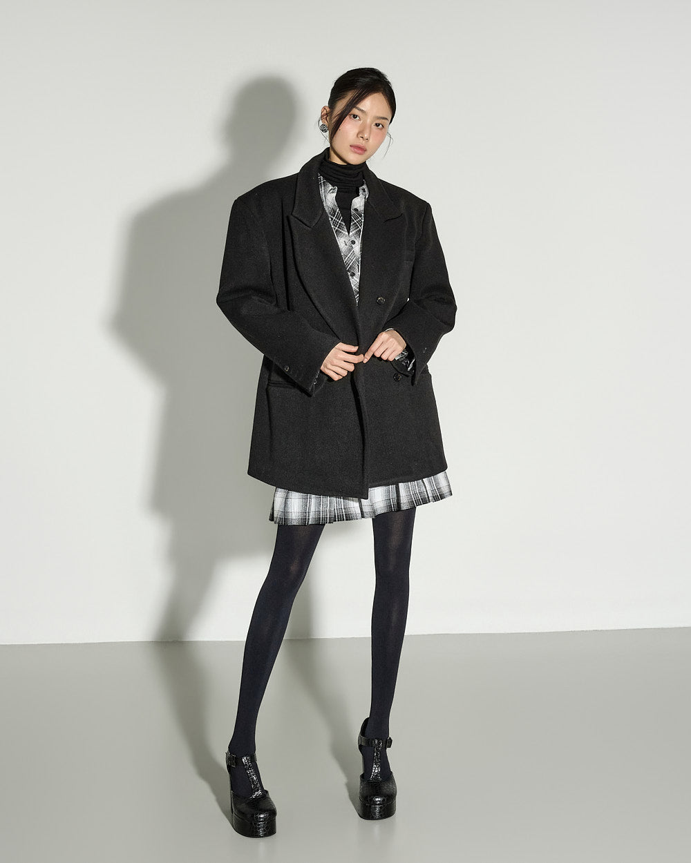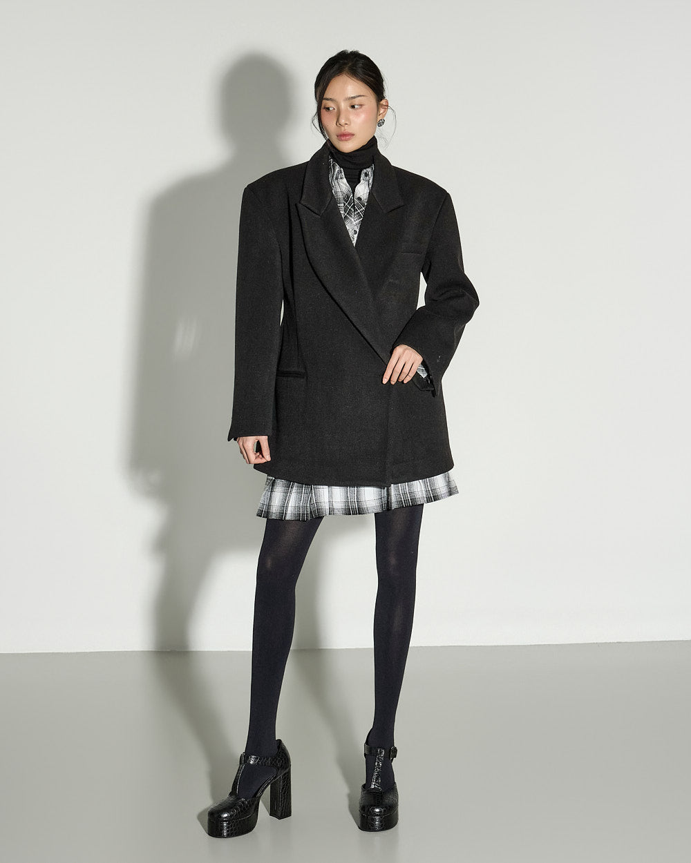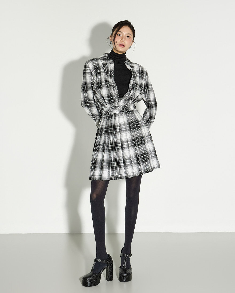 the check pattern alone completes the look.