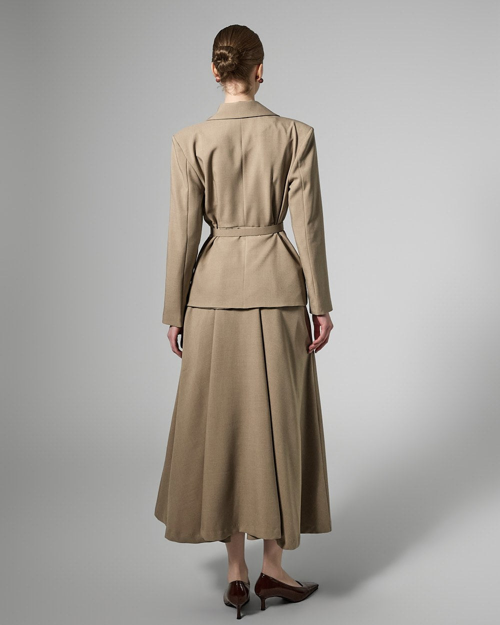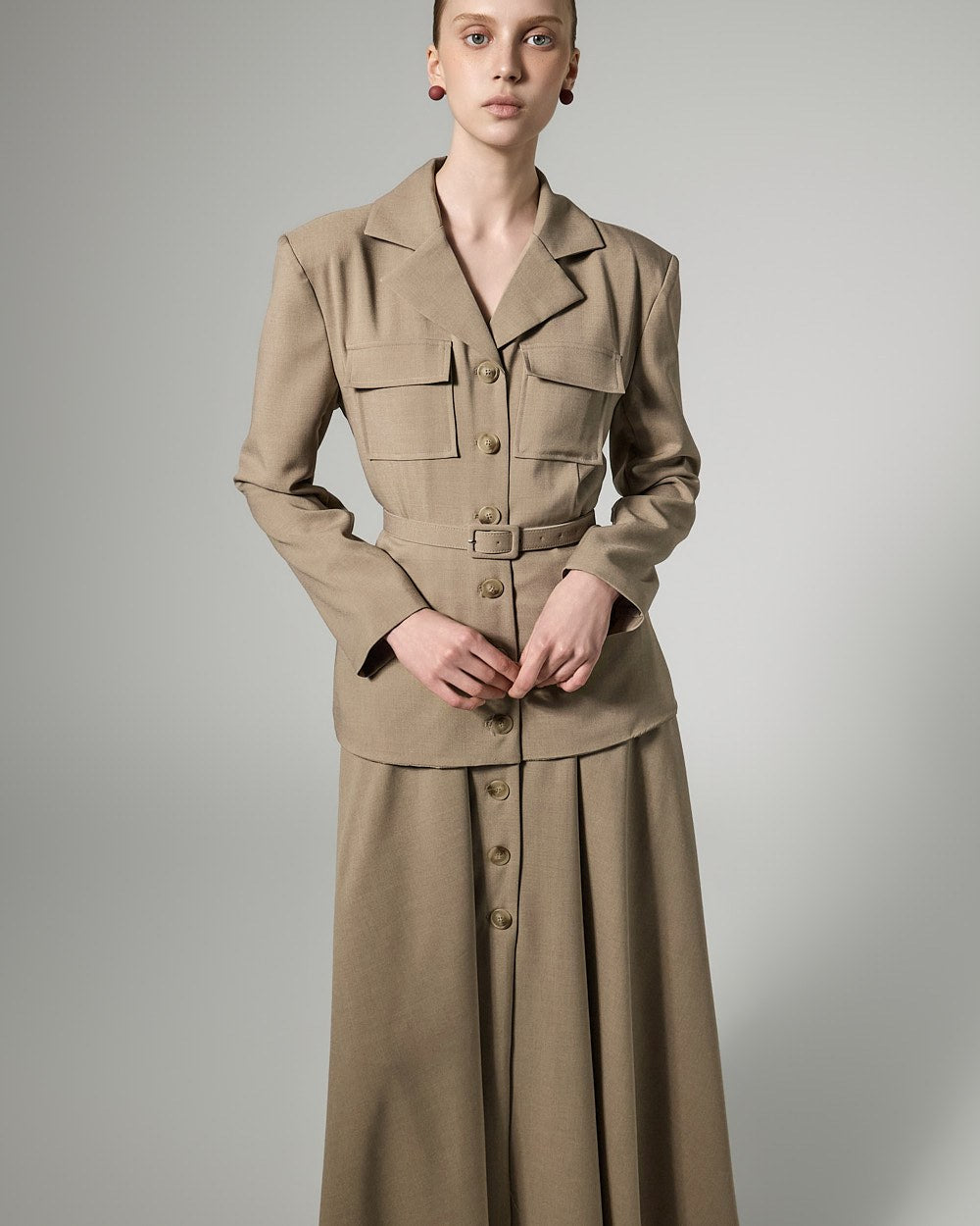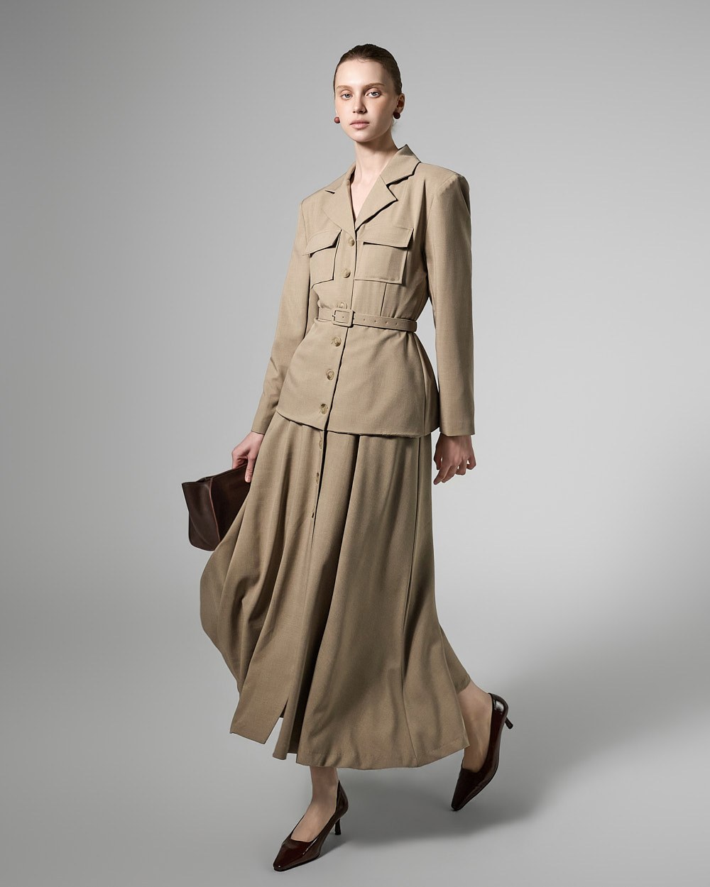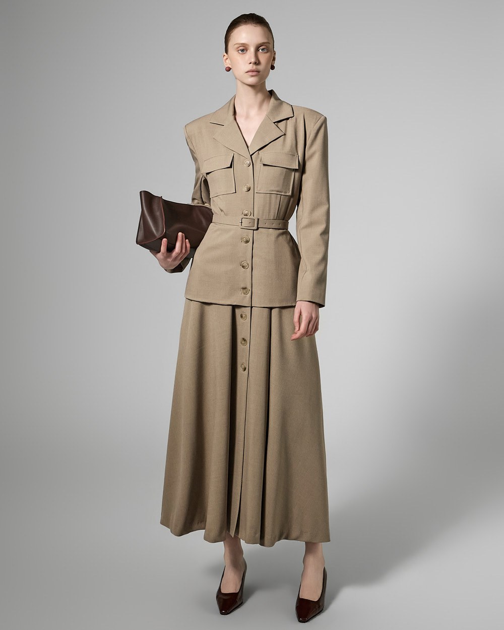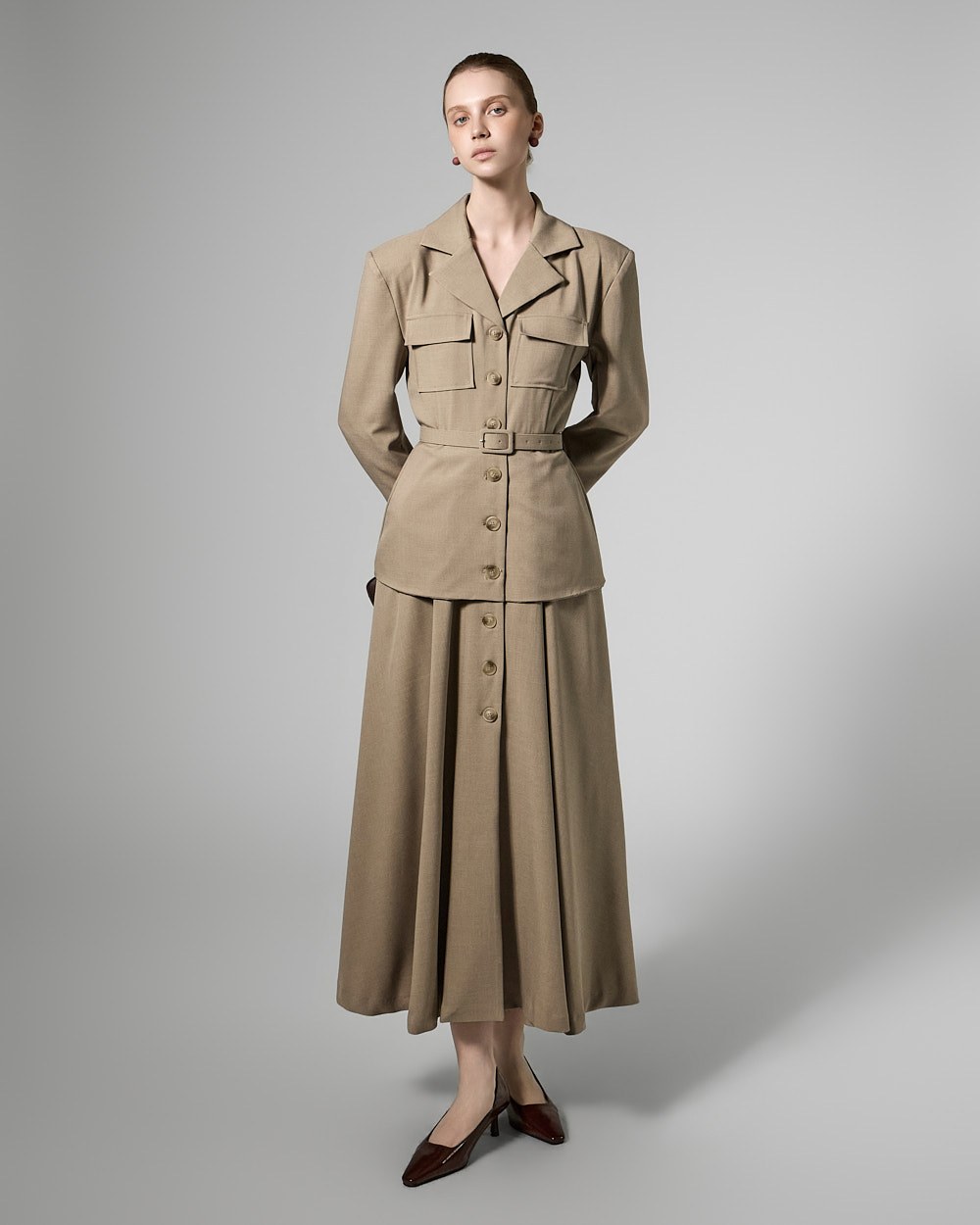 This belt set dress exudes a feminine yet modern vibe.