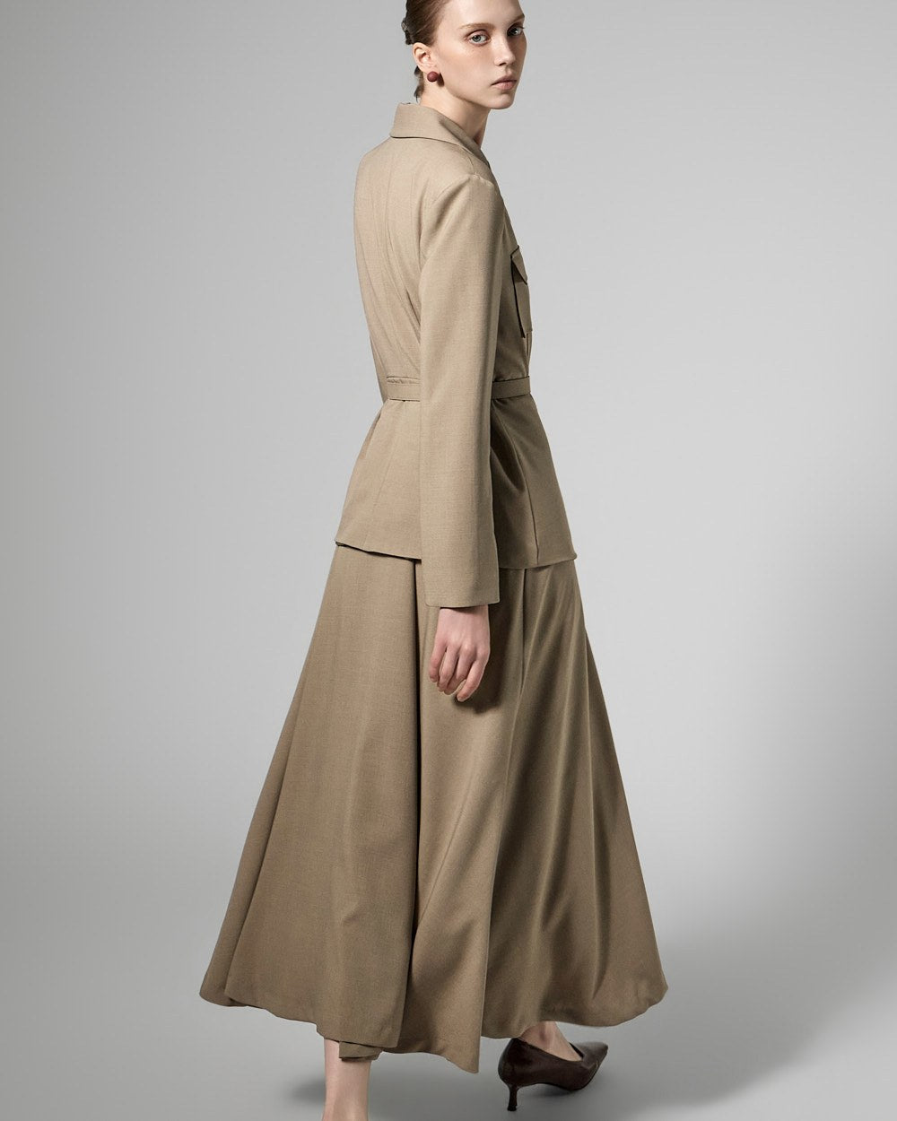 The 174cm model is wearing size ONE in BEIGE.