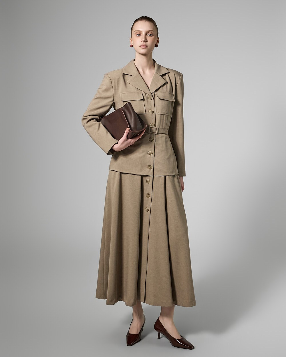 and the two-pocket detailing at the bust adds a touch of elegance.