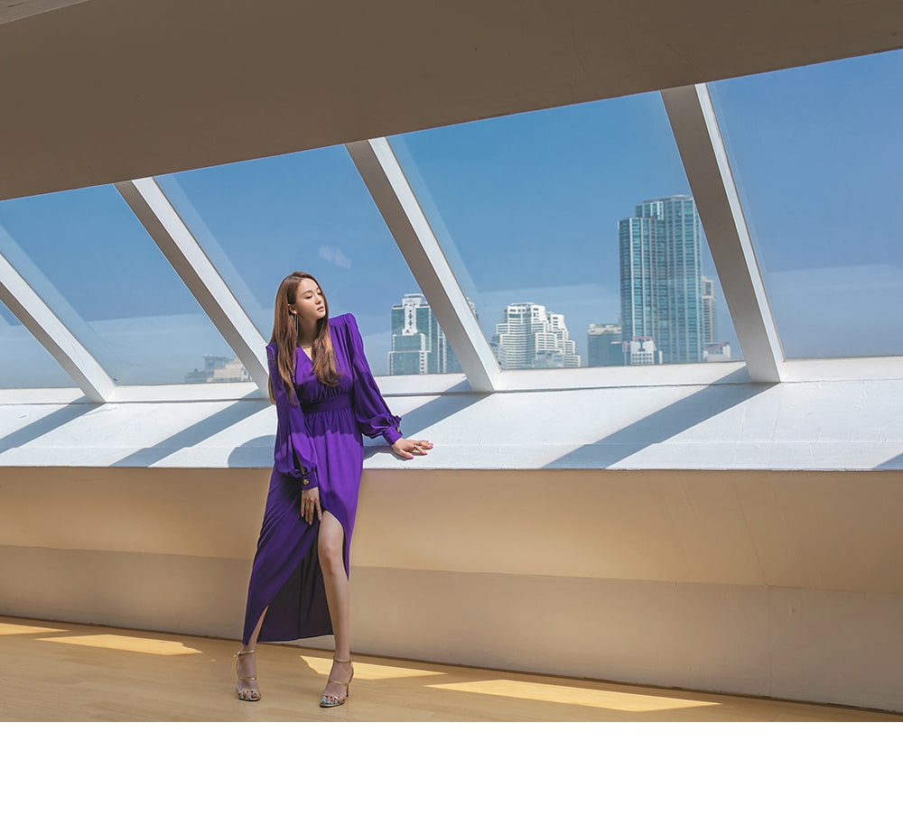The model is 171CM tall and is wearing a SMALL-size in PURPLE.