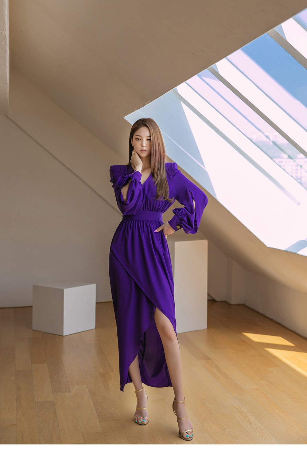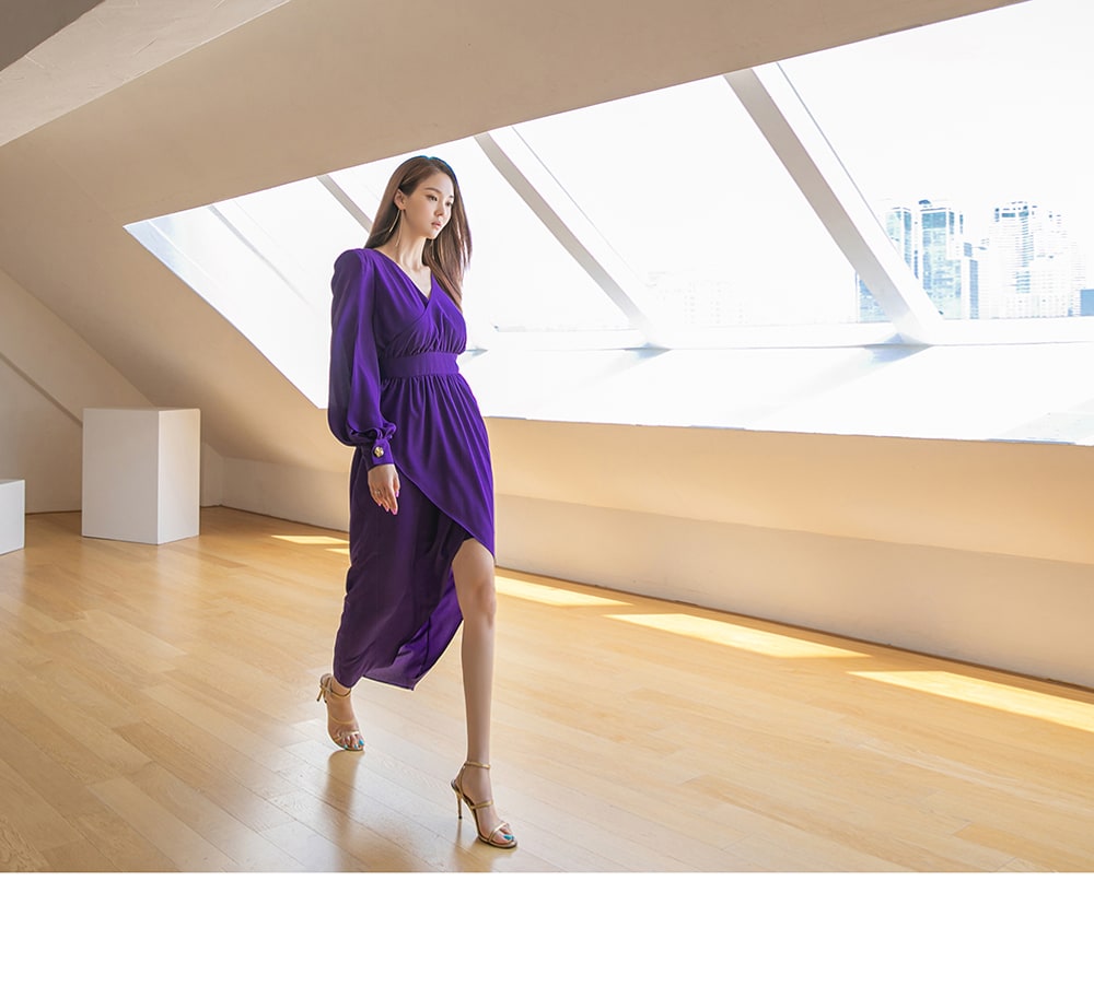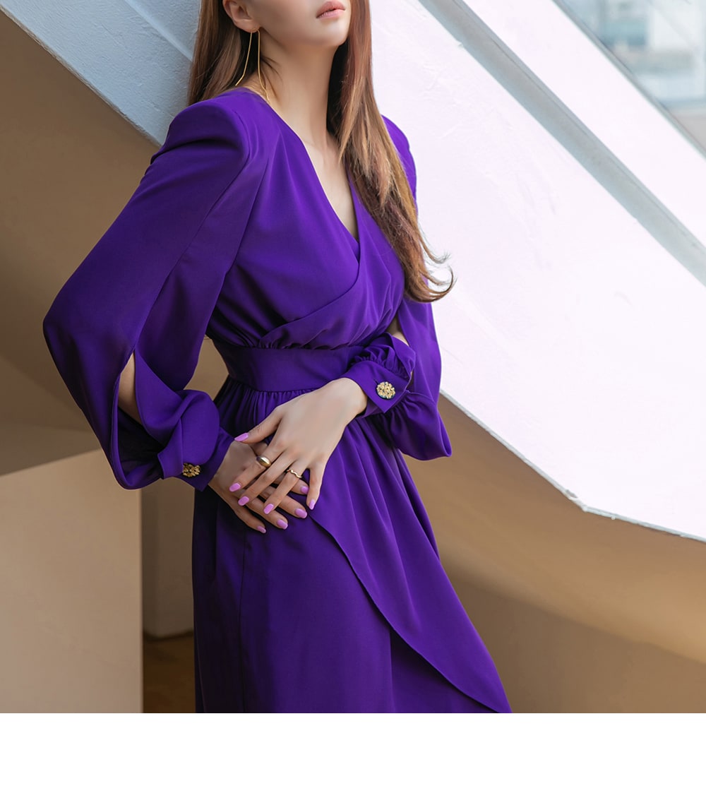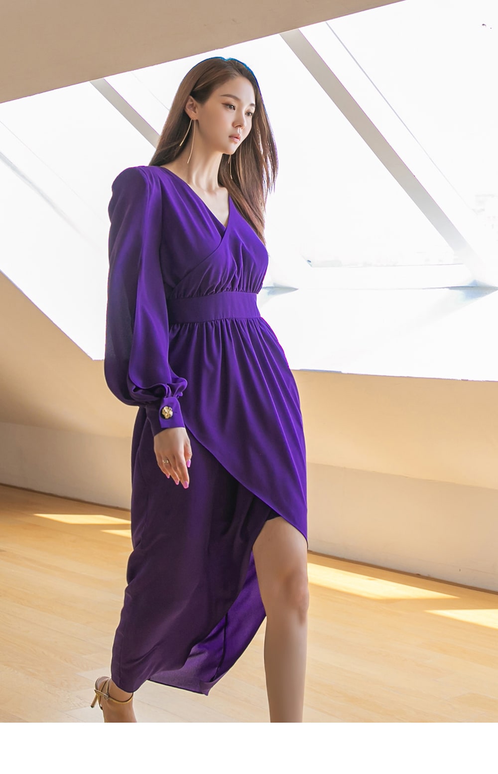 "Sleeve Slit Pad Warp Asymmetric Dress."
