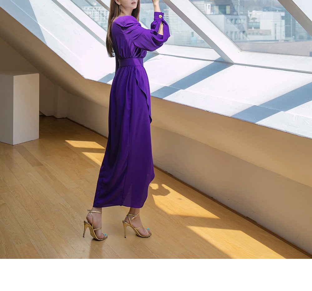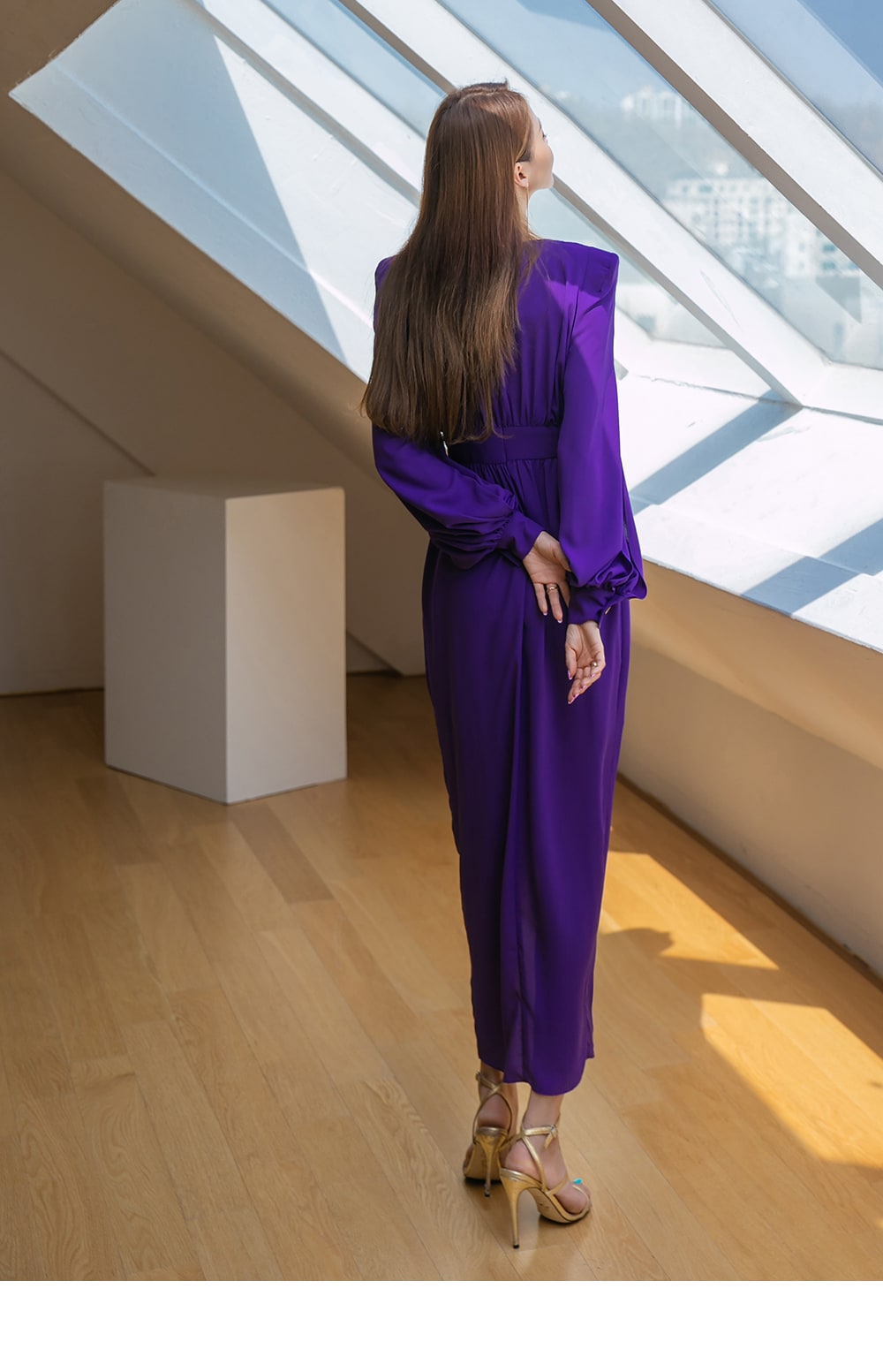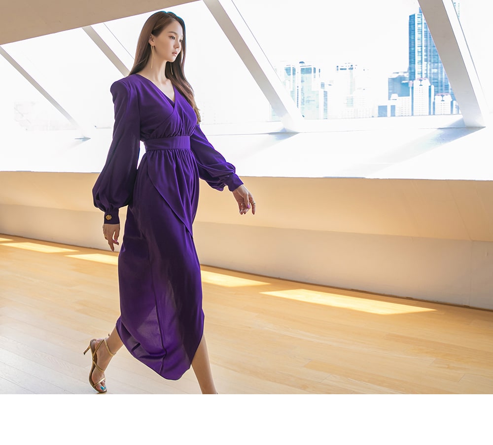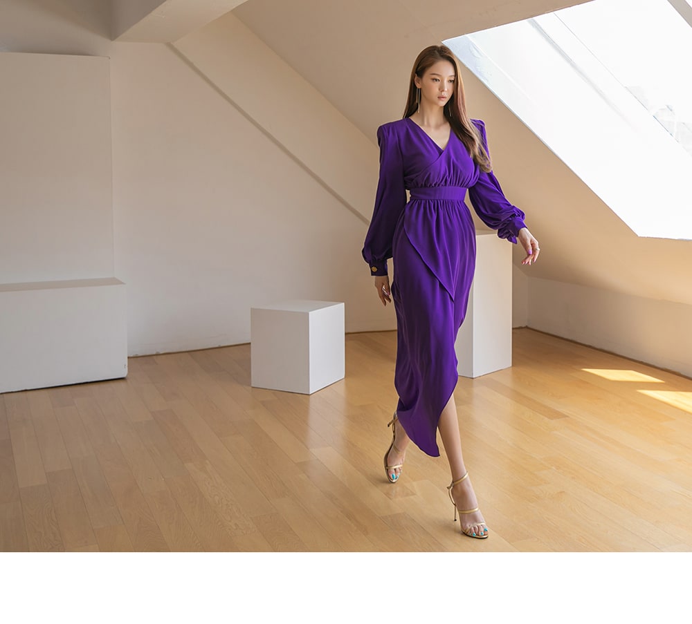 "Sleeve Slit Pad Warp Asymmetric Dress."