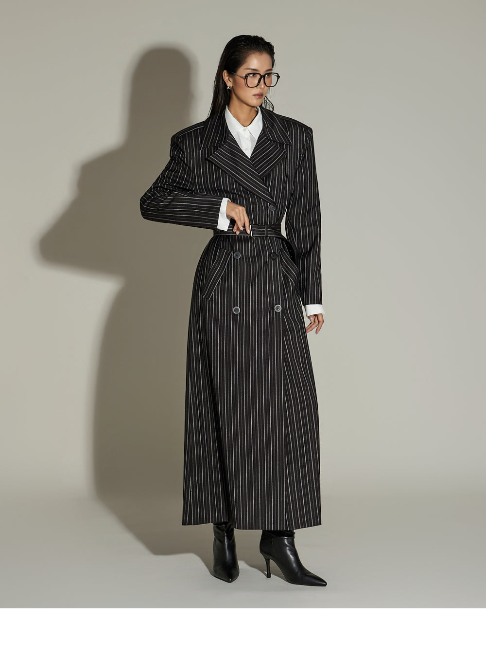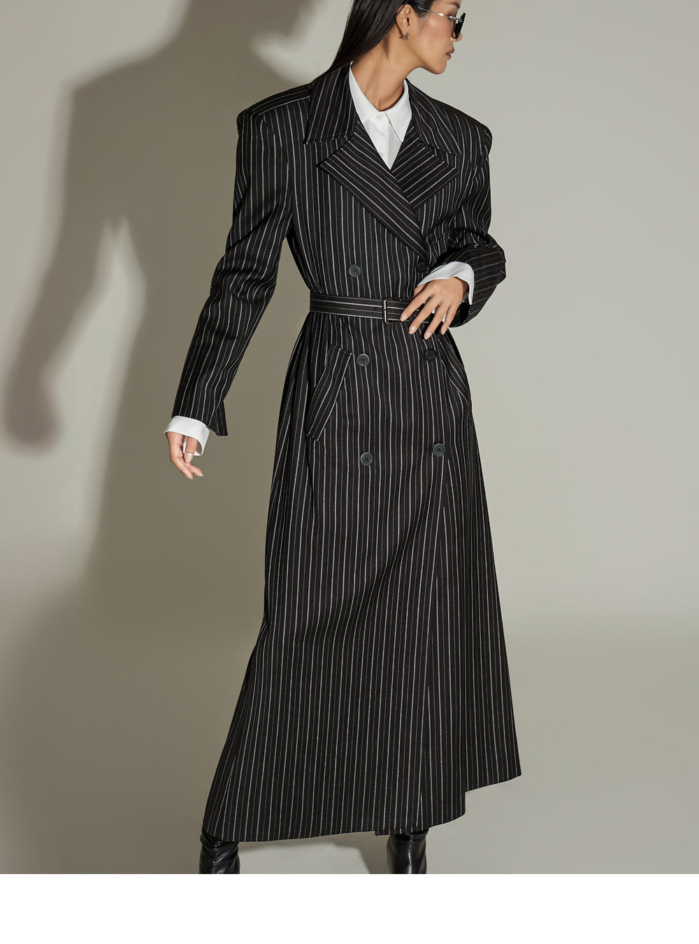 and the long length and loose fit create a sophisticated look.