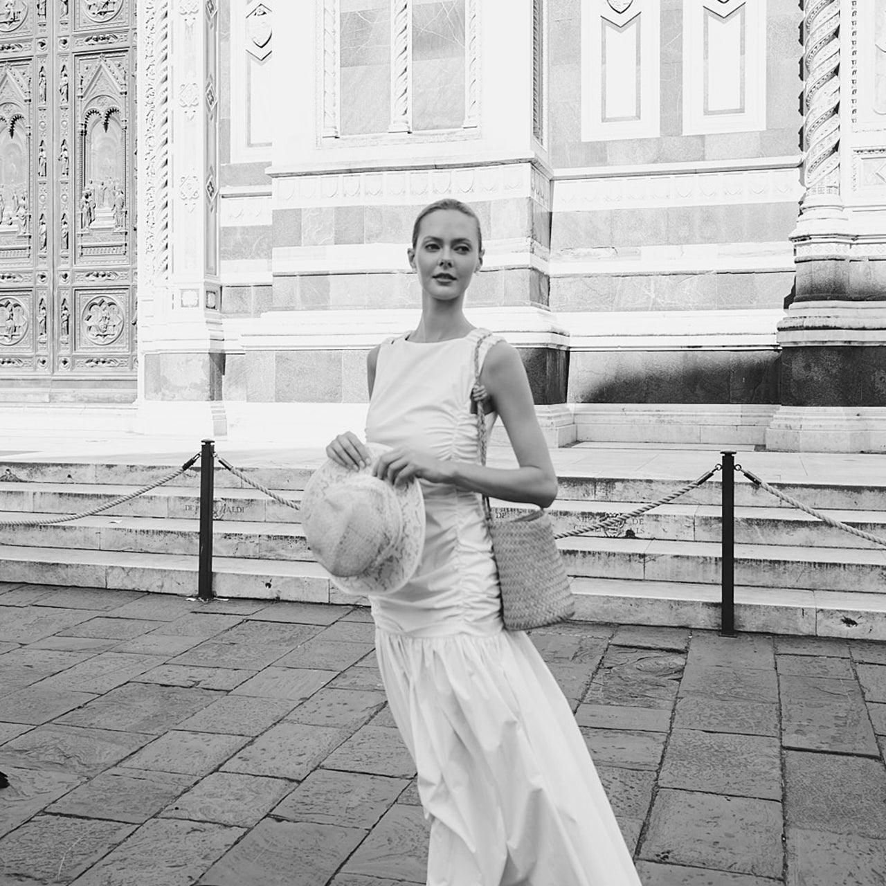 with a slim-fitting silhouette that enhances its elegant appeal.