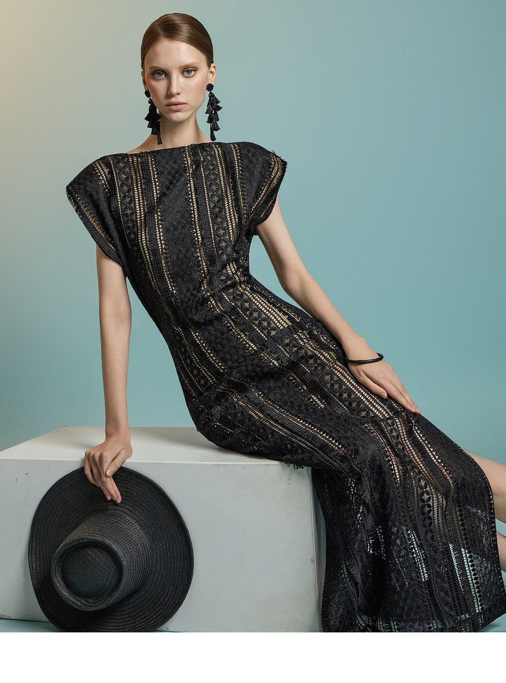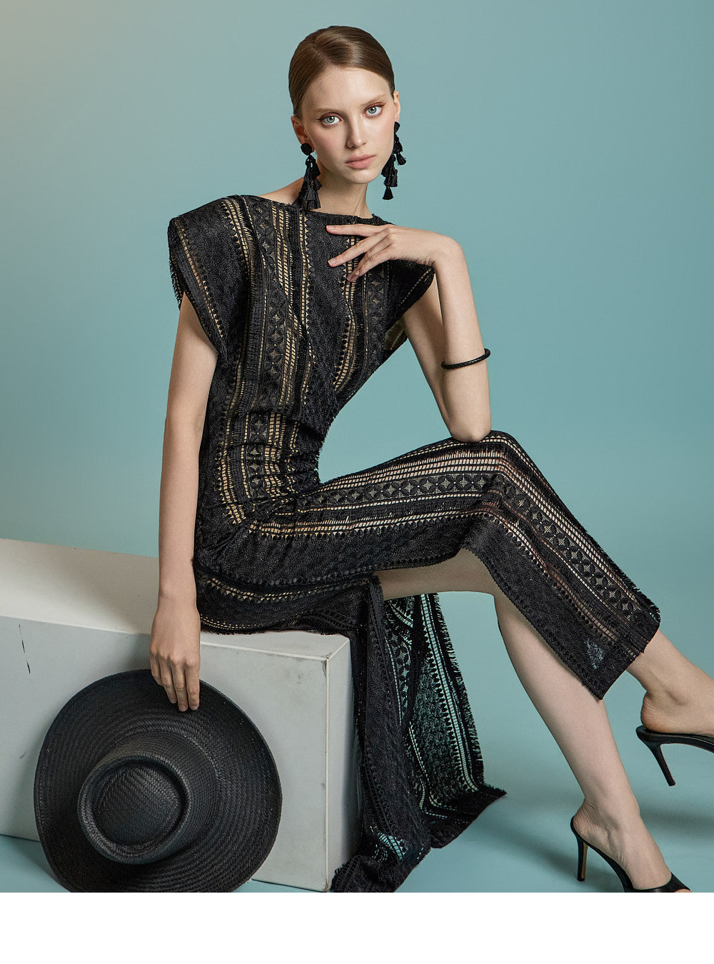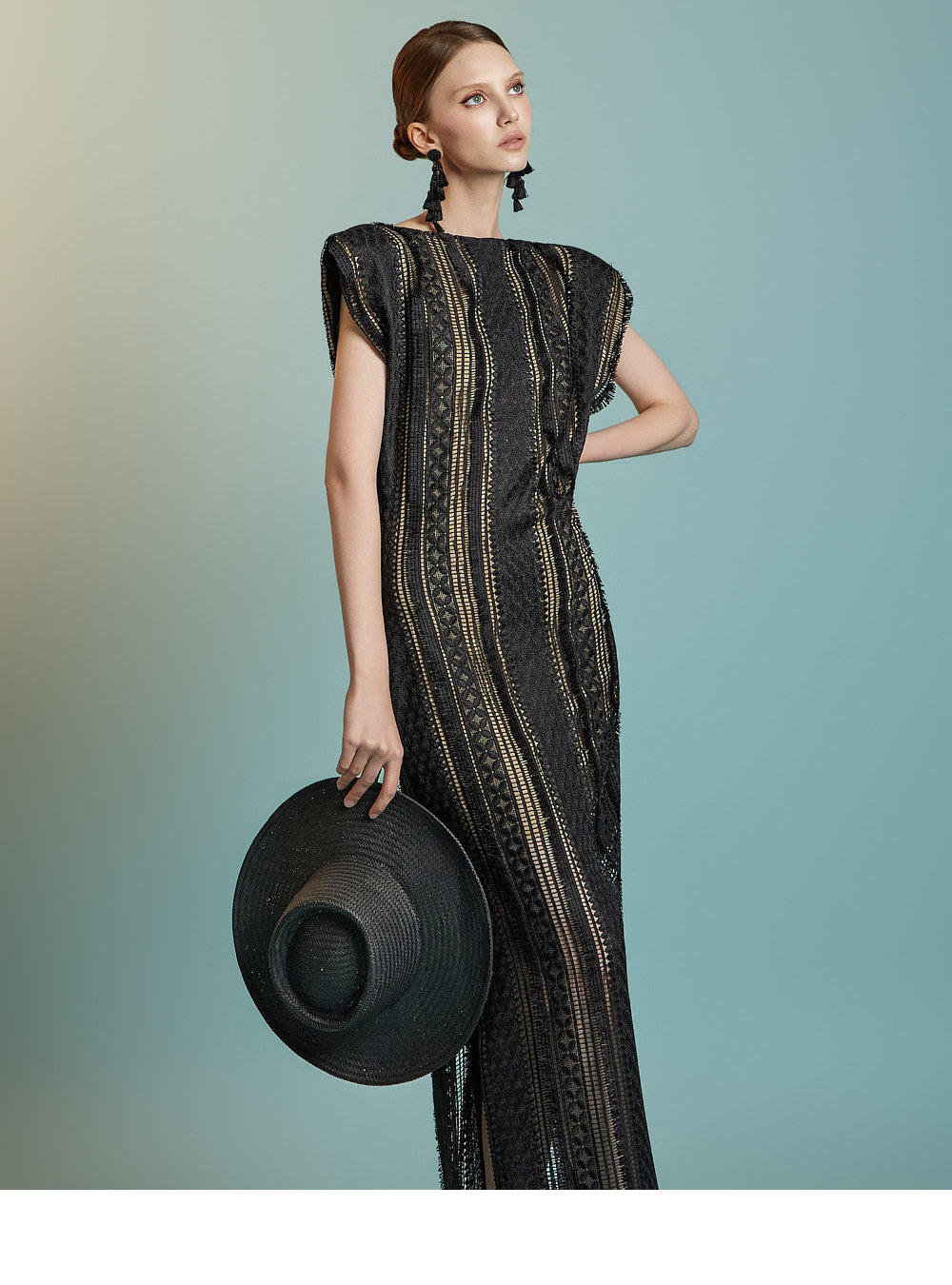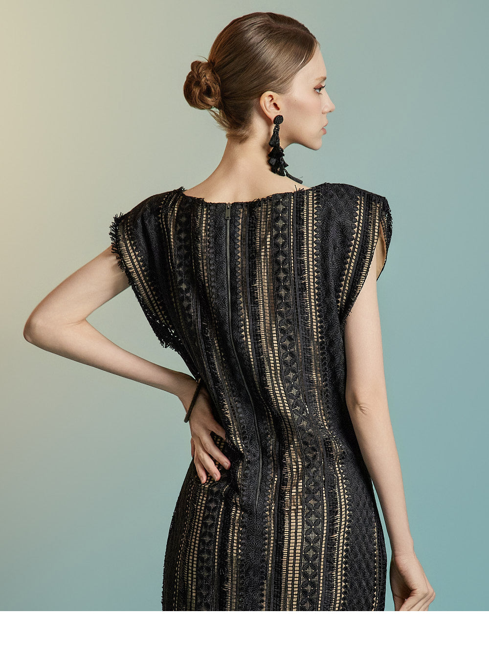 This lace fringe dress exudes a feminine and elegant mood.