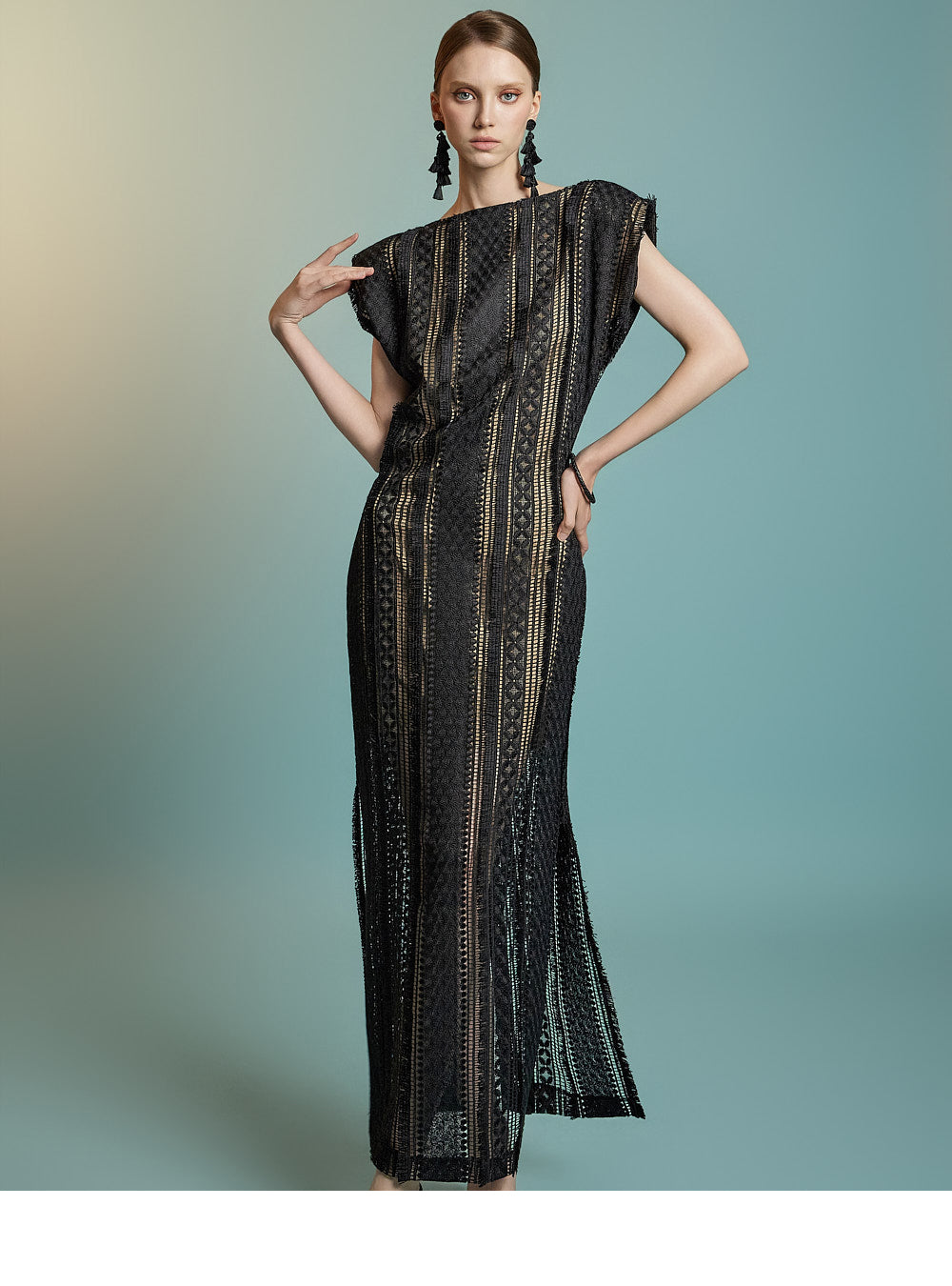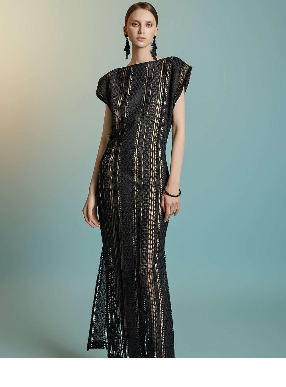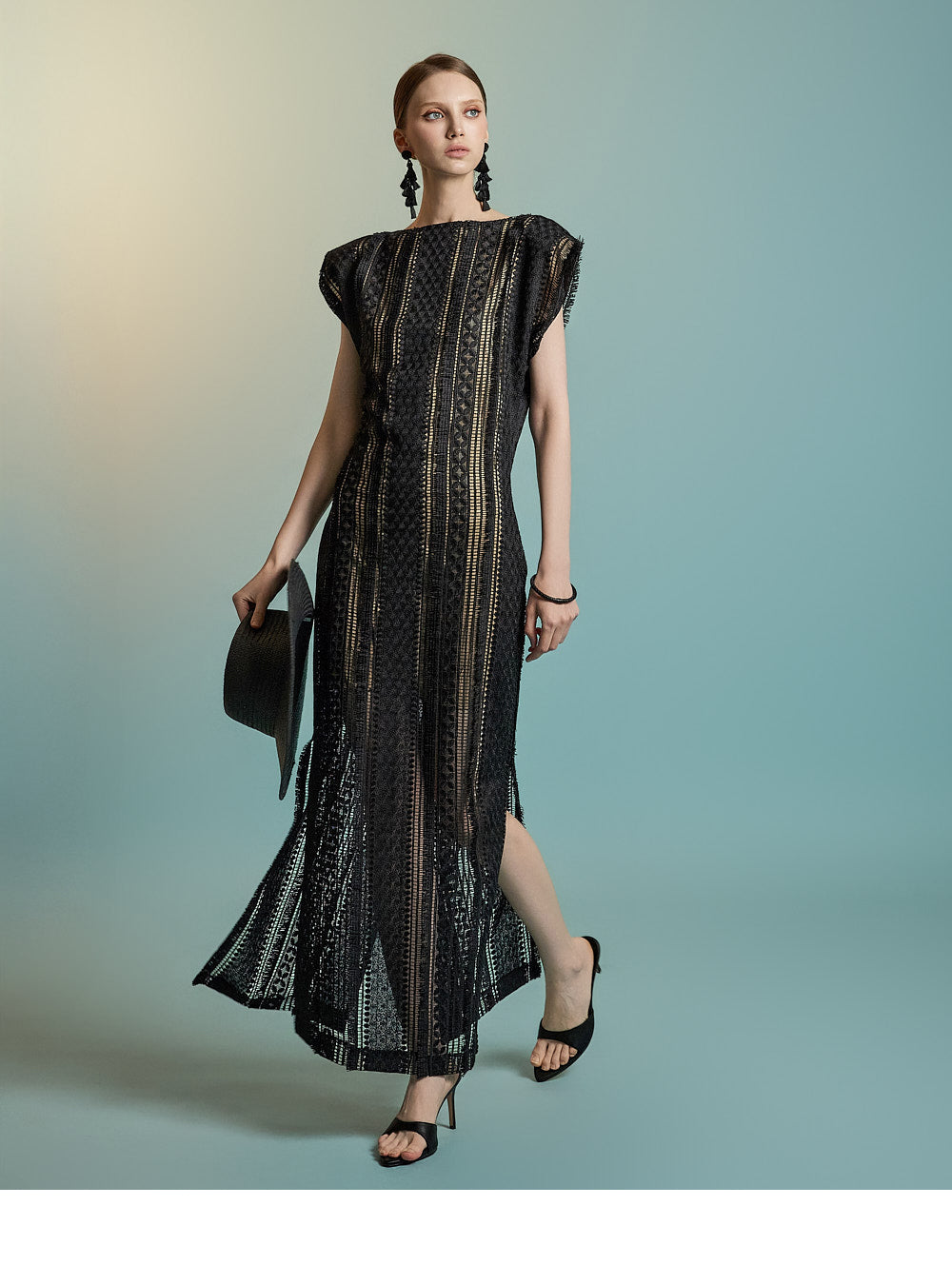 This lace fringe dress exudes a feminine and elegant mood.
