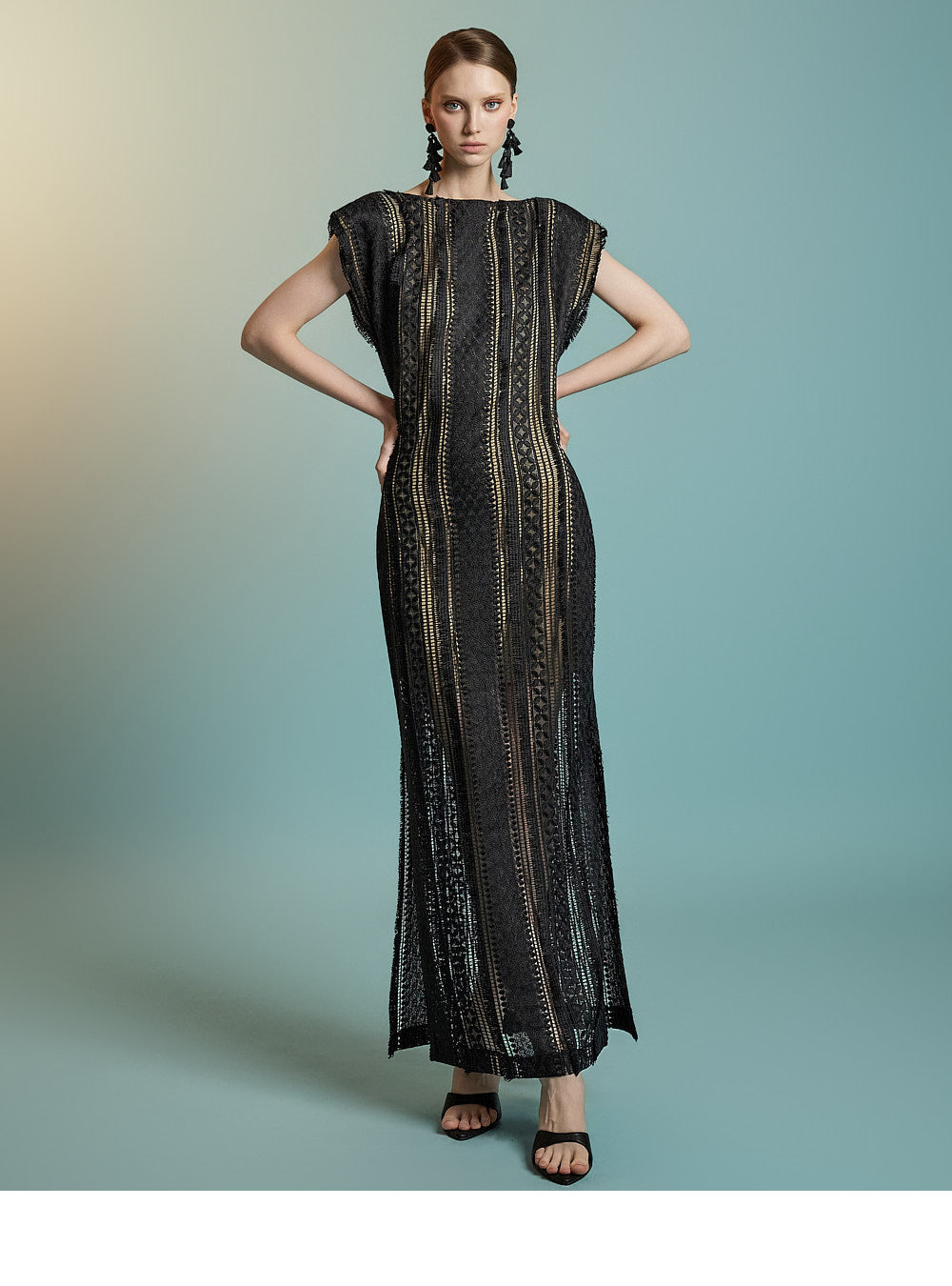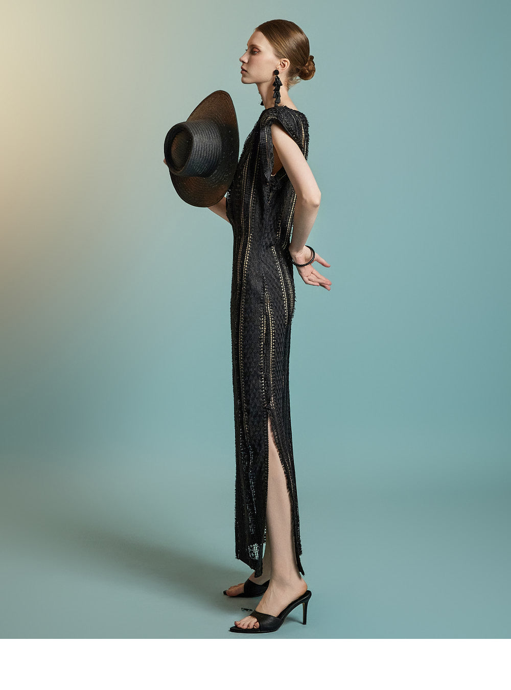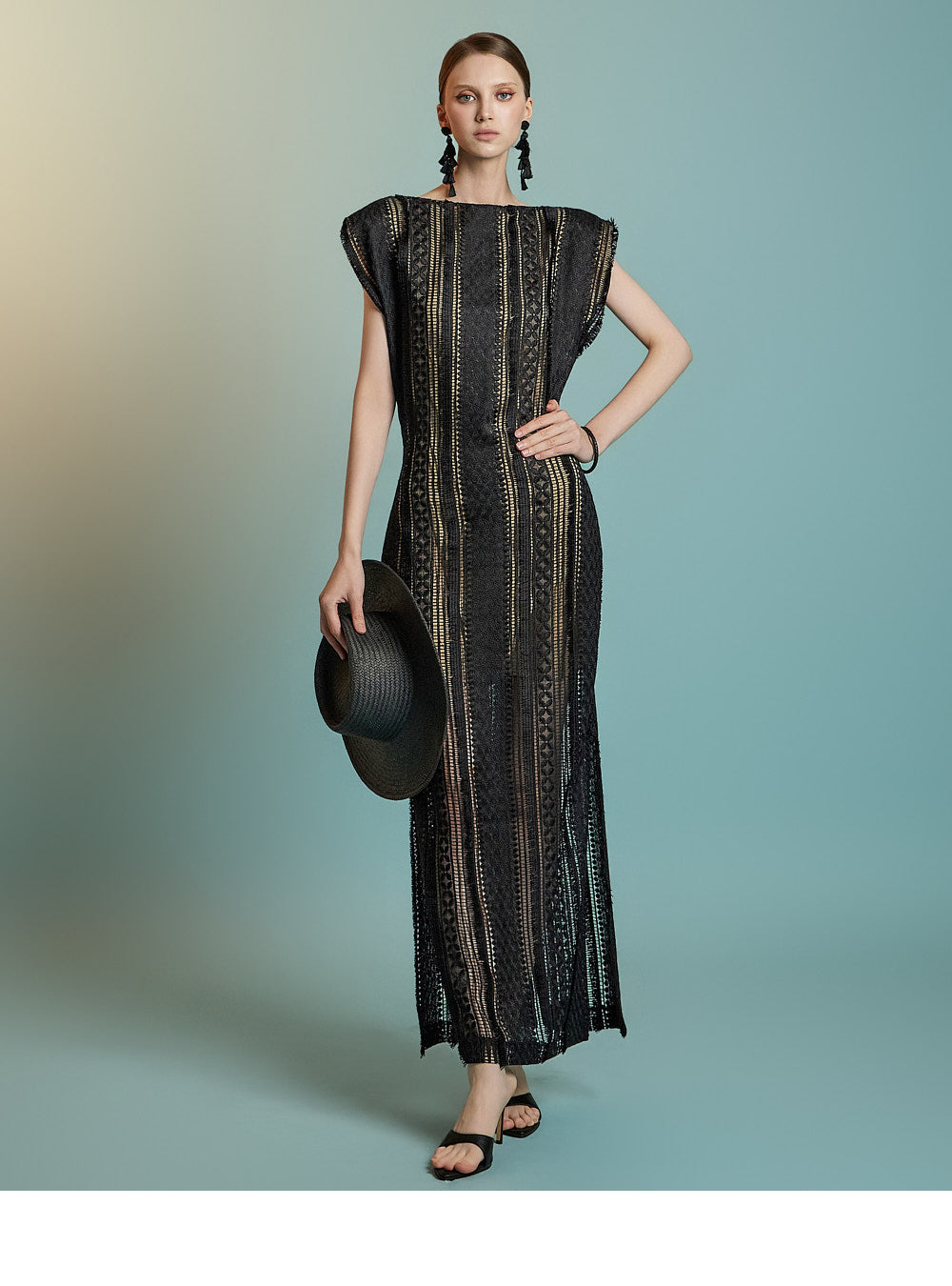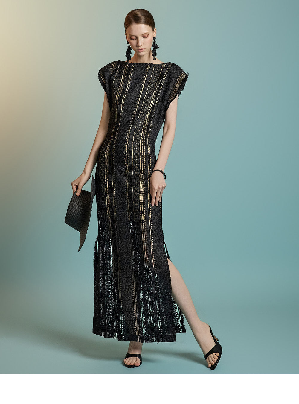 This lace fringe dress exudes a feminine and elegant mood.