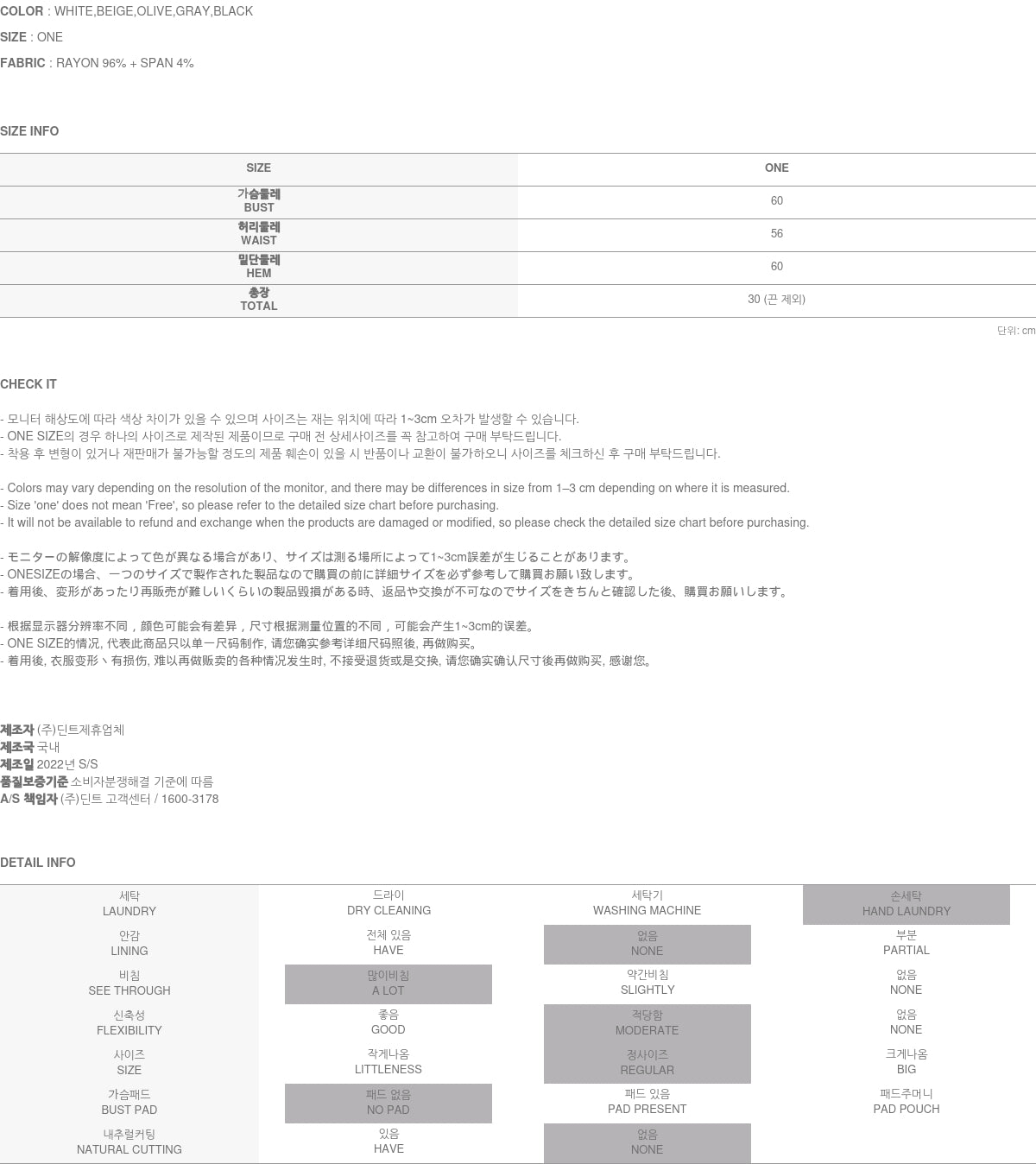 Clothing from DINT Co., Ltd. may become damaged or deformed if machine washed or tumble dried. We strongly recommend following the care instructions provided below.