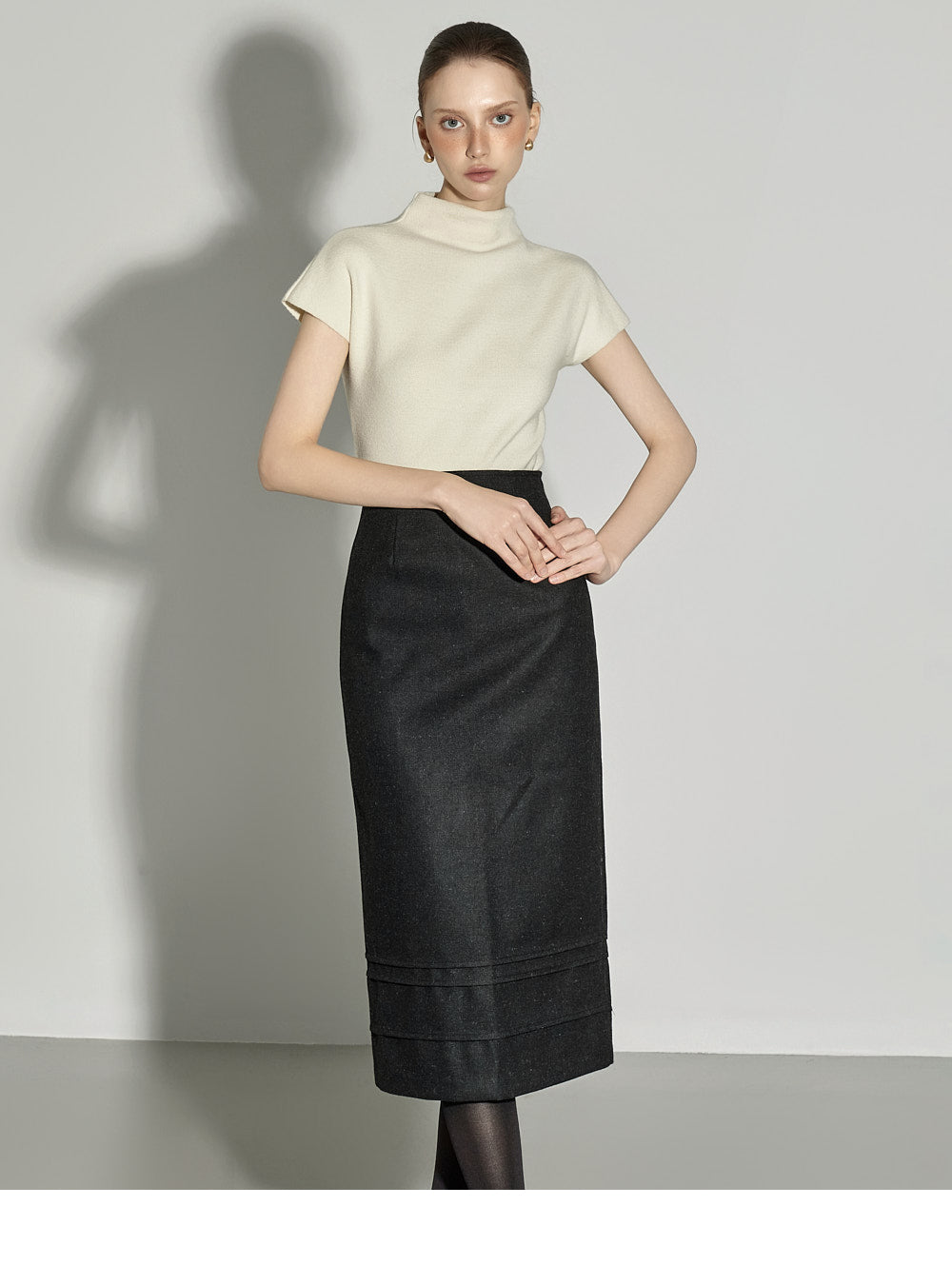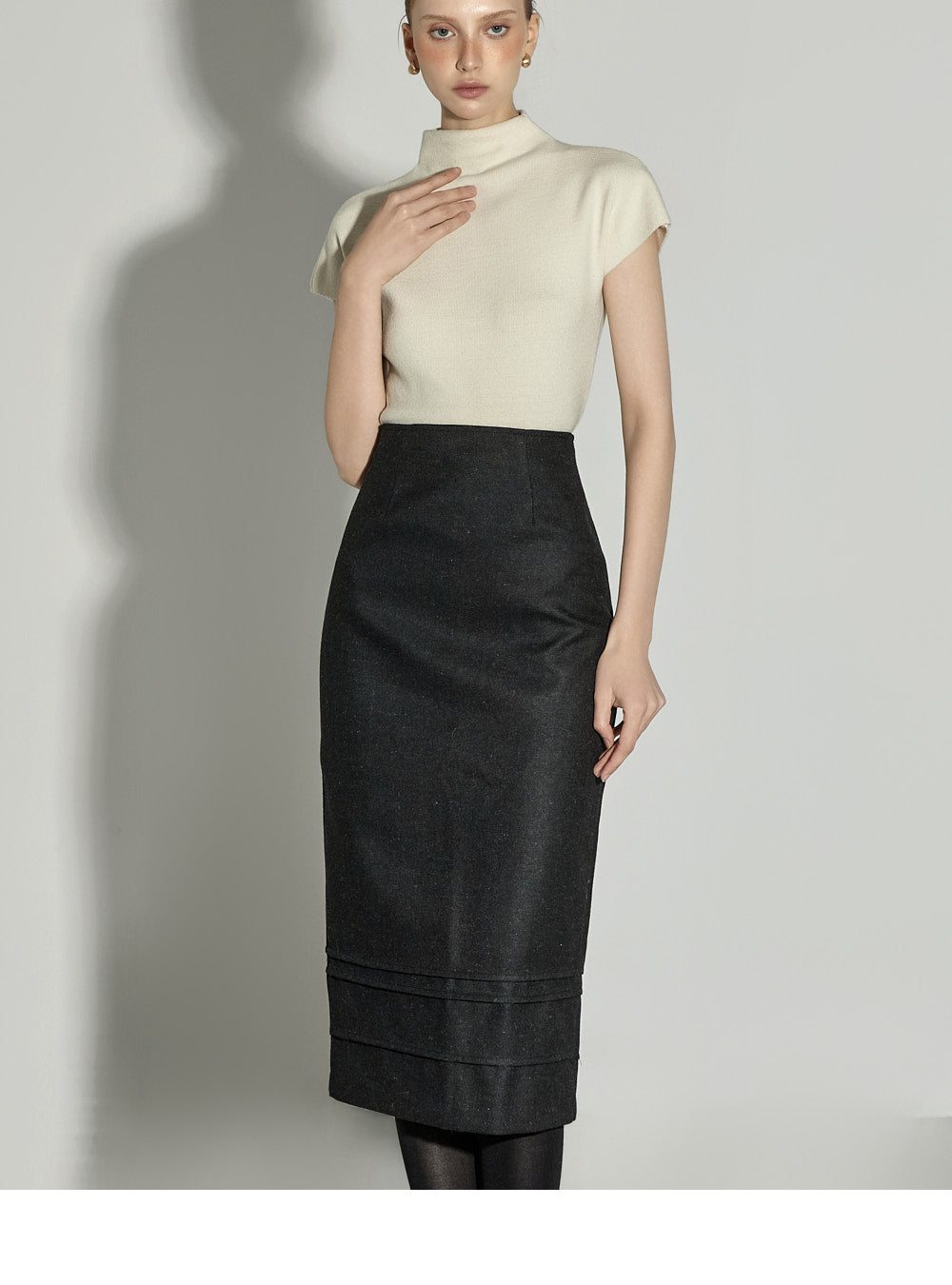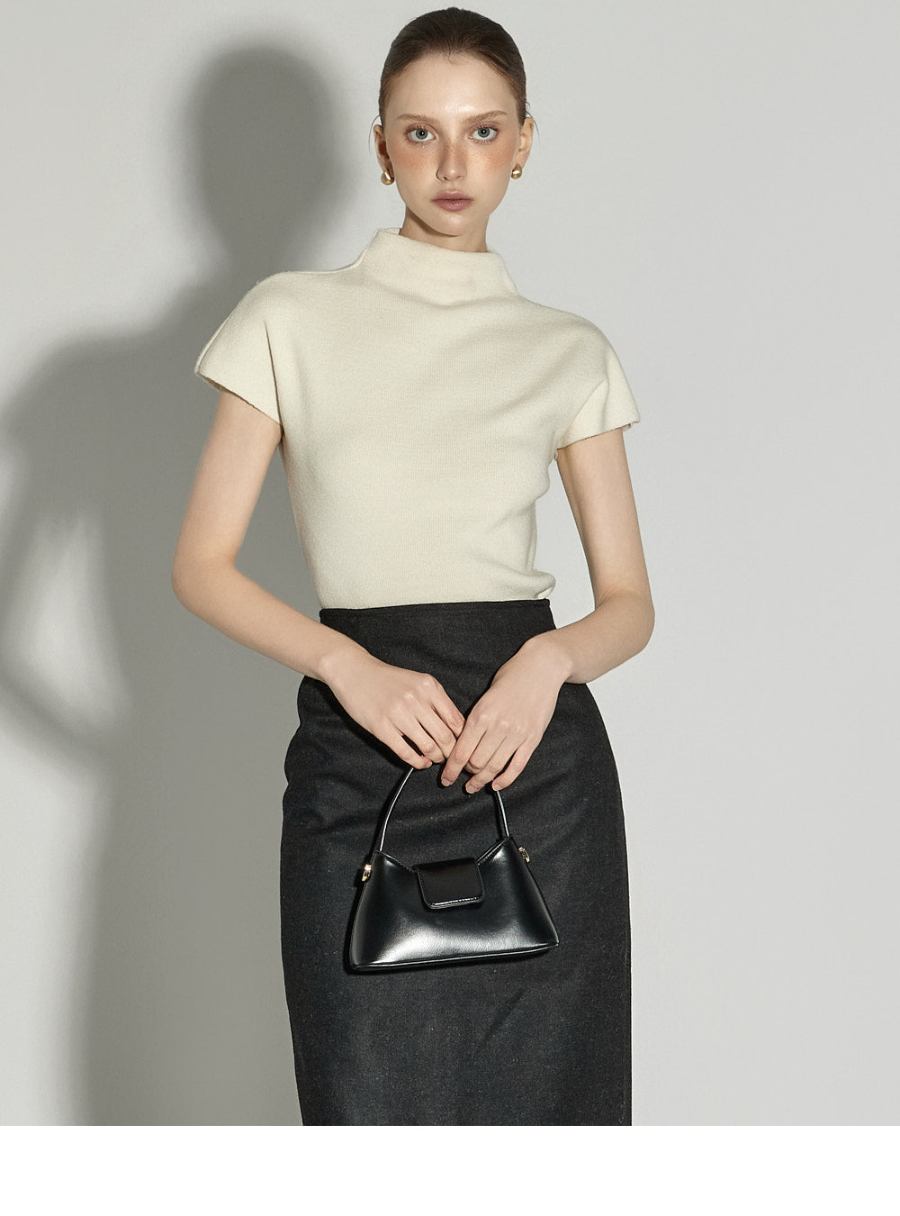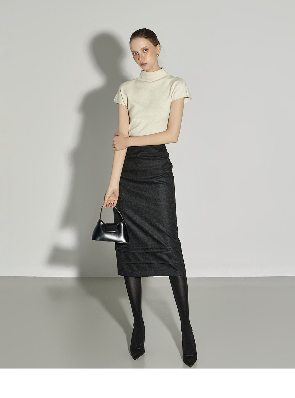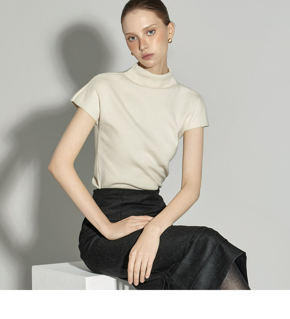 The half-high neck design creates a sophisticated silhouette,