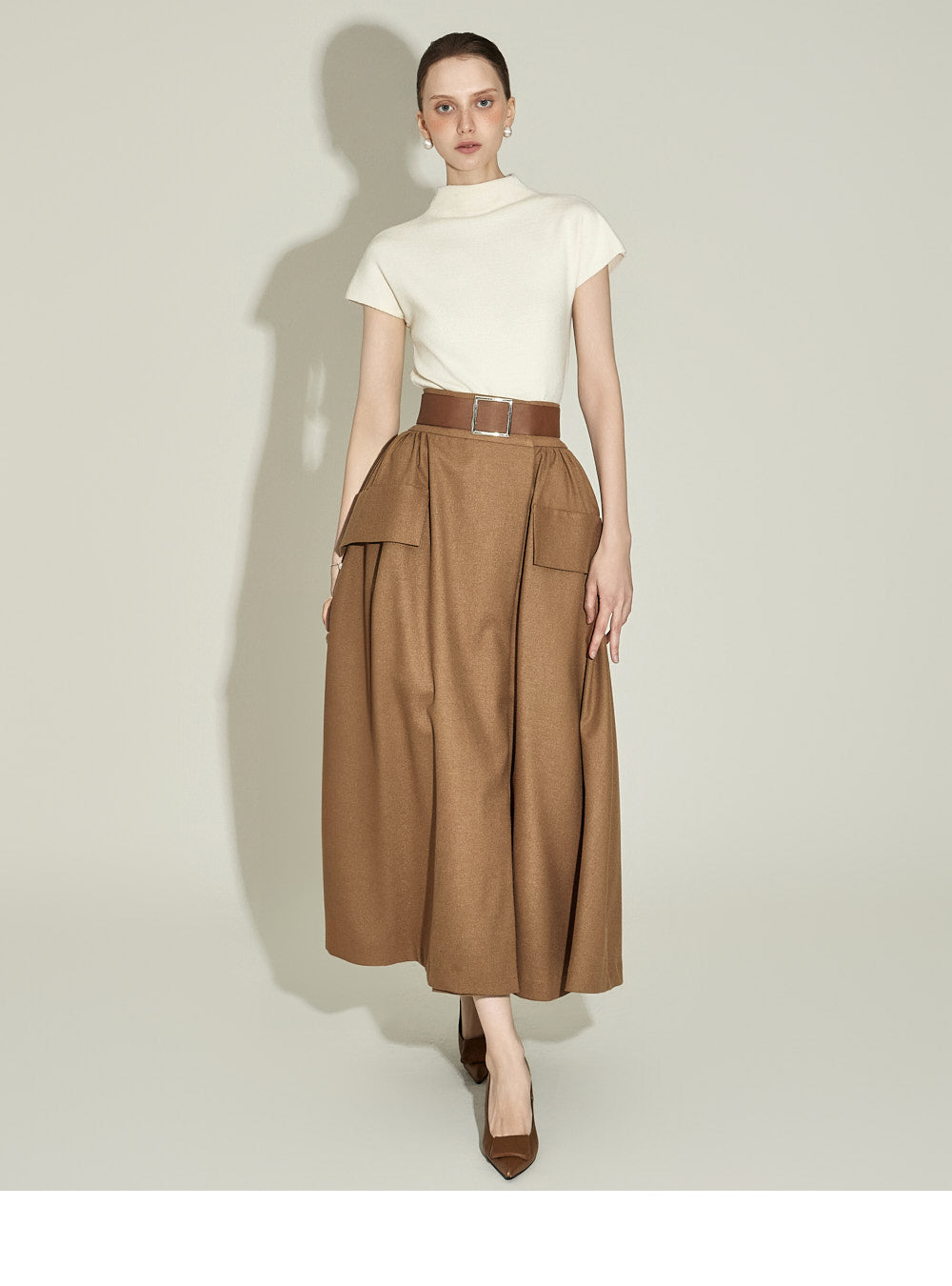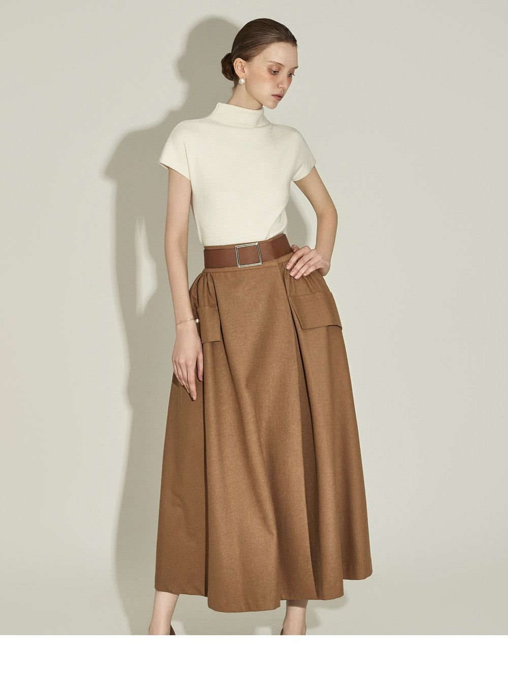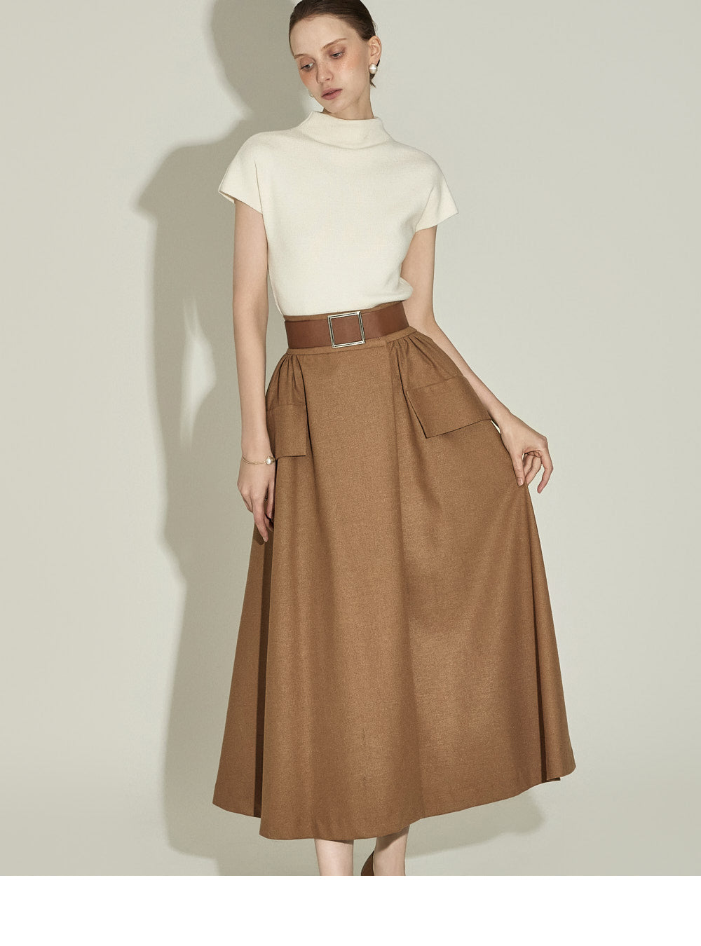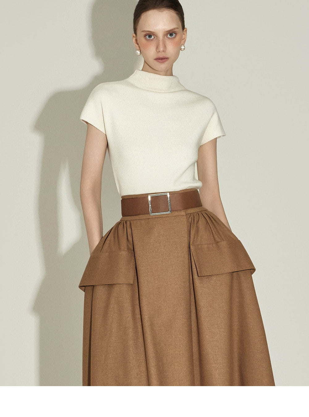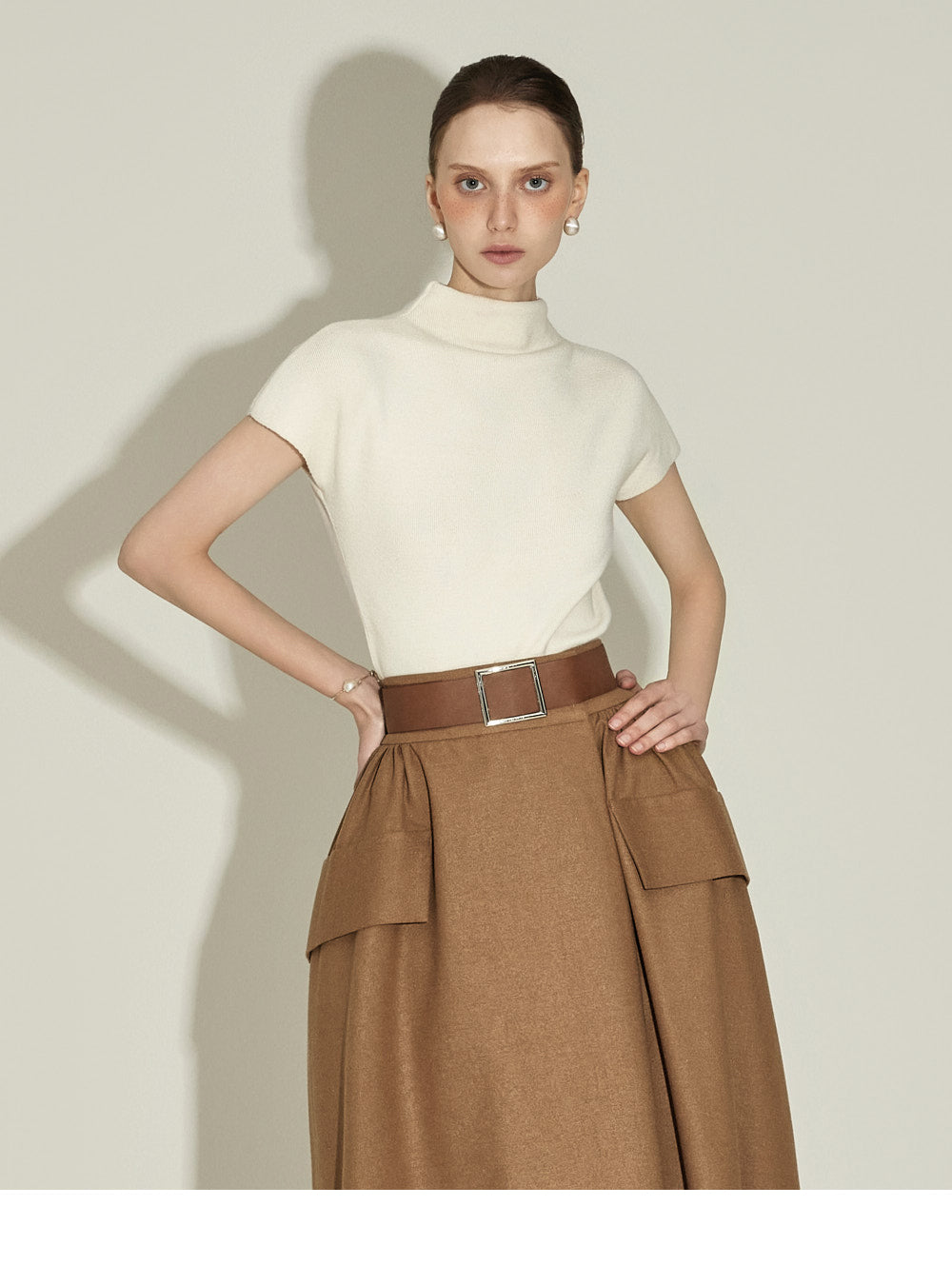 The half-high neck design creates a sophisticated silhouette,