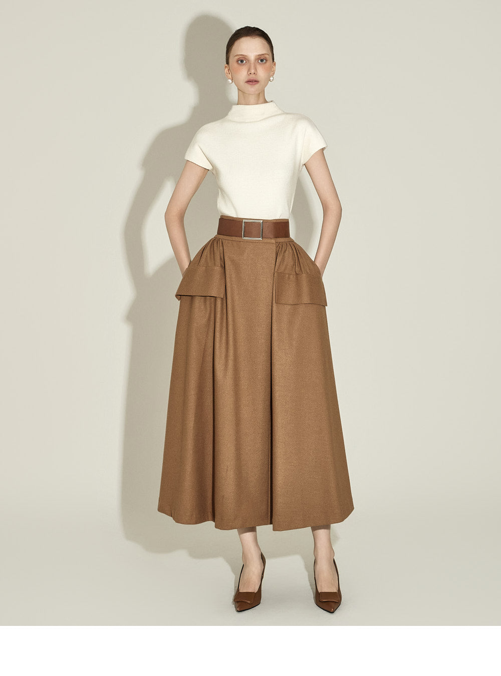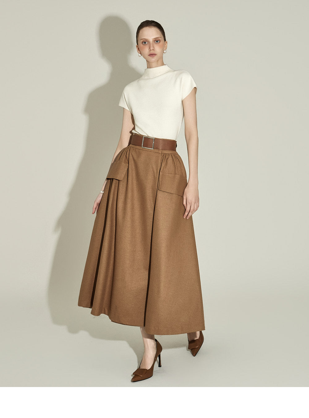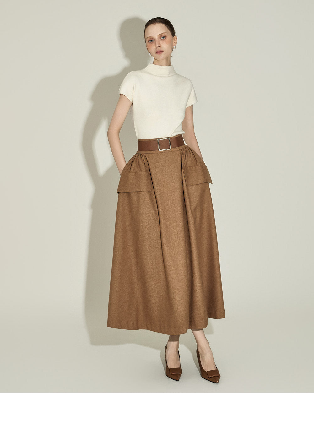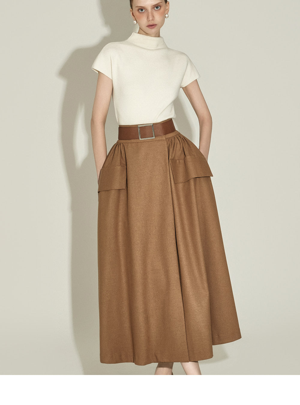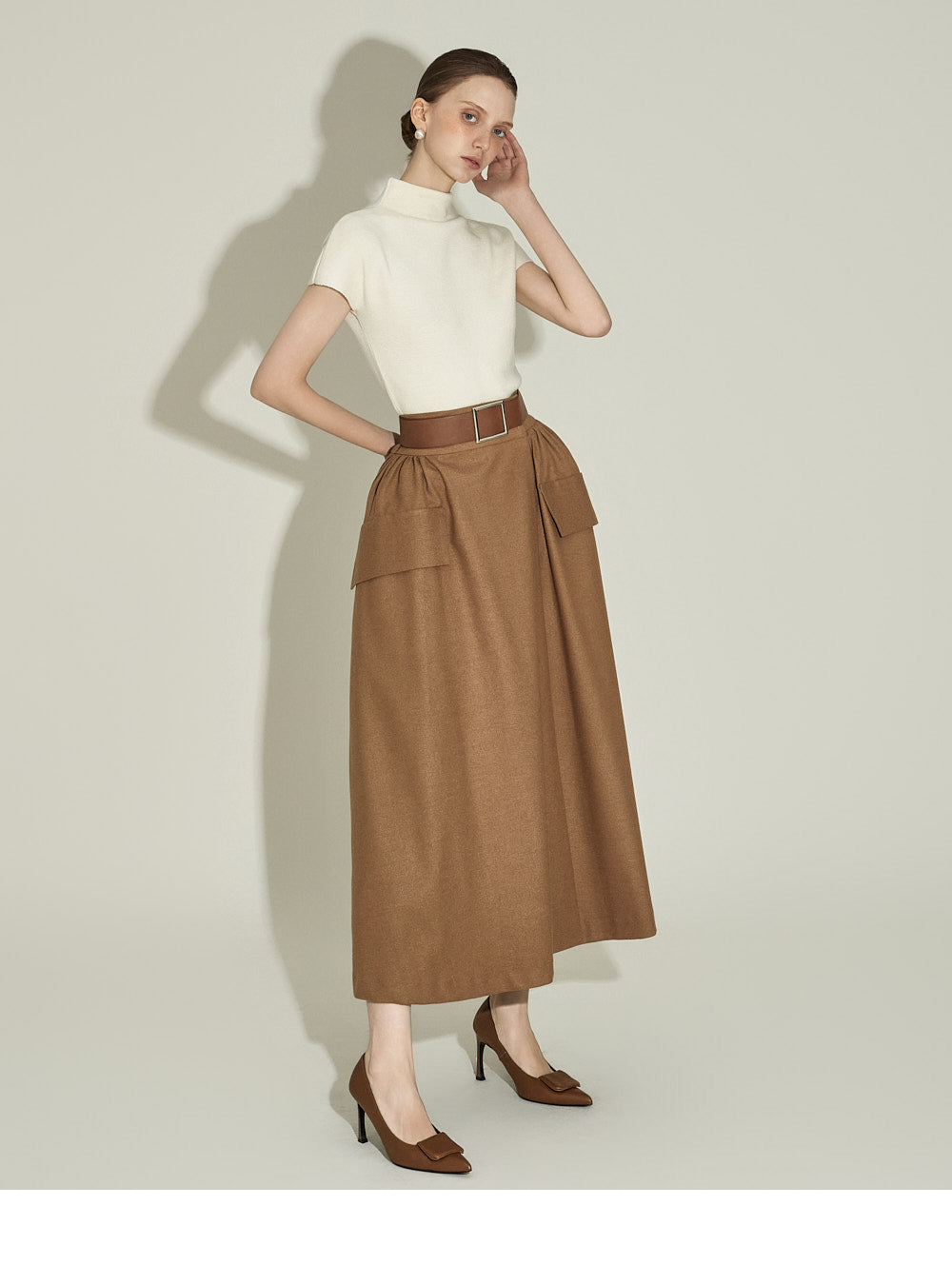 The half-high neck design creates a sophisticated silhouette,