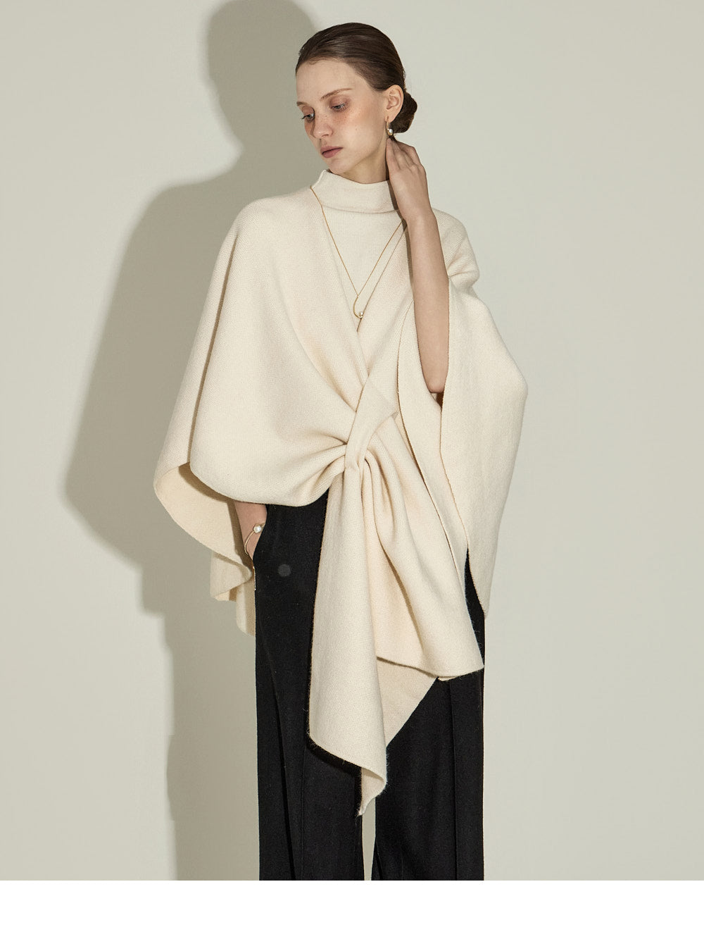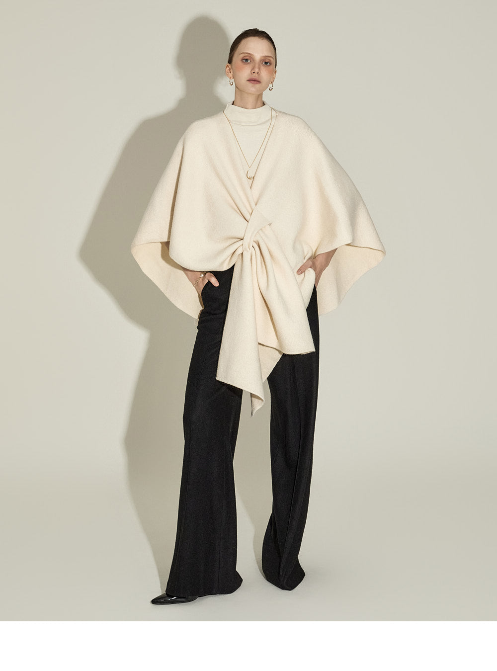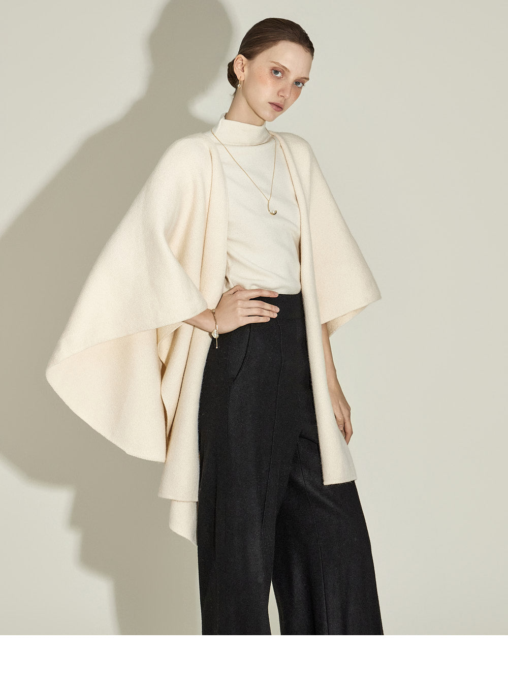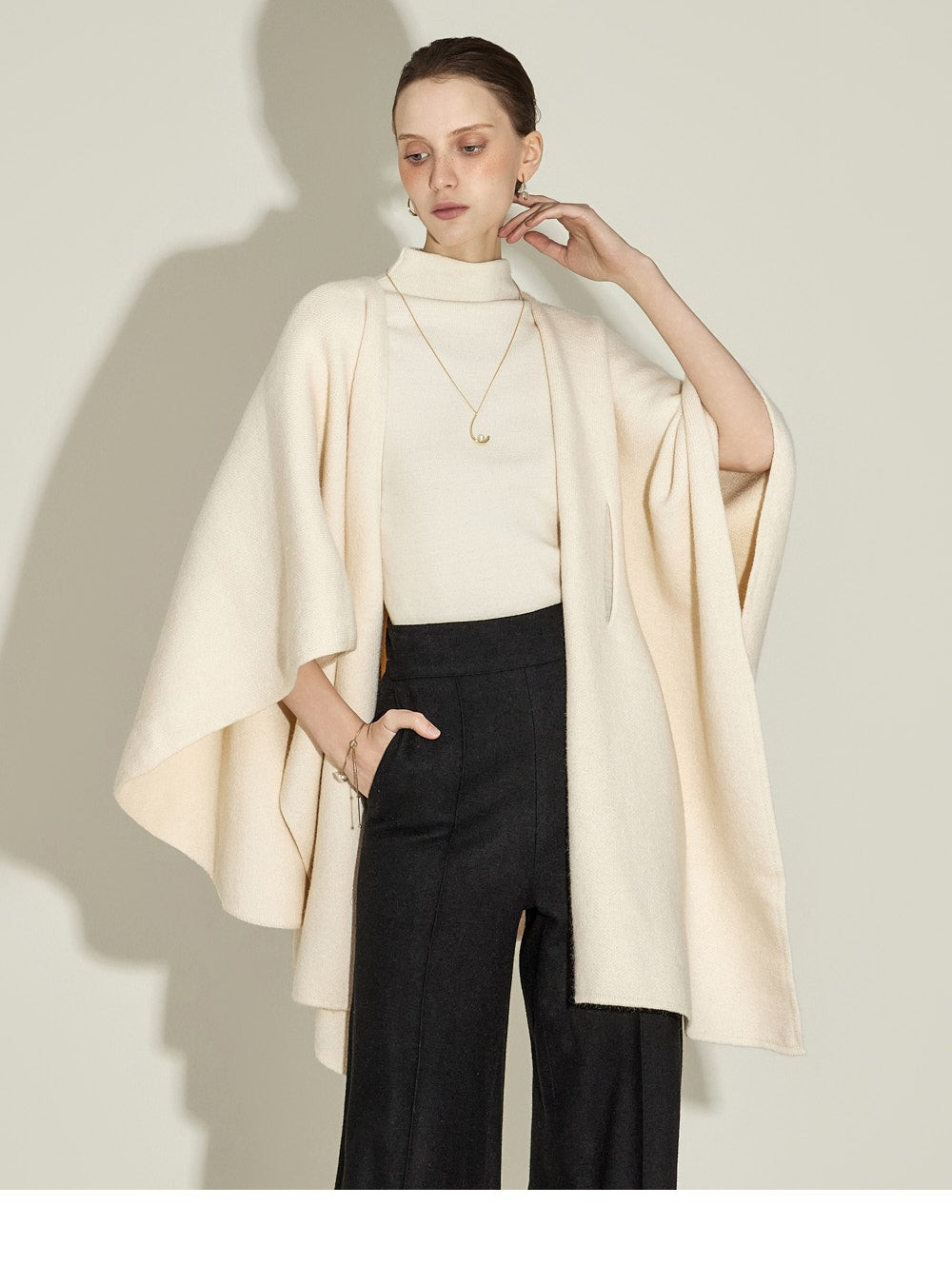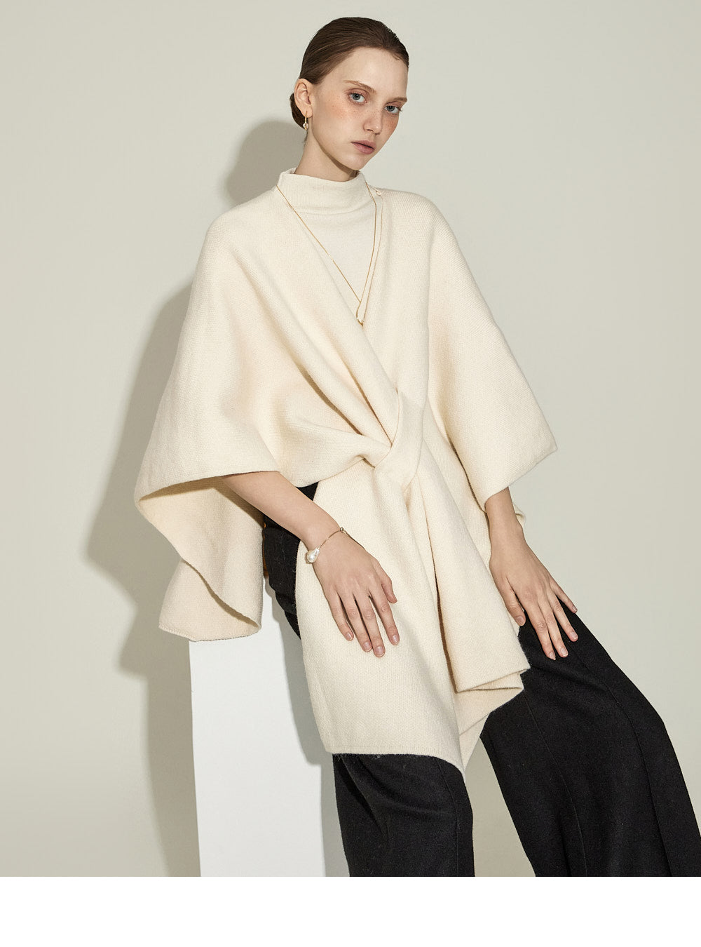 The model, 174CM tall, is wearing ONE size in IVORY.