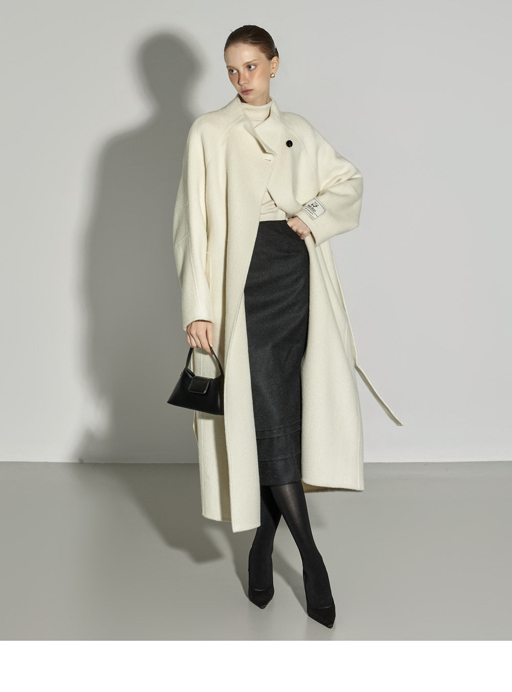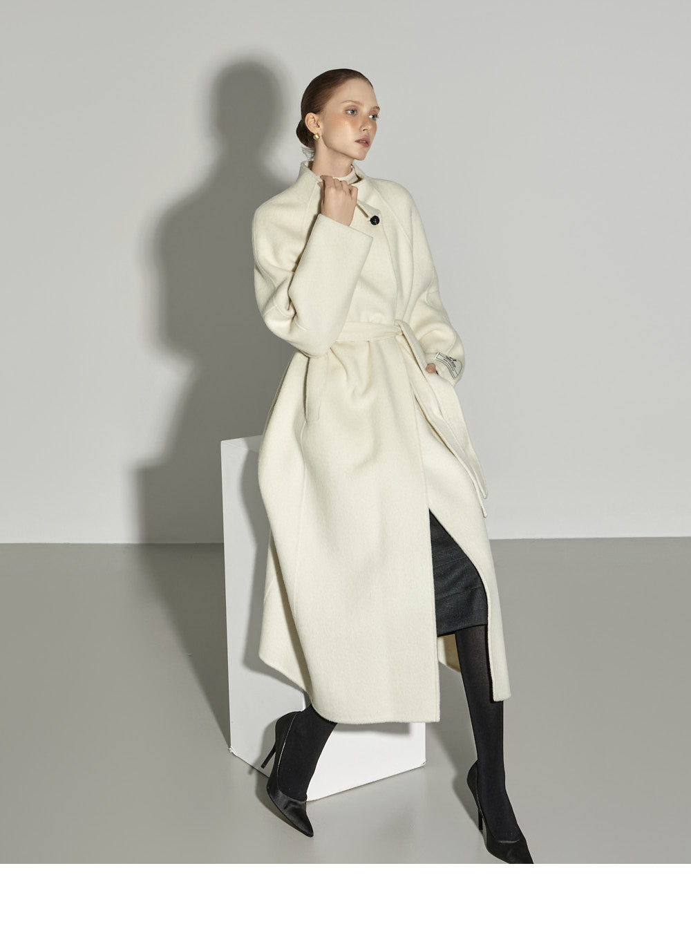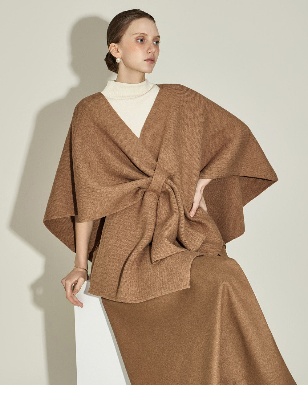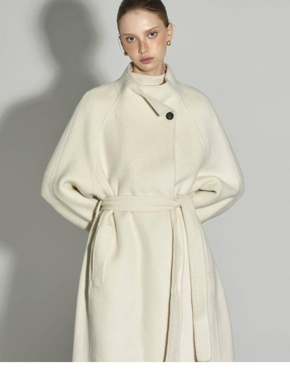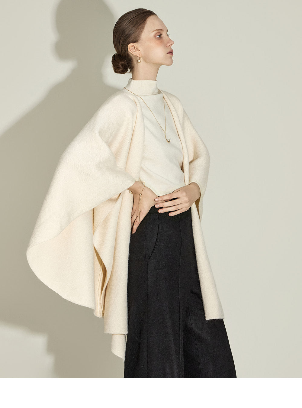 The model, 174CM tall, is wearing ONE size in IVORY.