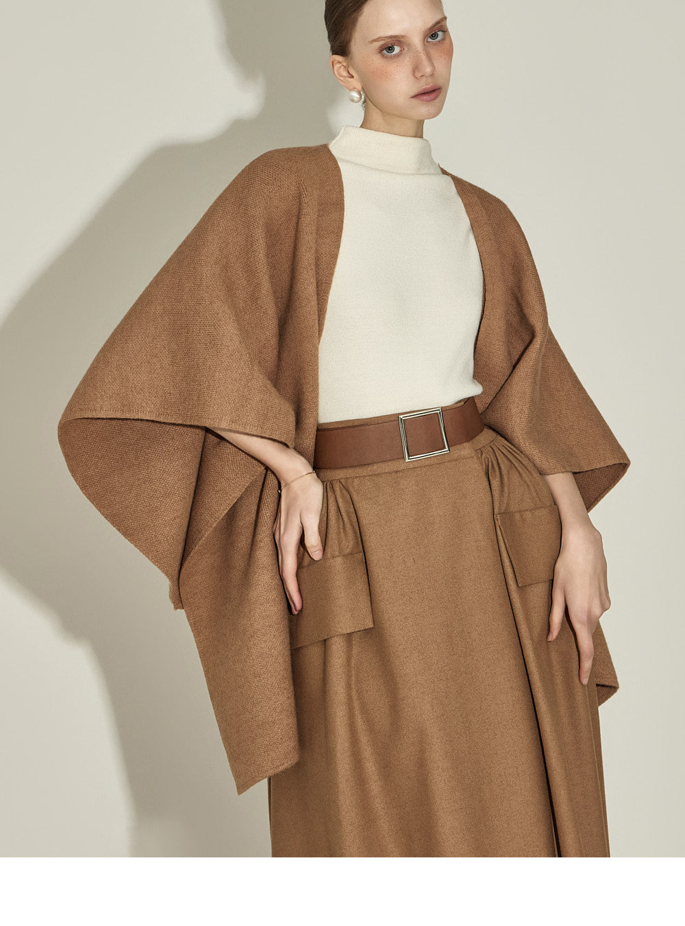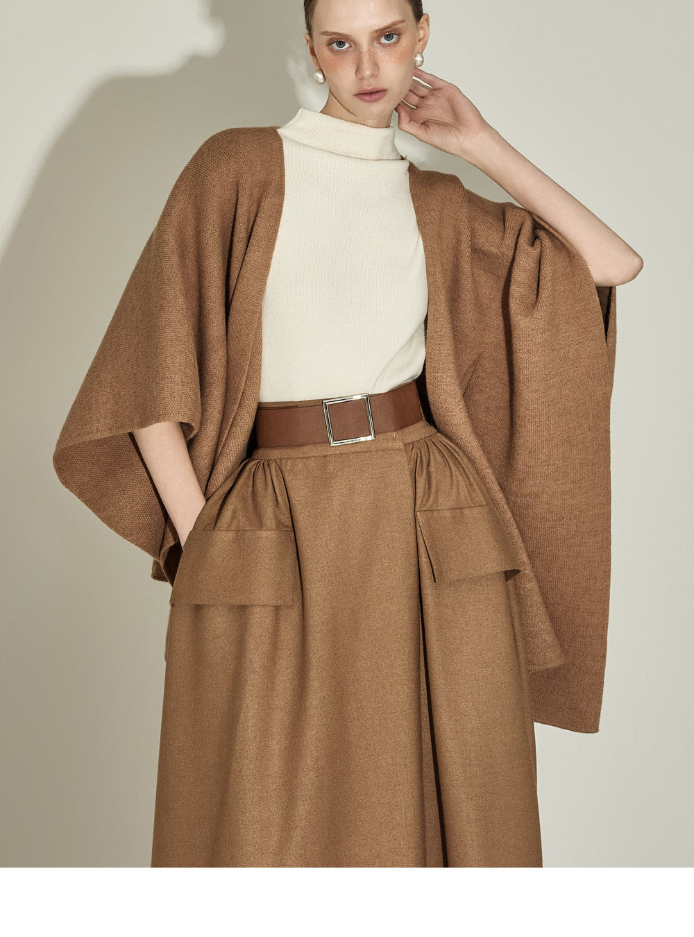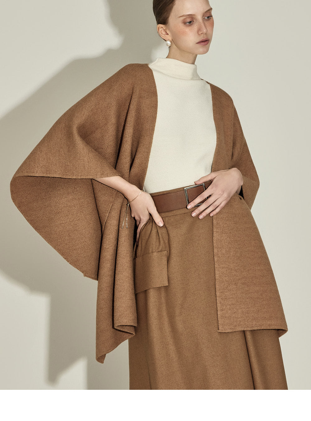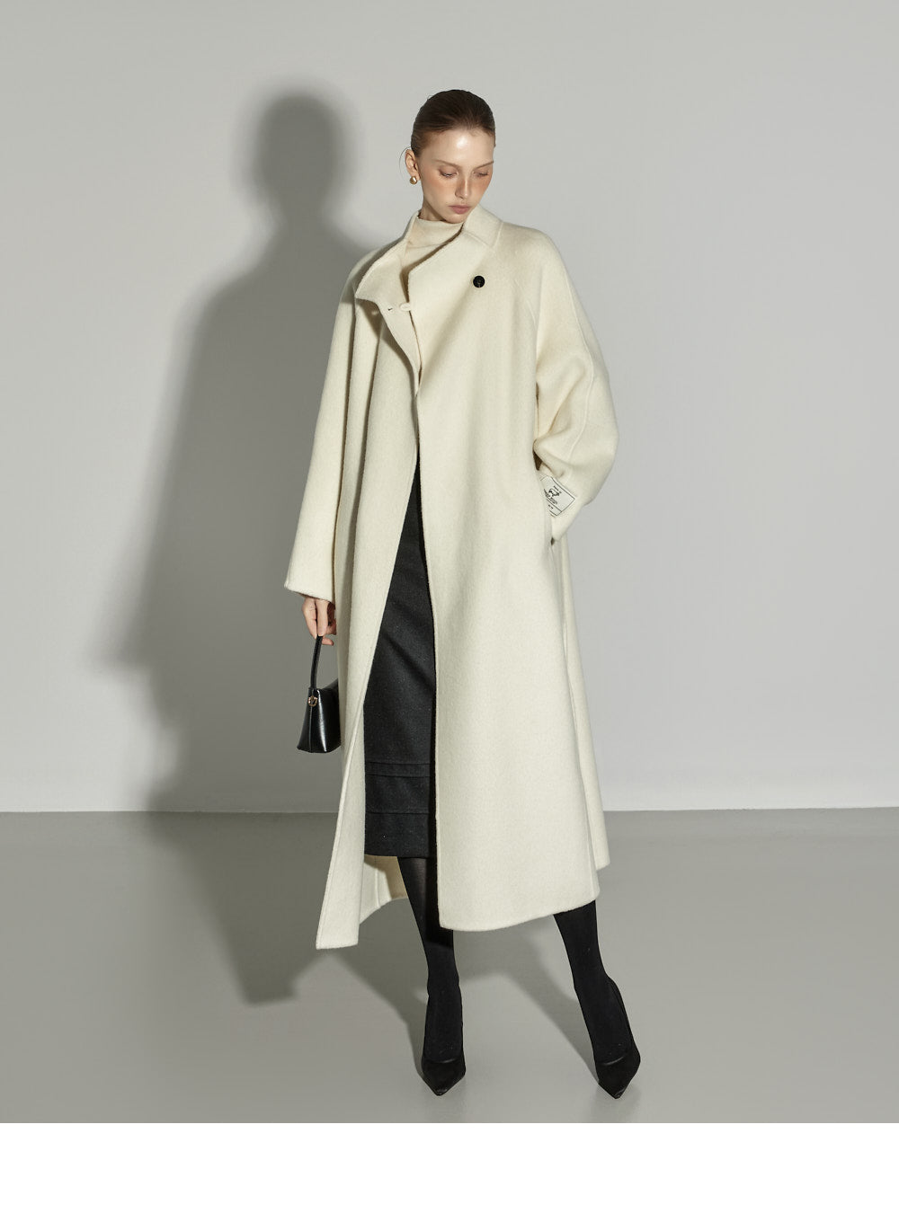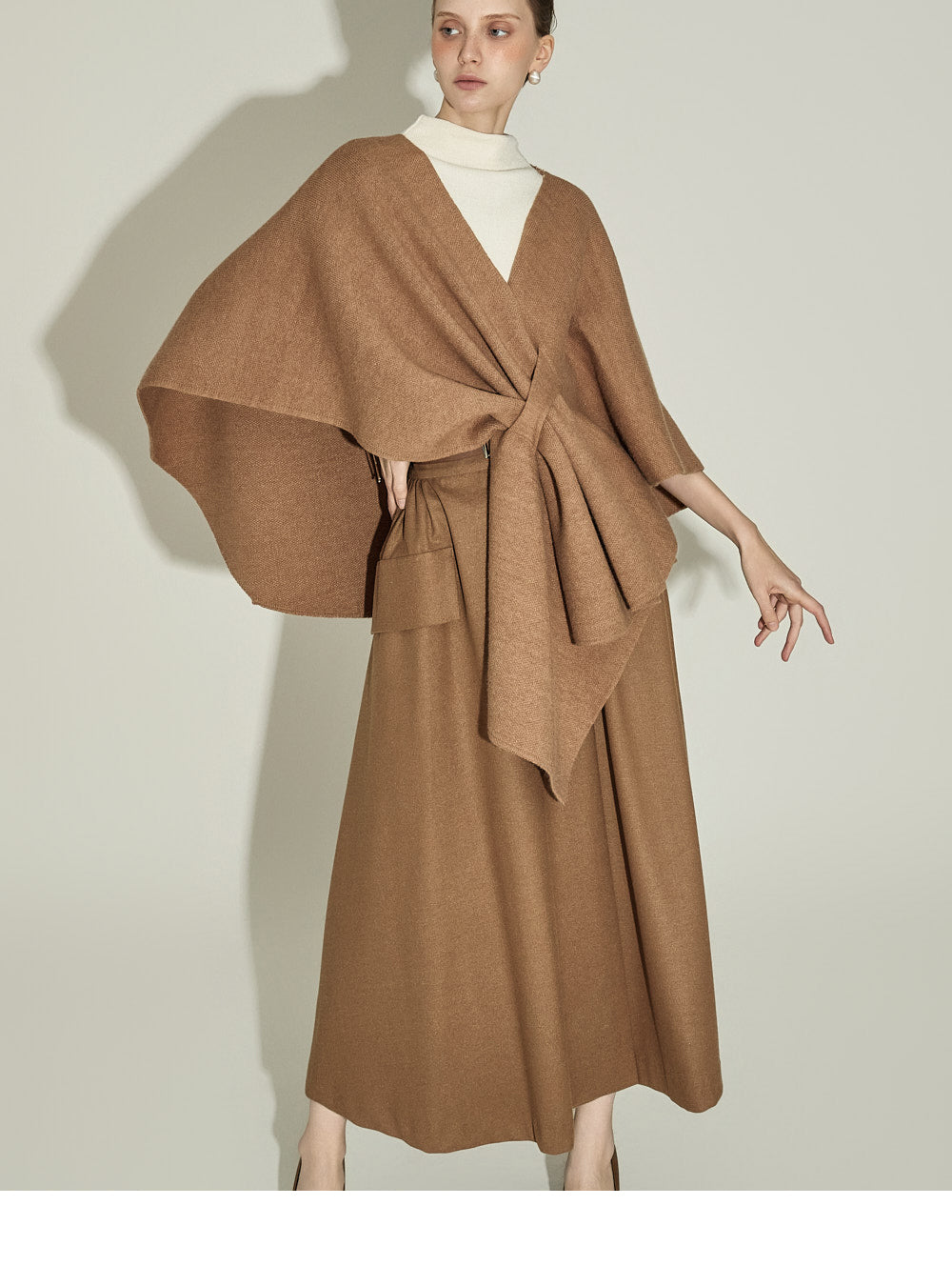 The model, 174CM tall, is wearing ONE size in IVORY.