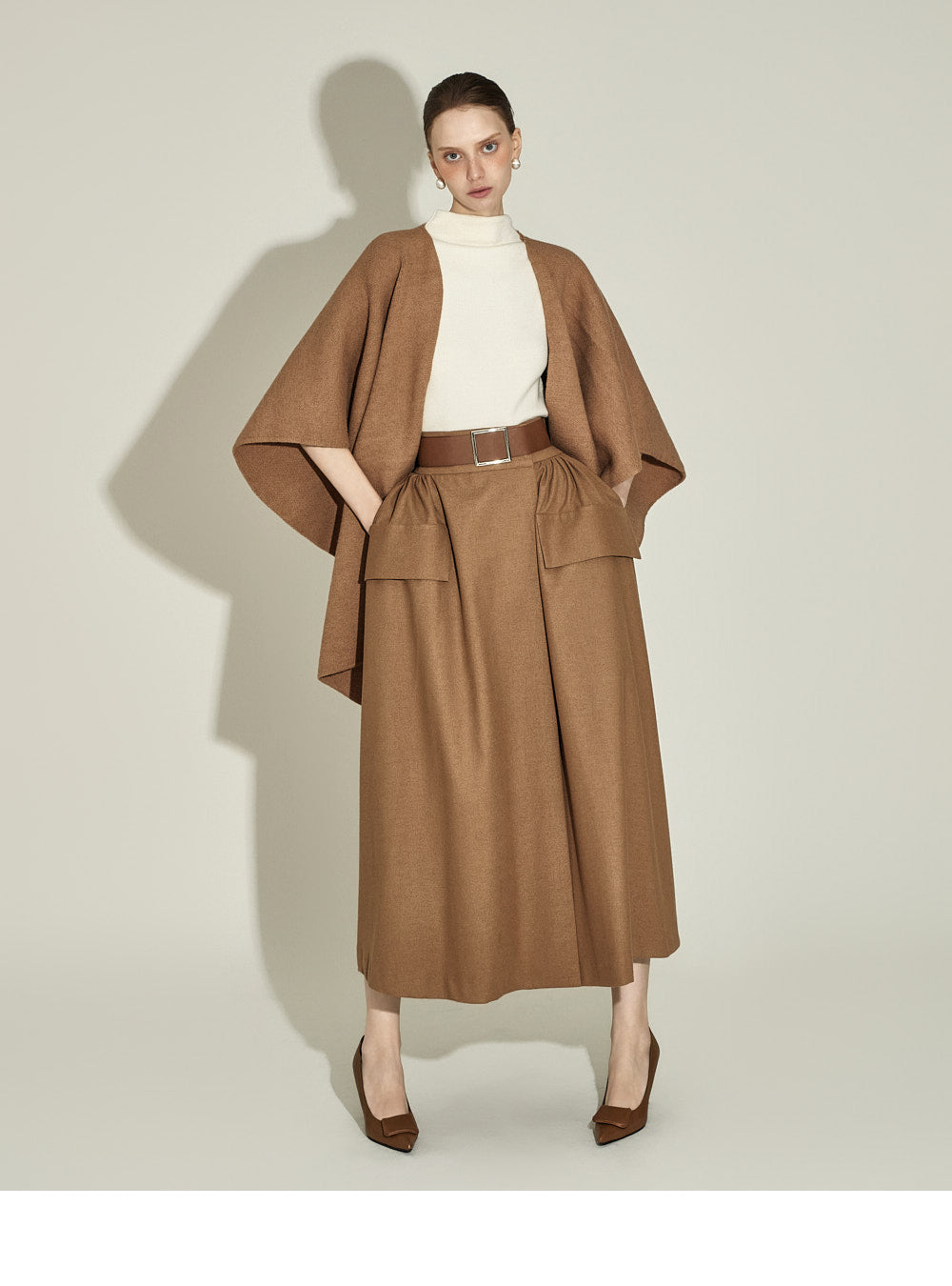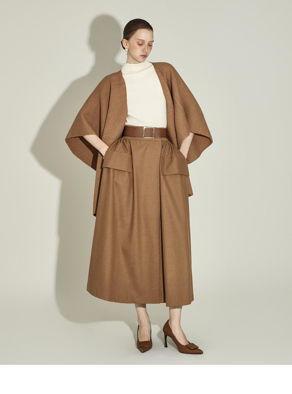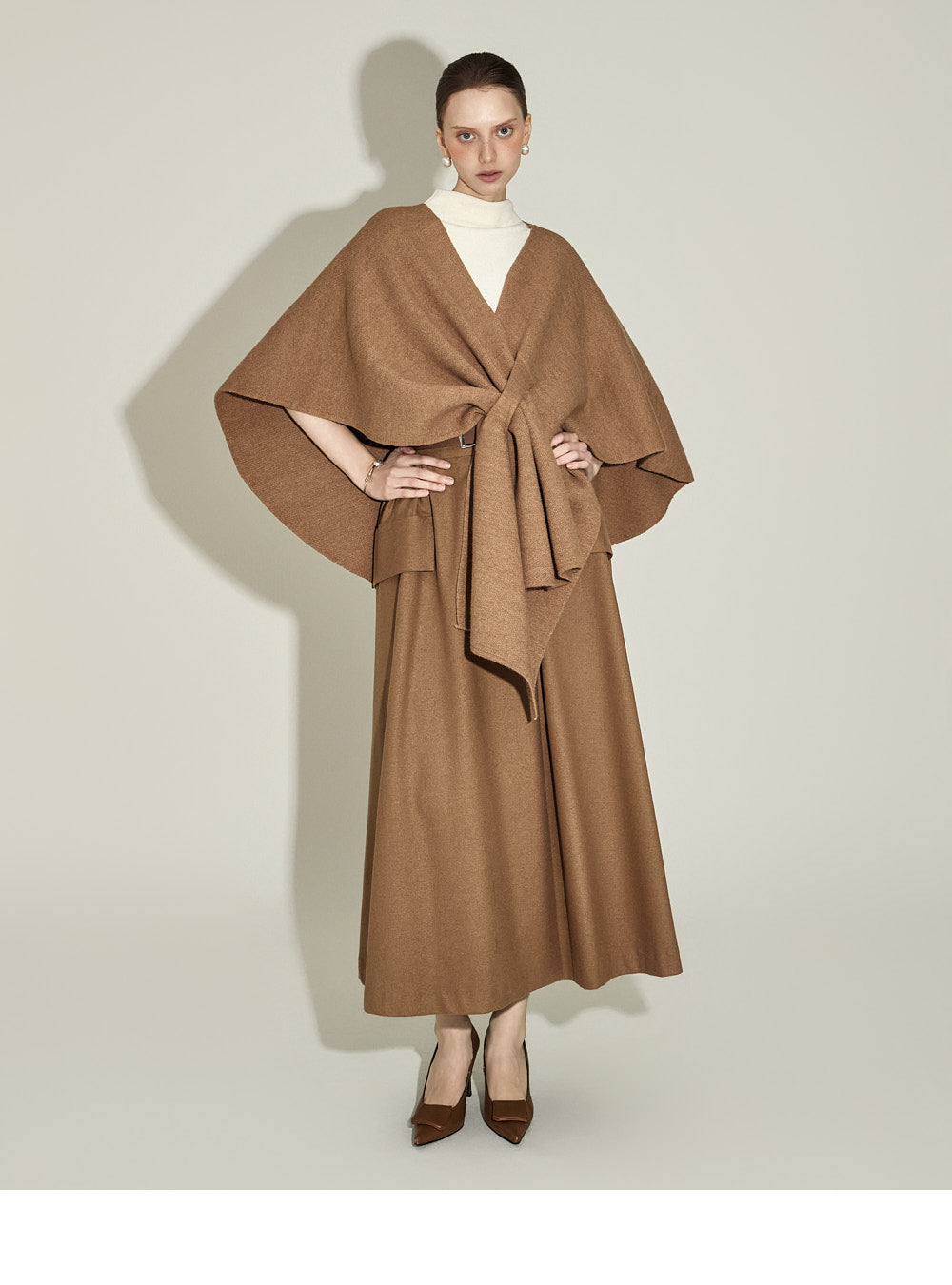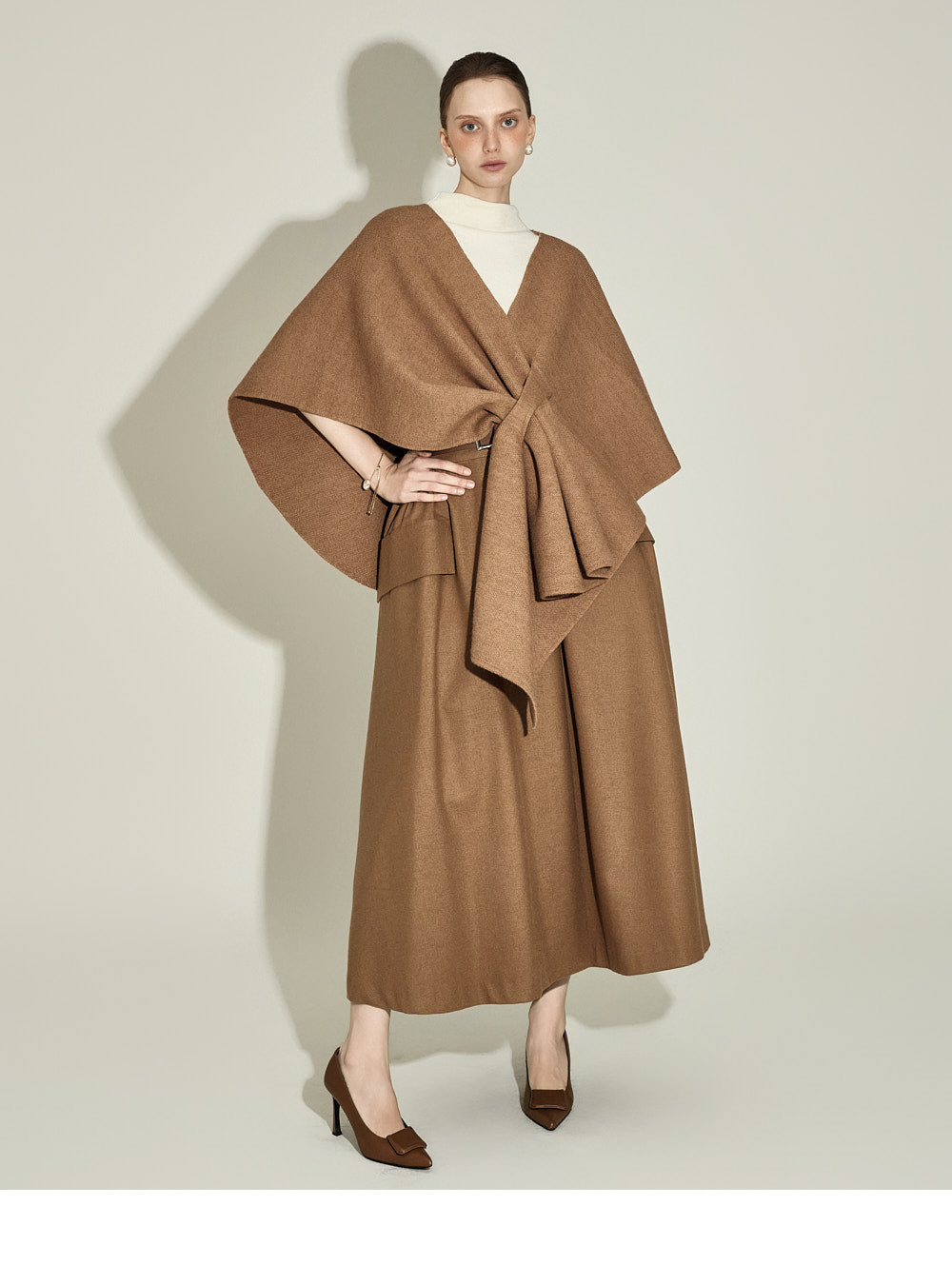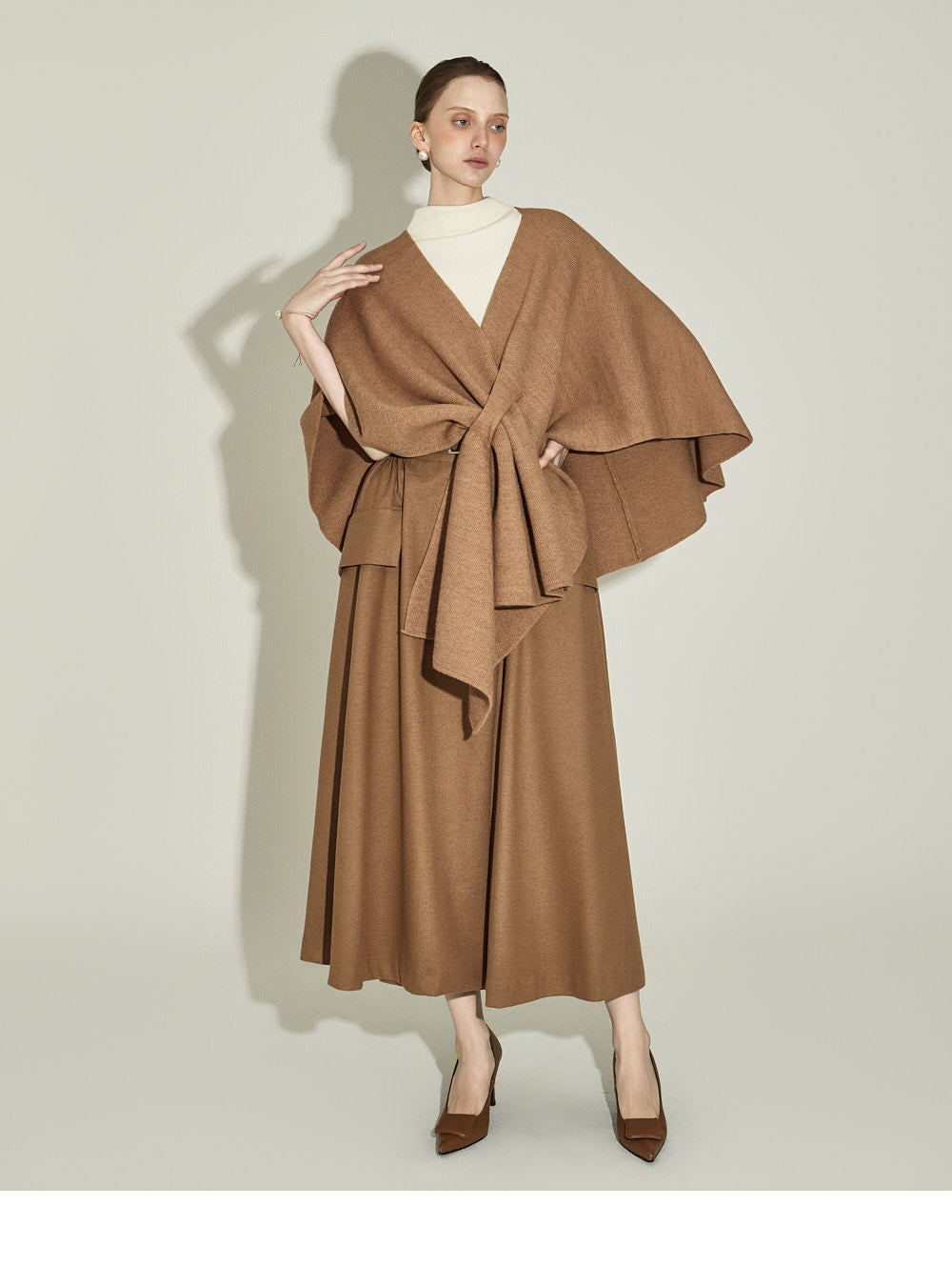 The model, 174CM tall, is wearing ONE size in IVORY.