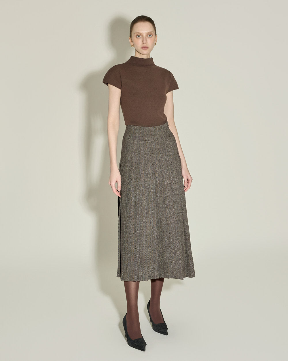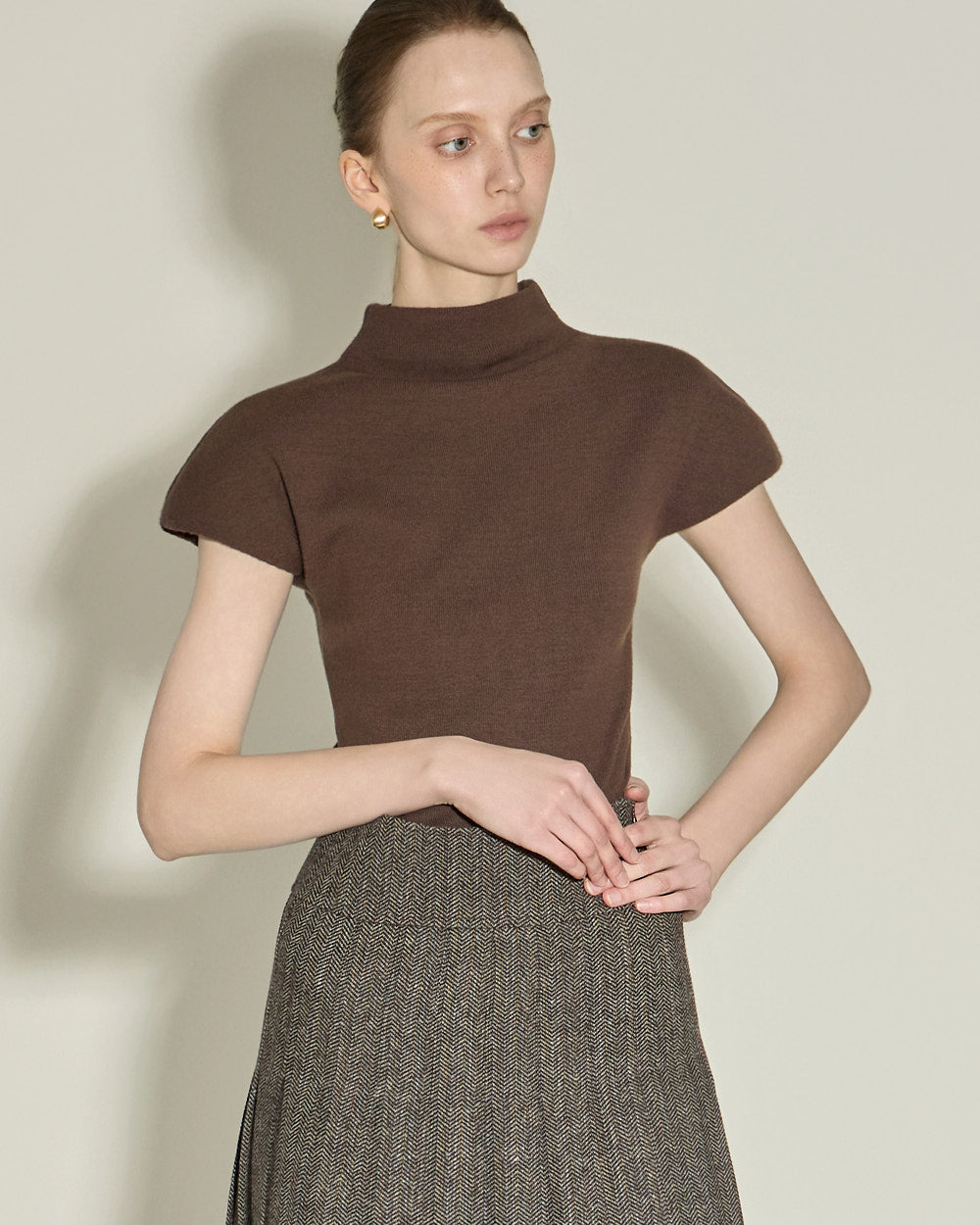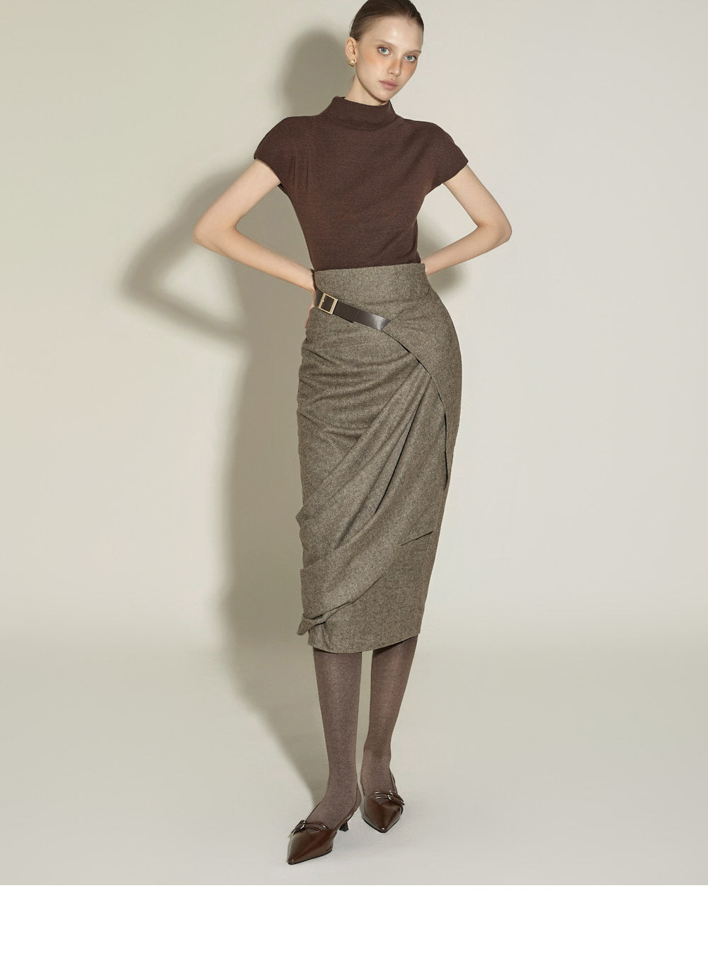 The 174cm model is wearing size ONE in BROWN.