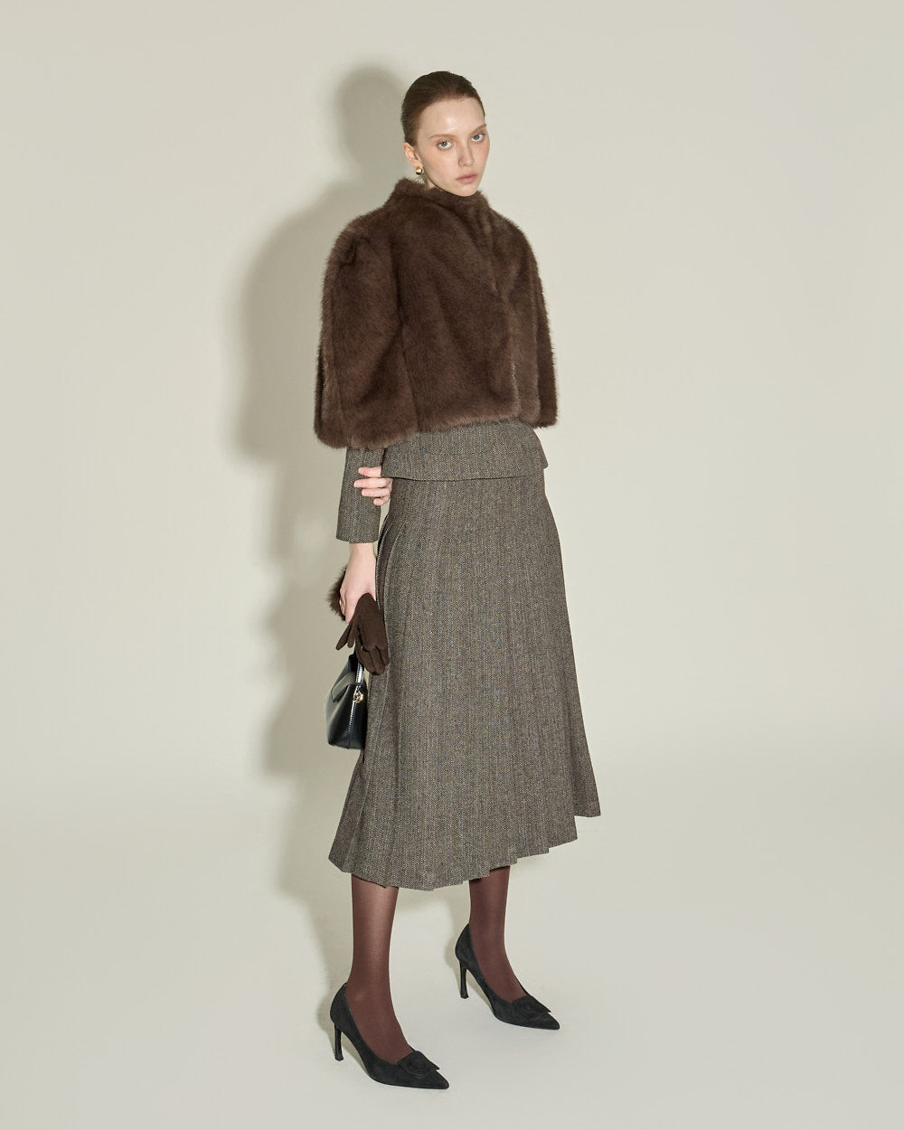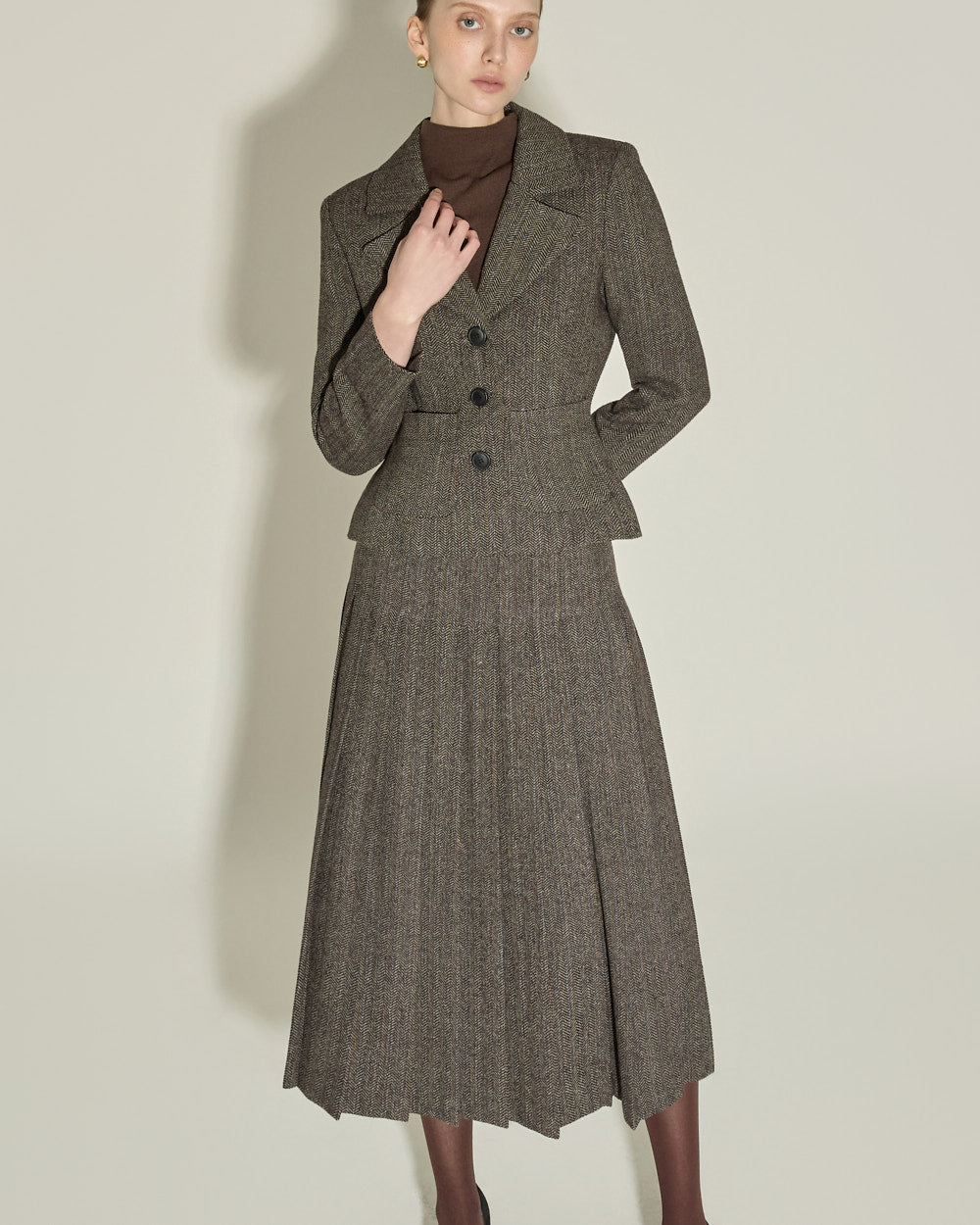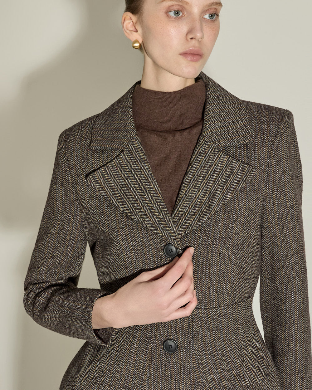 The 174cm model is wearing size ONE in BROWN.