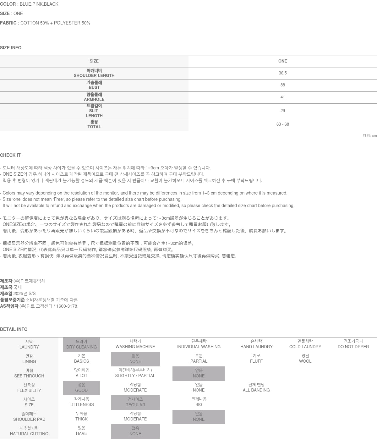 Clothing from DINT Co., Ltd. may become damaged or deformed if machine washed or tumble dried. We strongly recommend following the care instructions provided below.