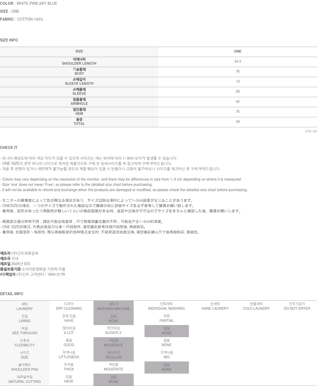 Clothing from DINT Co., Ltd. may become damaged or deformed if machine washed or tumble dried. We strongly recommend following the care instructions provided below.
