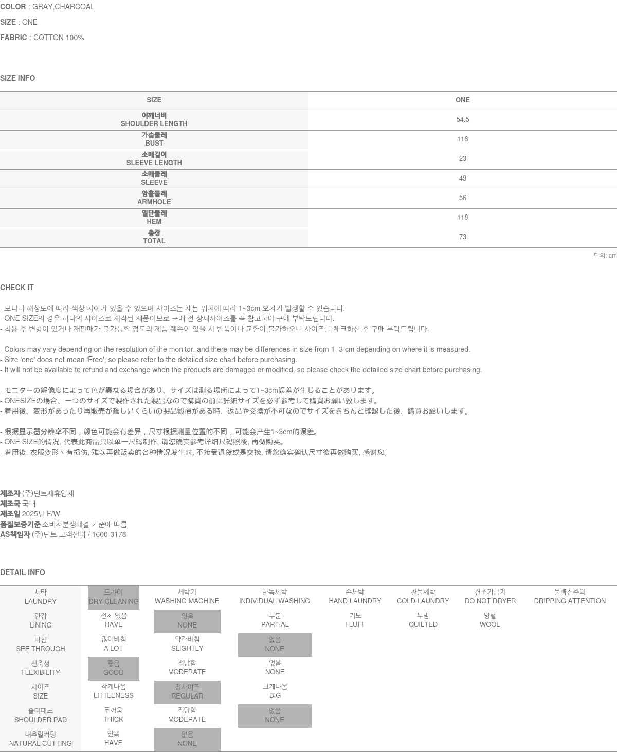 Clothing from DINT Co., Ltd. may become damaged or deformed if machine washed or tumble dried. We strongly recommend following the care instructions provided below.