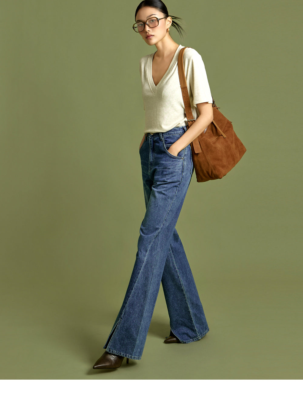 Denim (jeans, coated jeans) and other dark-dyed garments may experience color fading or transfer. Please take extra care before the first wash and while wearing them.