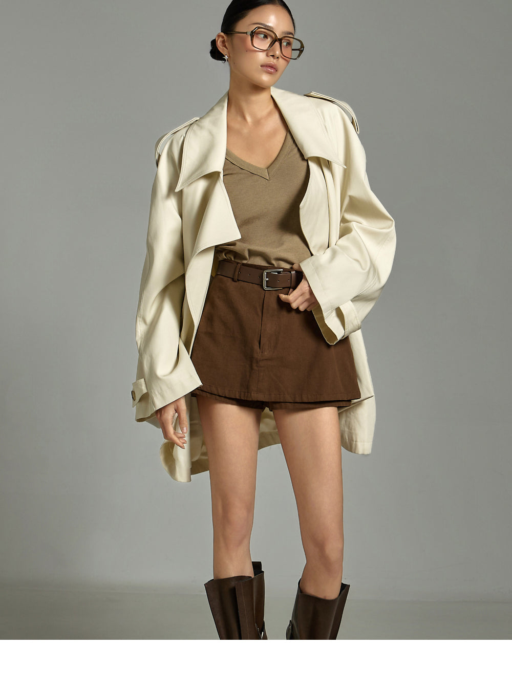 The 171cm model is wearing size ONE in BEIGE.