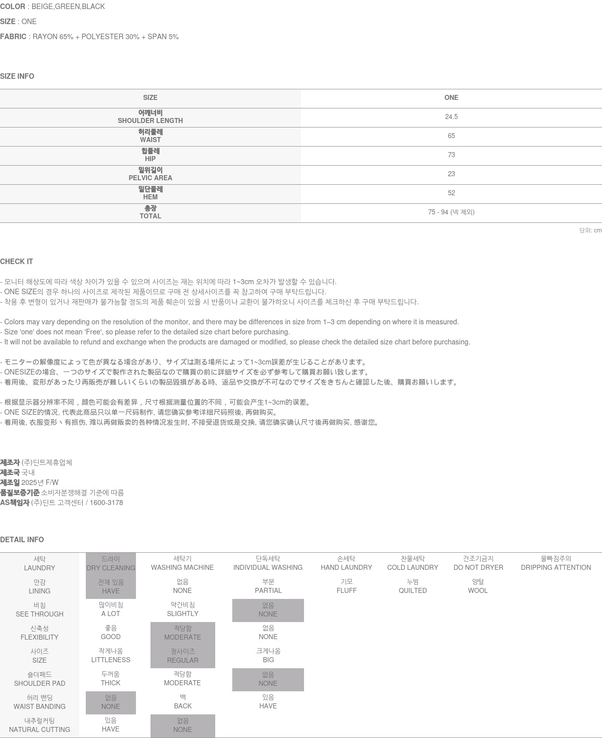 Clothing from DINT Co., Ltd. may become damaged or deformed if machine washed or tumble dried. We strongly recommend following the care instructions provided below.