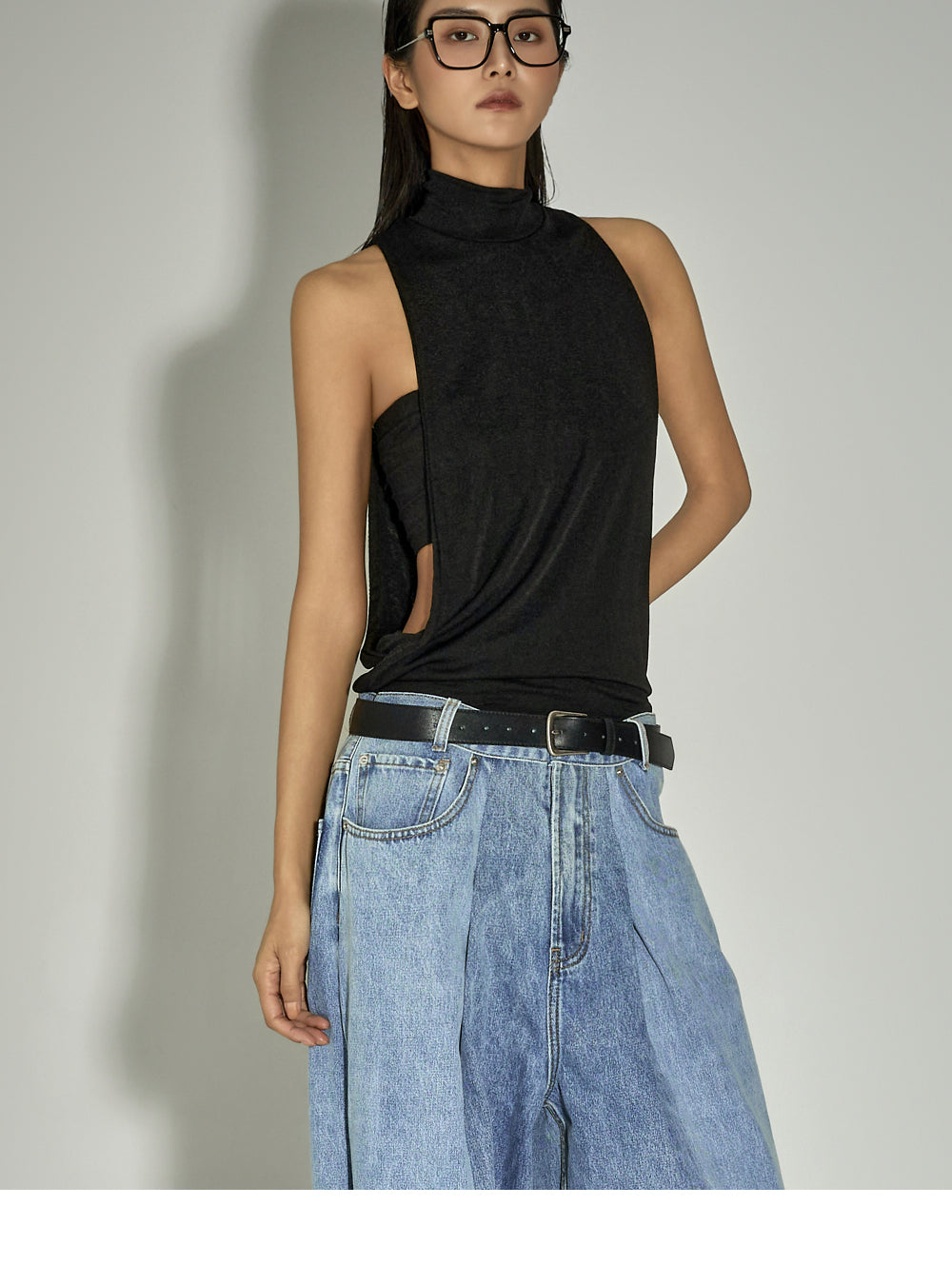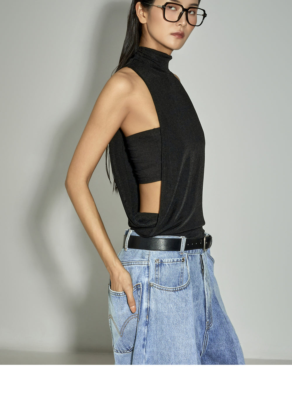 This is a unique, statement-making bodysuit with a sleek and modern mood.