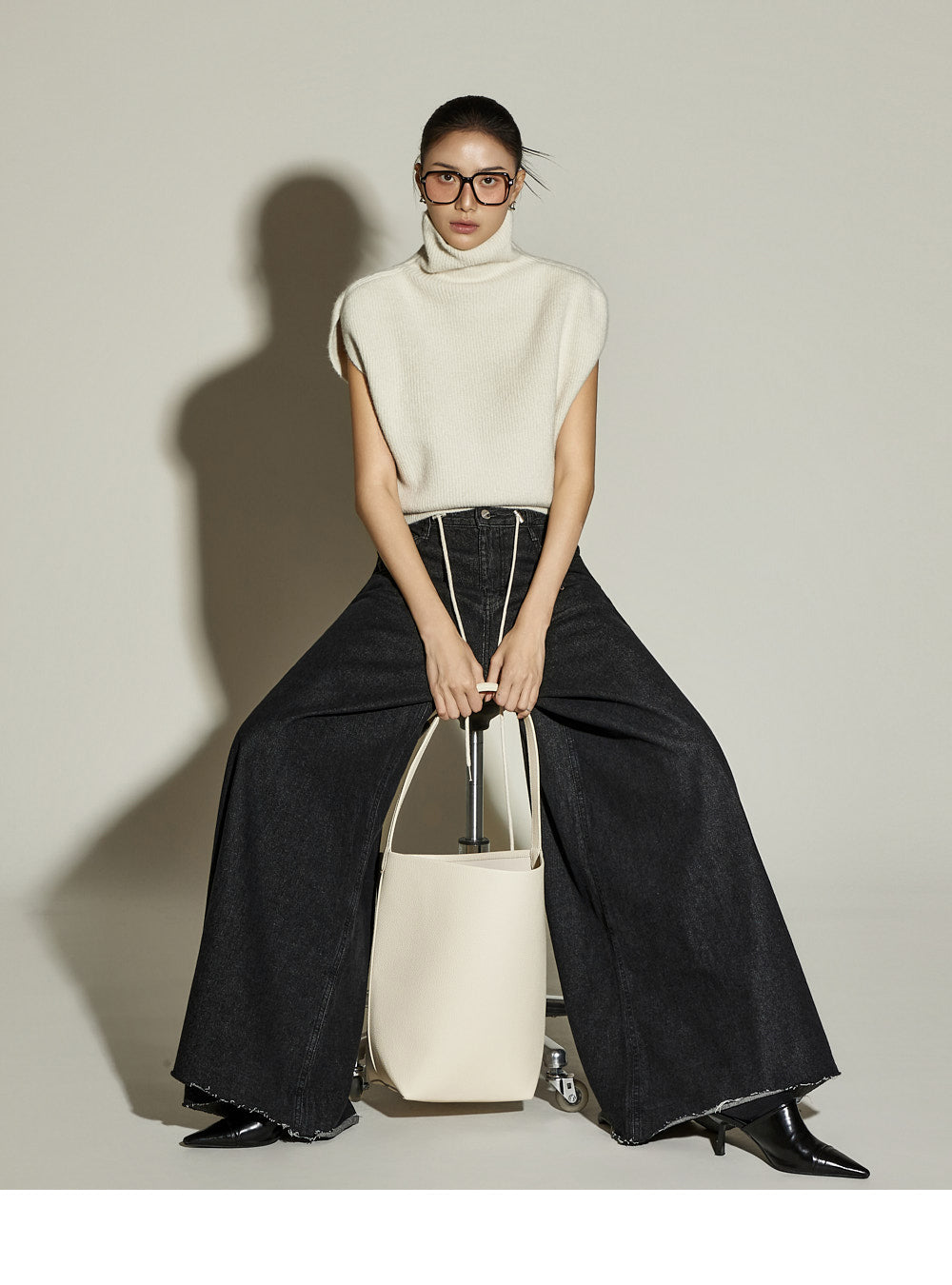 Denim (jeans, coated jeans) and other dark-dyed garments may experience color fading or transfer. Please take extra care before the first wash and while wearing them.