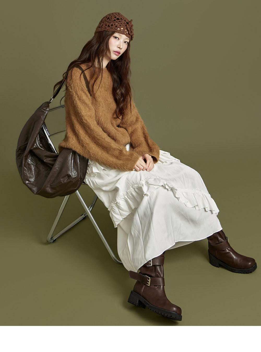 The 171cm model is wearing size one in brown.